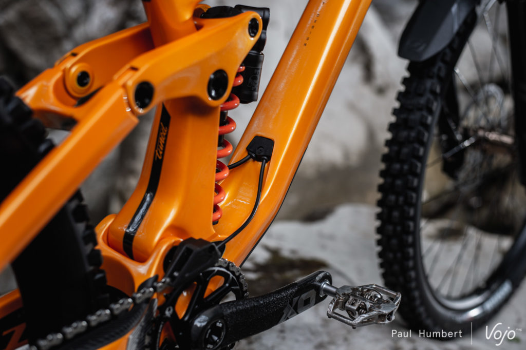 On est donc sur des valeurs dans la moyenne des vélos de DH moderne, ce qui le rend relativement accessible (pour peu qu’on soit habitué à ce genre de vélo).