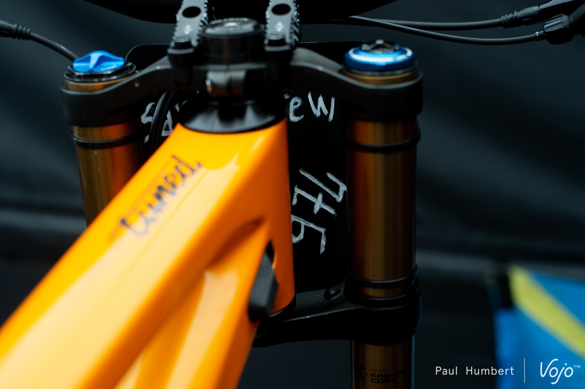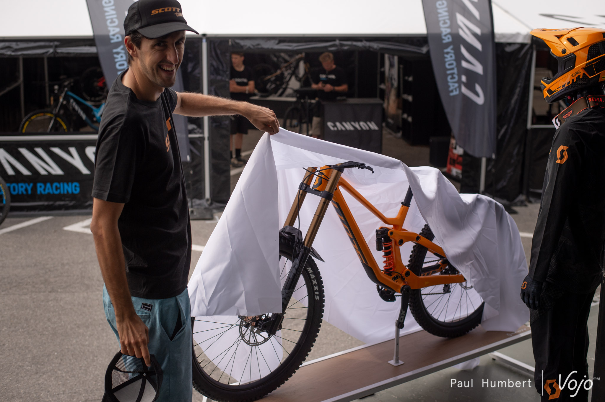 Rappelons quand même que Florent est (très) grand et que du haut de ses 1m96, il a souvent eu du mal pour trouver un vélo à sa taille… Pour ce nouveau Gambler, le développement était déjà bien avancé lorsqu’il a rejoint le team Scott DH Factory et il roule donc sur une taille XL 100 % de série. Si on peut s’attendre à le voir rouler (peut-être la saison prochaine) sur des prototypes encore plus grands, le fait qu’il se sente bien sur la taille XL est plutôt un bon signe pour le vélo.