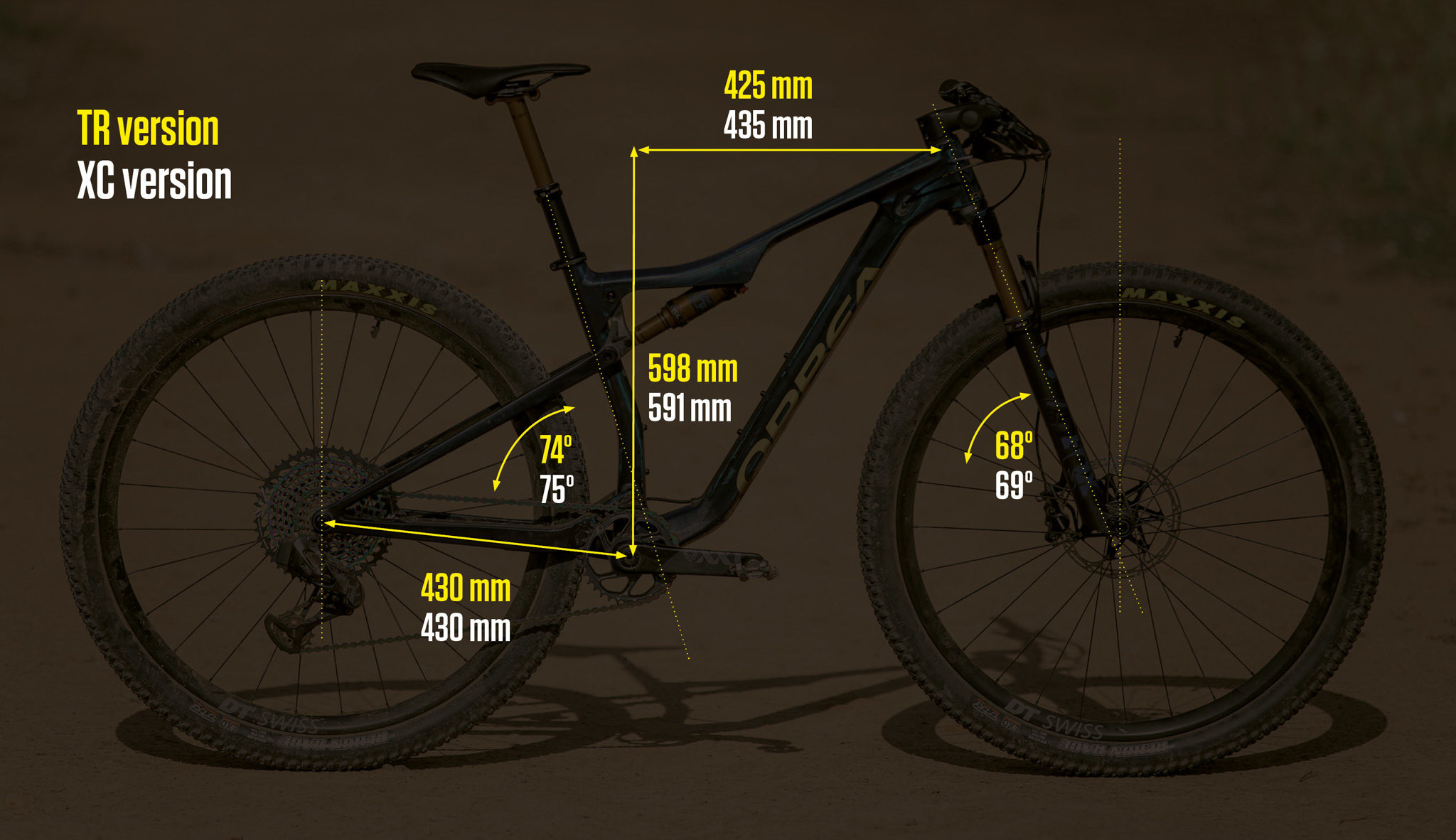 Les modèles XC et TR partagent un même cadre mais la course de l’amortisseur change (190×40 pour le XC, 190×45) d’un modèle à l’autre.