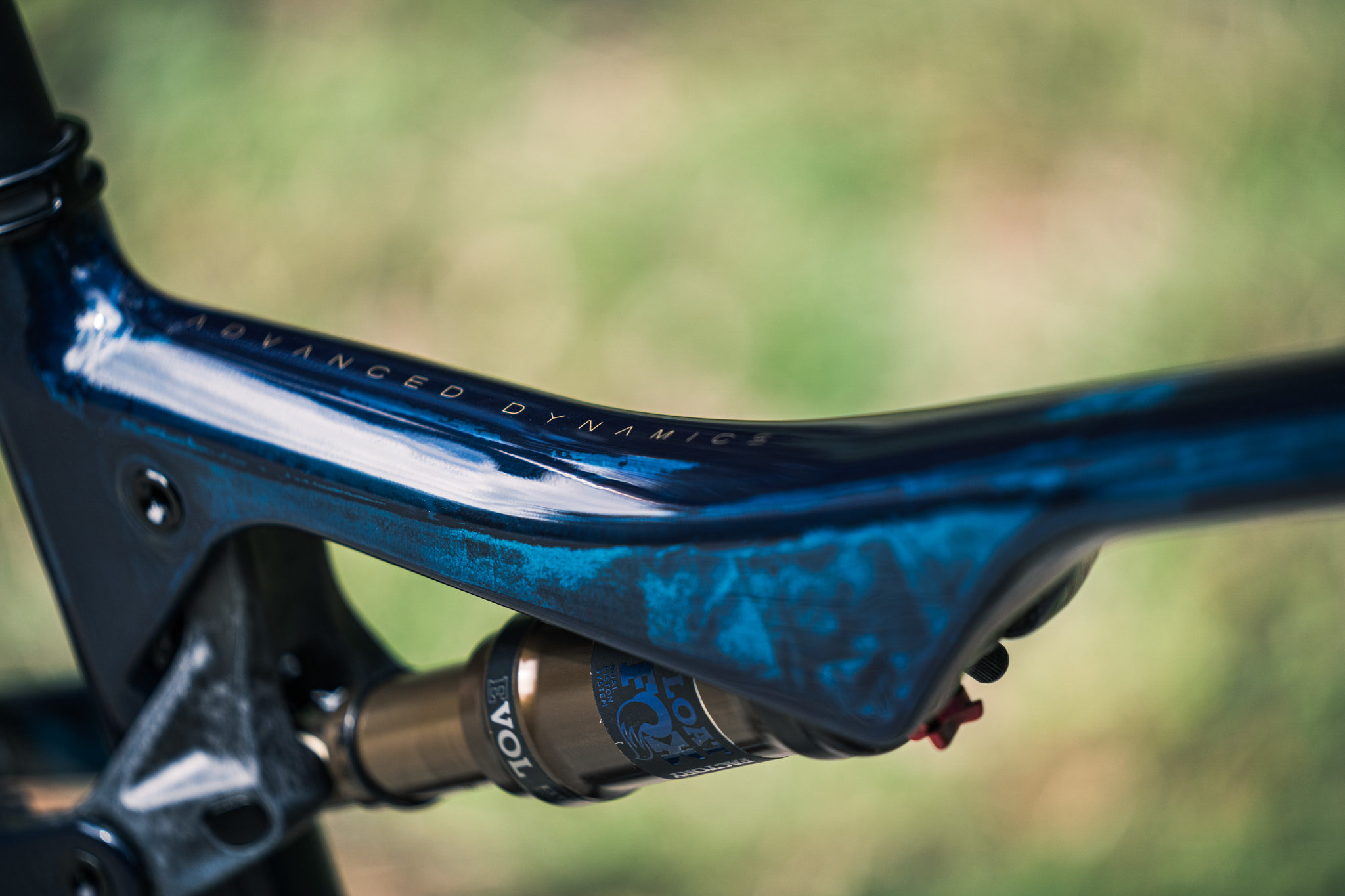 Le résultat, d’après la marque, c’est un poids annoncé du cadre, de la visserie et de l’amortisseur, à 1740g (en taille M), soit 250g de moins que pour le millésime précédent.