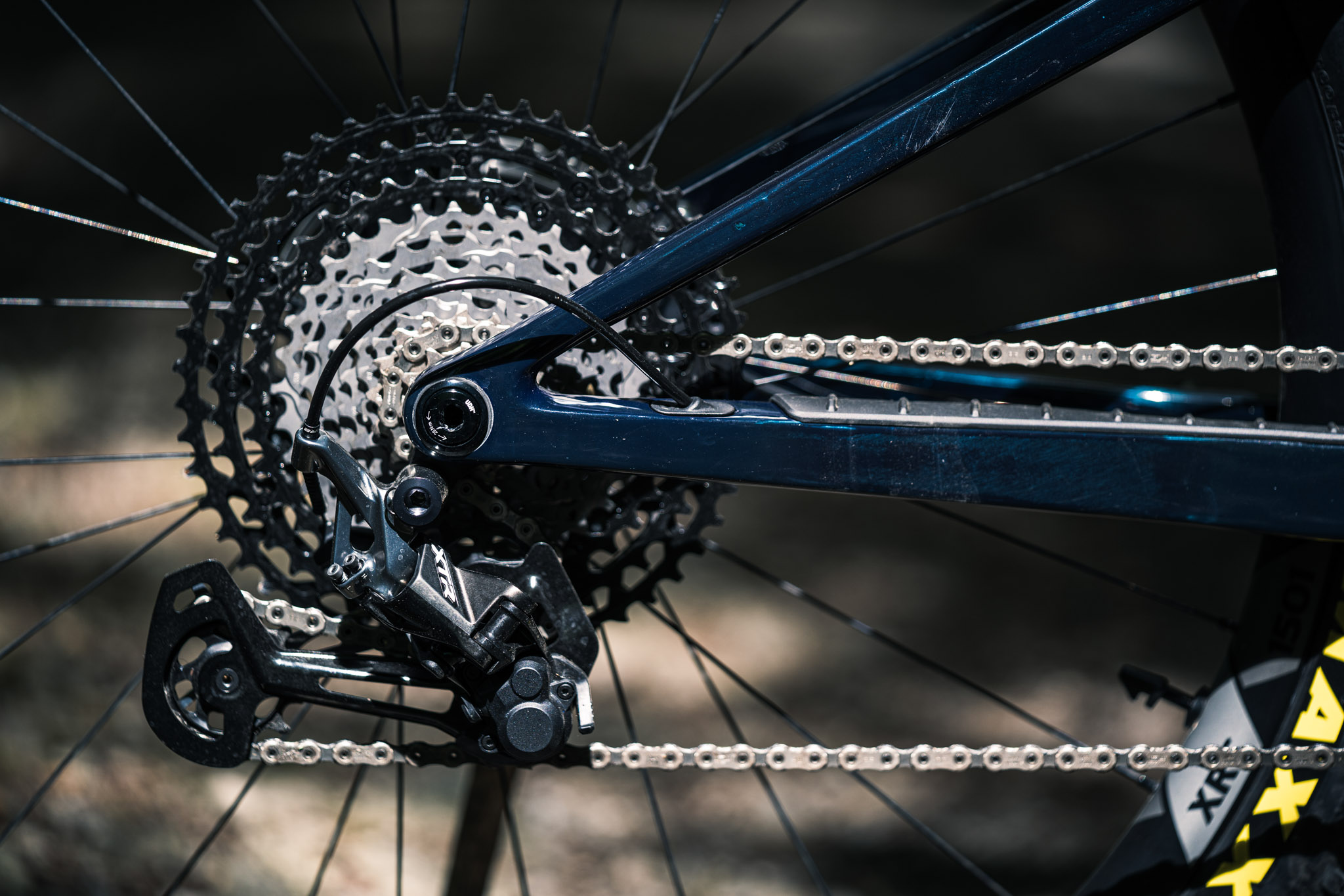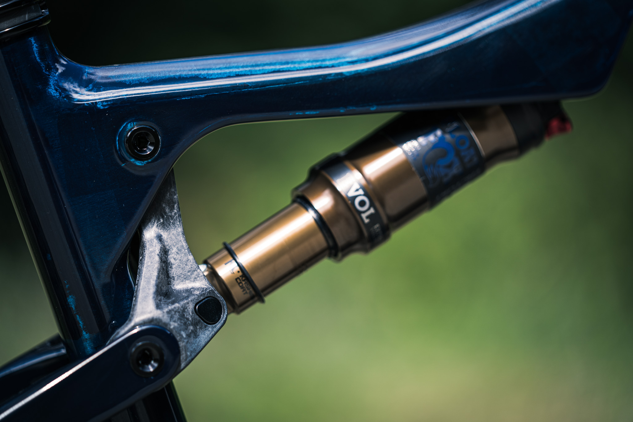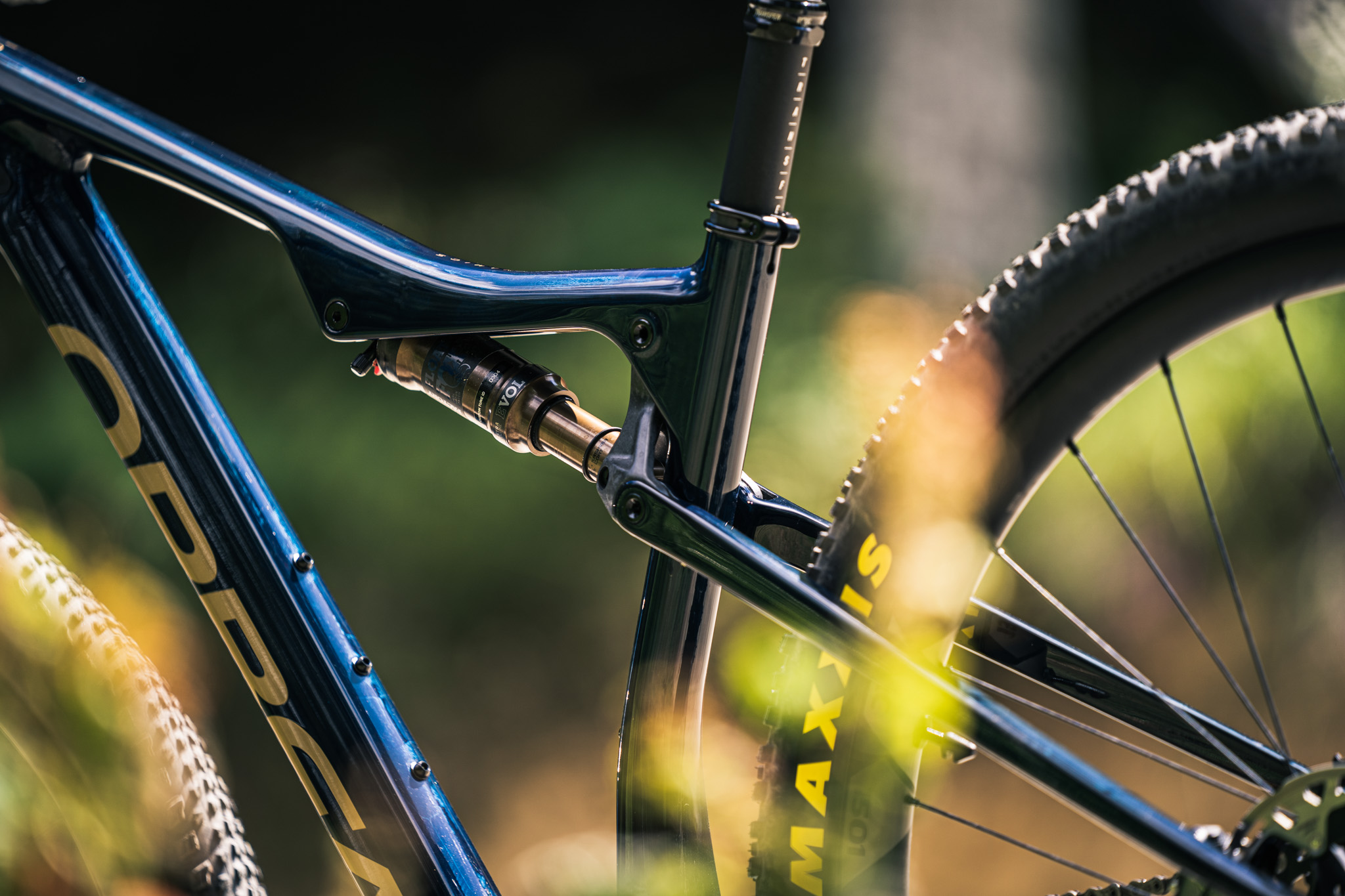 La construction d’un cadre carbone nécessite un moule et si celui du triangle avant reste identique, le triangle arrière évolue légèrement sur la version OMX haut de gamme. La cinématique reste identique, mais les bases se raccourcissent légèrement et affichent 430mm de long. Sur les versions OMR et alu, les bases restent à 435mm.