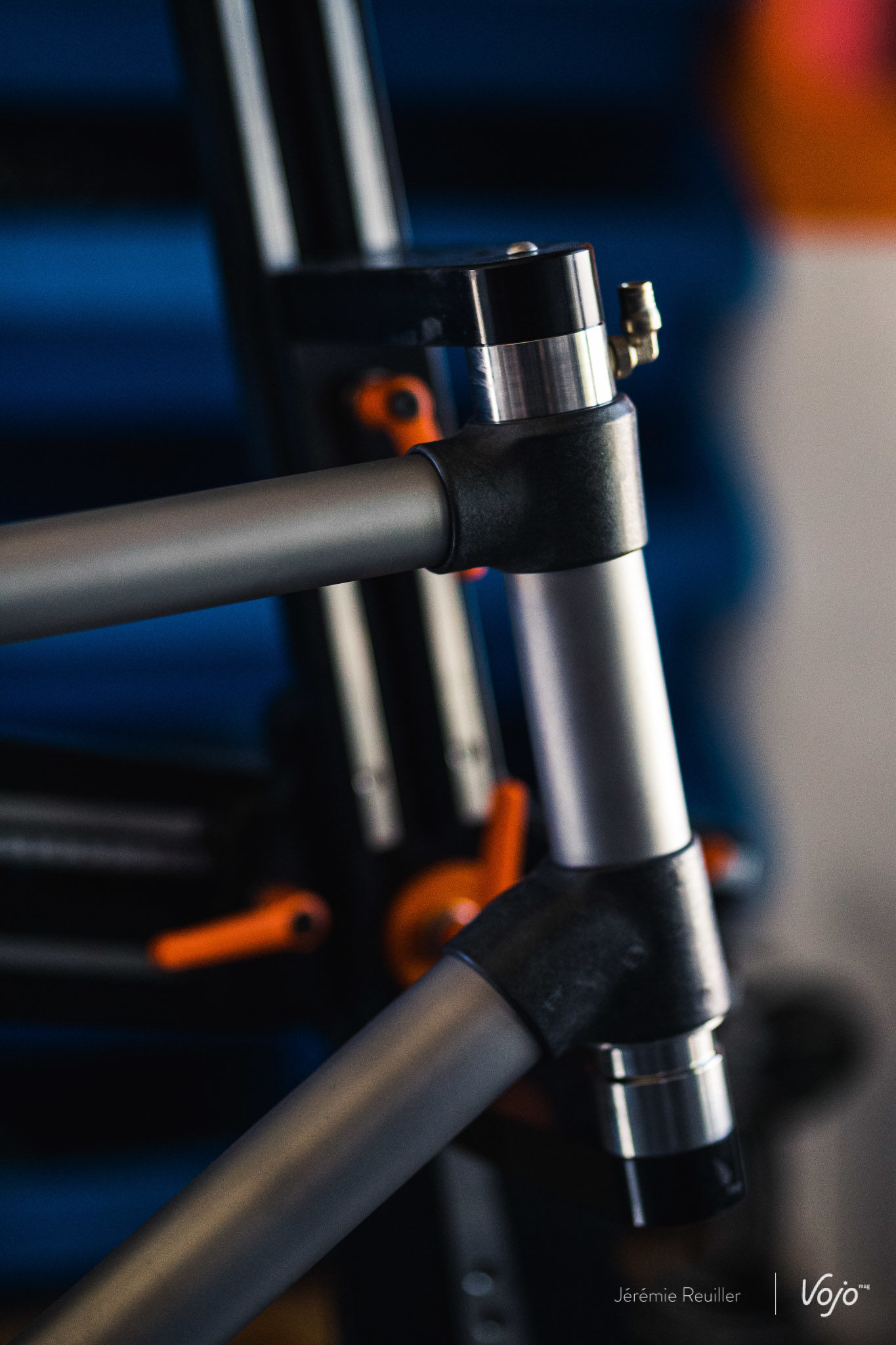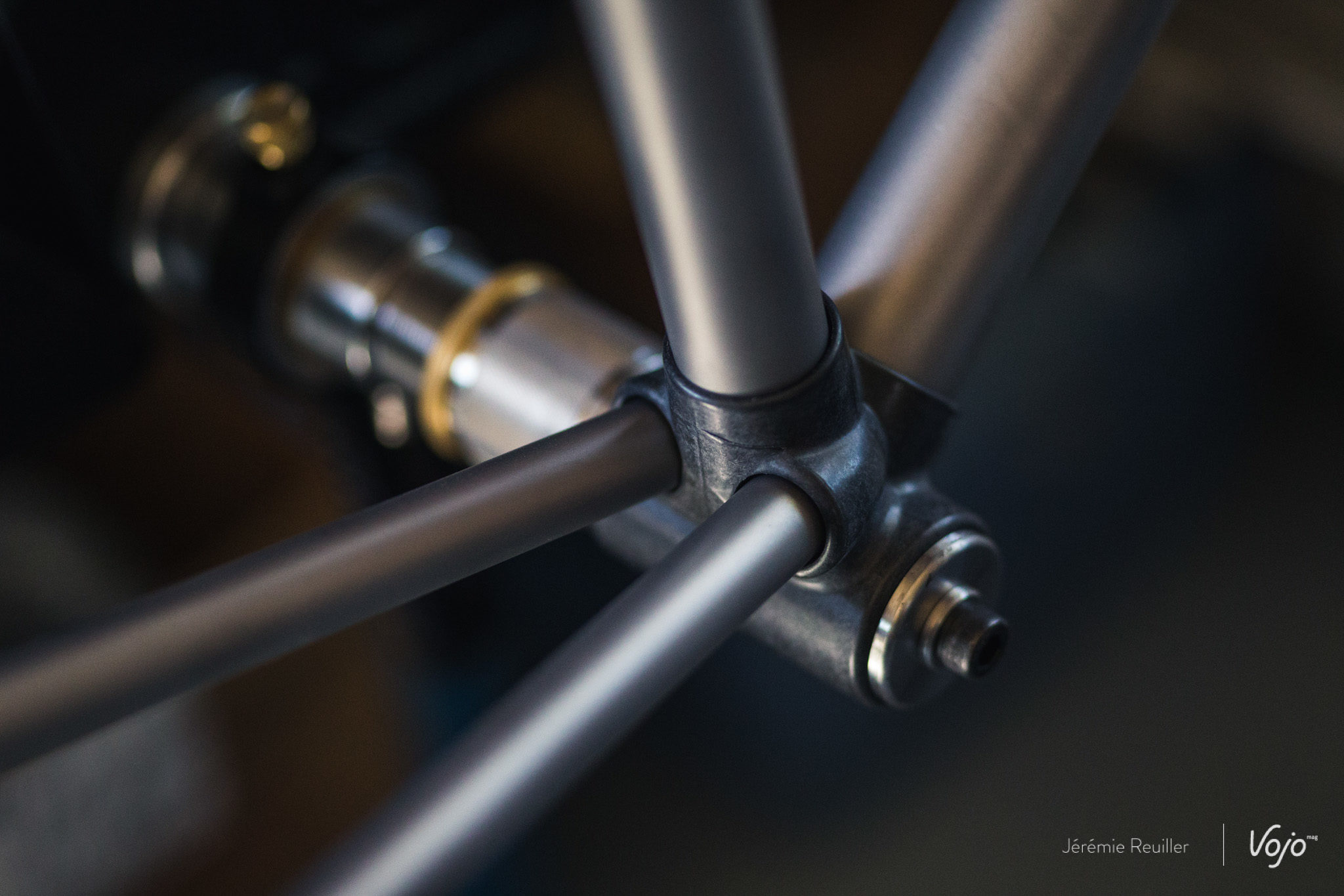 D’autant que parmi nos montures, on a eu la possibilité de croiser une nouvelle réalisation signée Caminade. La marque pyrénéenne, qui conçoit fabrique, soude, assemble, monte dans son atelier à Ille-sur-Têt, présentait en effet pour l’occasion son nouveau cadre de vélo, lui aussi baptisé AllRoad. Nous n’avons pas eu la possibilité de rouler dessus faute d’exemplaires suffisants, mais ce modèle est réalisé sur mesure en tubes titane assemblés via des éléments en carbone issus de la fabrication additive (en 3D).