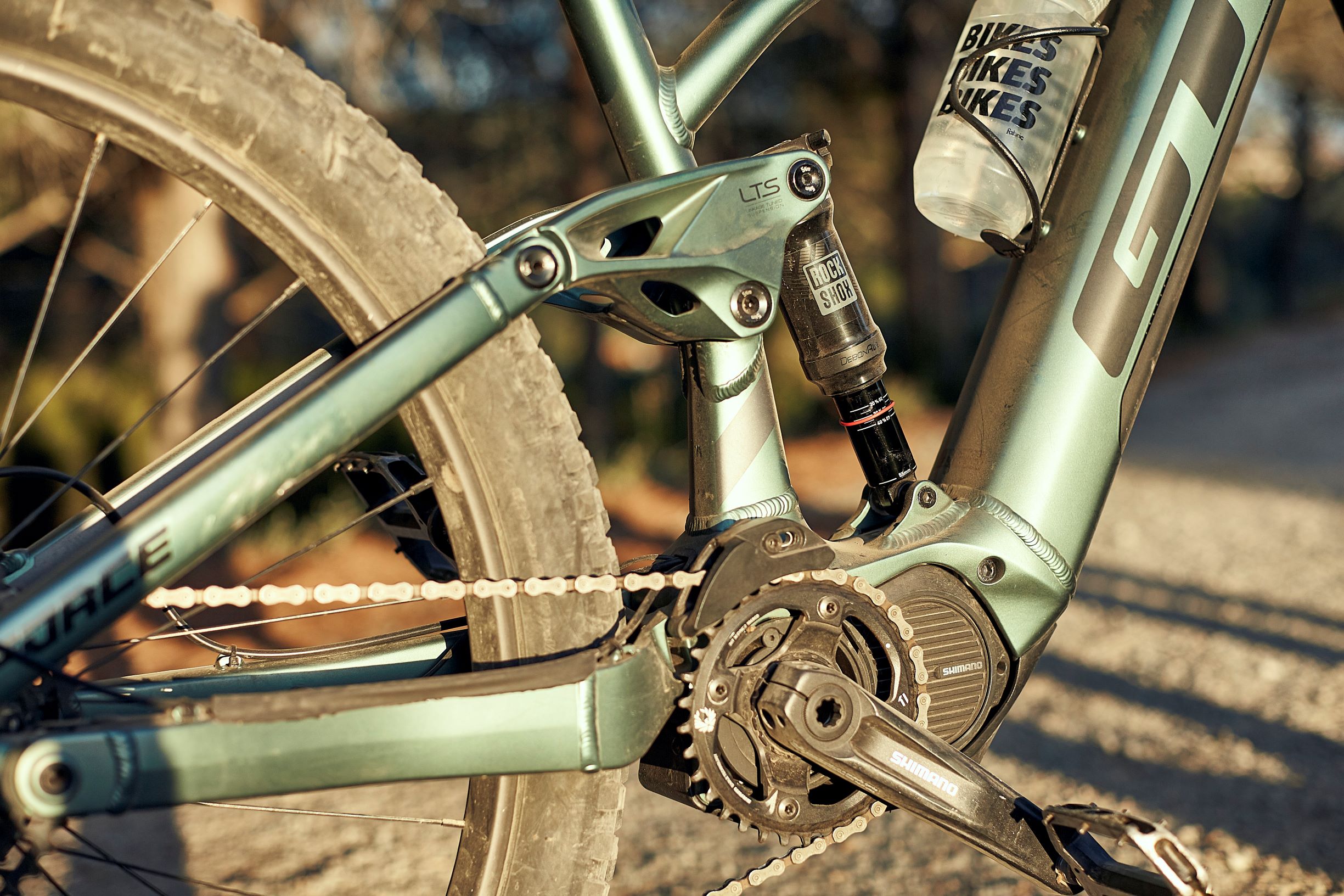 Plus intéressant pour nos pratiques, le Force GT-E est lui entièrement nouveau chez GT. Monté en roues de 29″ (pneus en 2.35), il développe 150 mm de débattement à l’avant comme à l’arrière. Il reprend la suspension LTS et de manière générale les lignes du GT Force d’enduro, même si la cinématique a été adaptée au poids de l’e-bike.