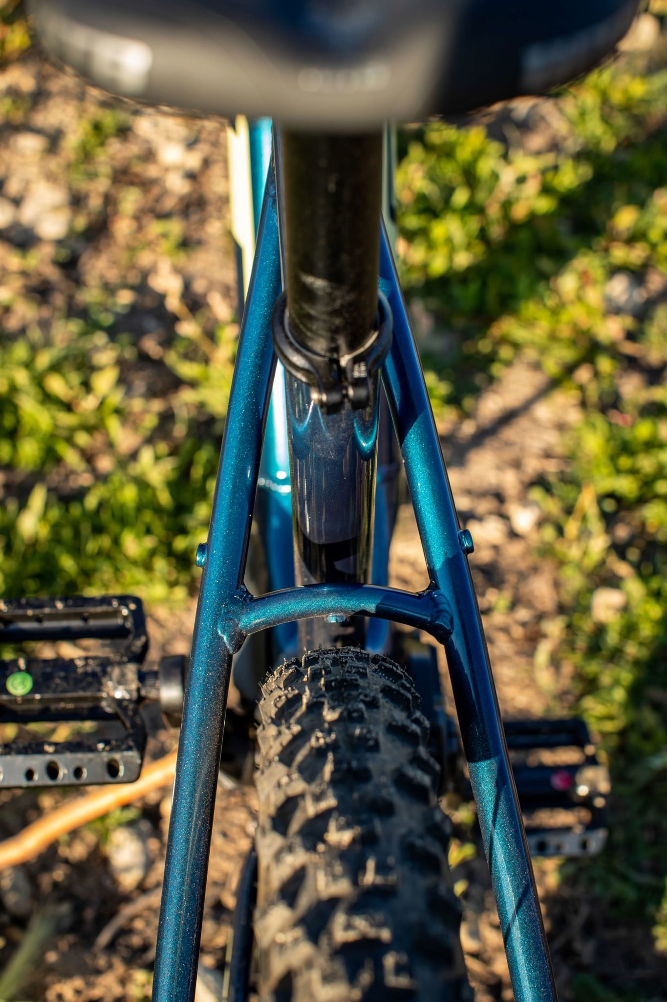 GT met particulièrement l’accent sur le confort de son vélo et l’annonce 50 % plus souple que les semi-rigides dotés d’un design similaire, notamment grâce au tube de selle « flottant » qui n’est pas rigidifié par les haubans (ces derniers viennent se fixer directement sur le tube supérieur du cadre).