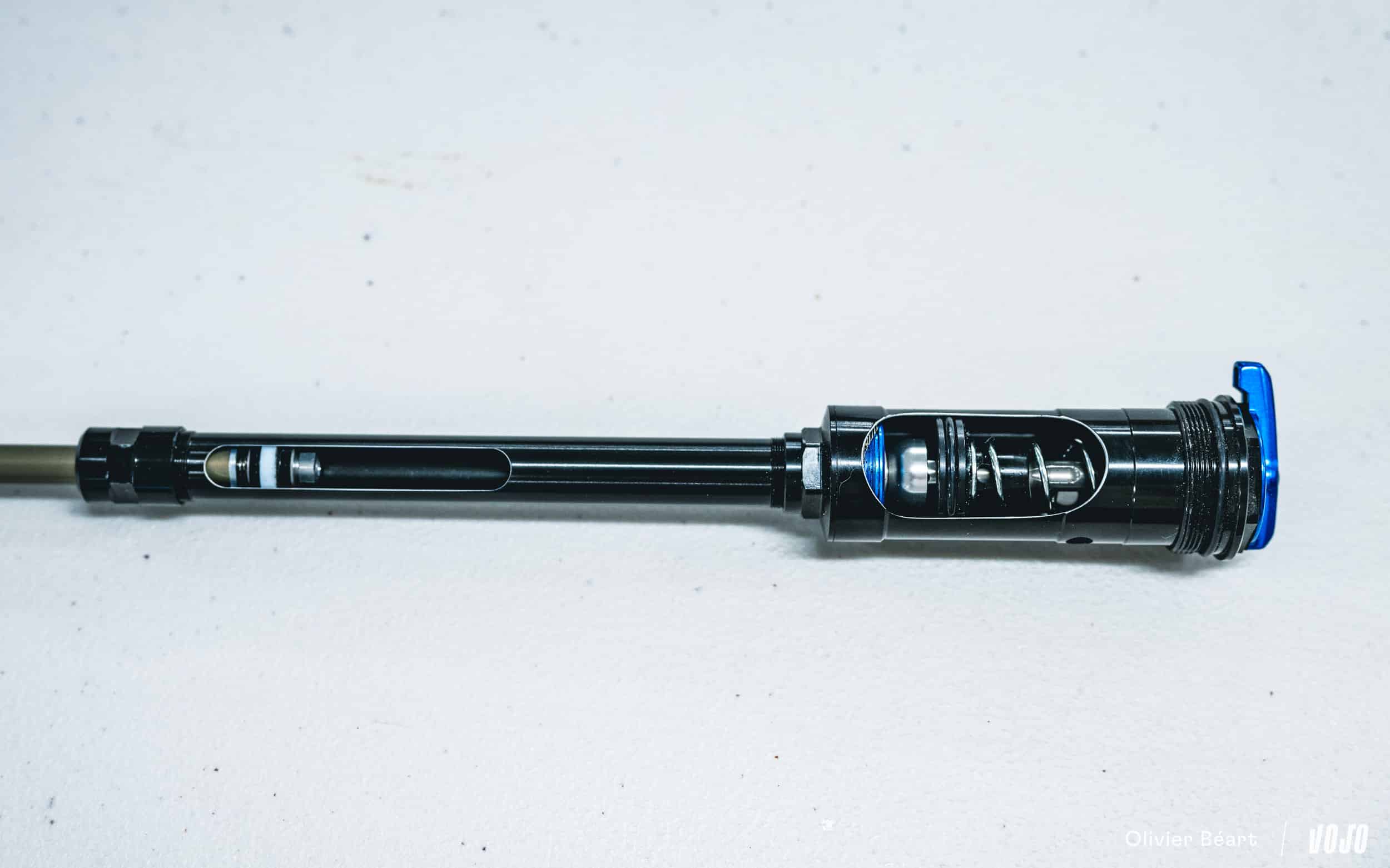 « Dans les cartouches Fit4, il y avait une membrane en caoutchouc qui pouvait toujours se déformer un peu, donnant une position bloquée un peu trop souple aux yeux de certains. Elle était aussi plus sensible à l’entrée d’air et devait être purgée régulièrement lors de l’entretien. Ici, avec la GRIP SL, on change complètement de conception, ce qui permet à la fois d’avoir un blocage plus ferme et plus durable, avec un entretien simplifié. »
