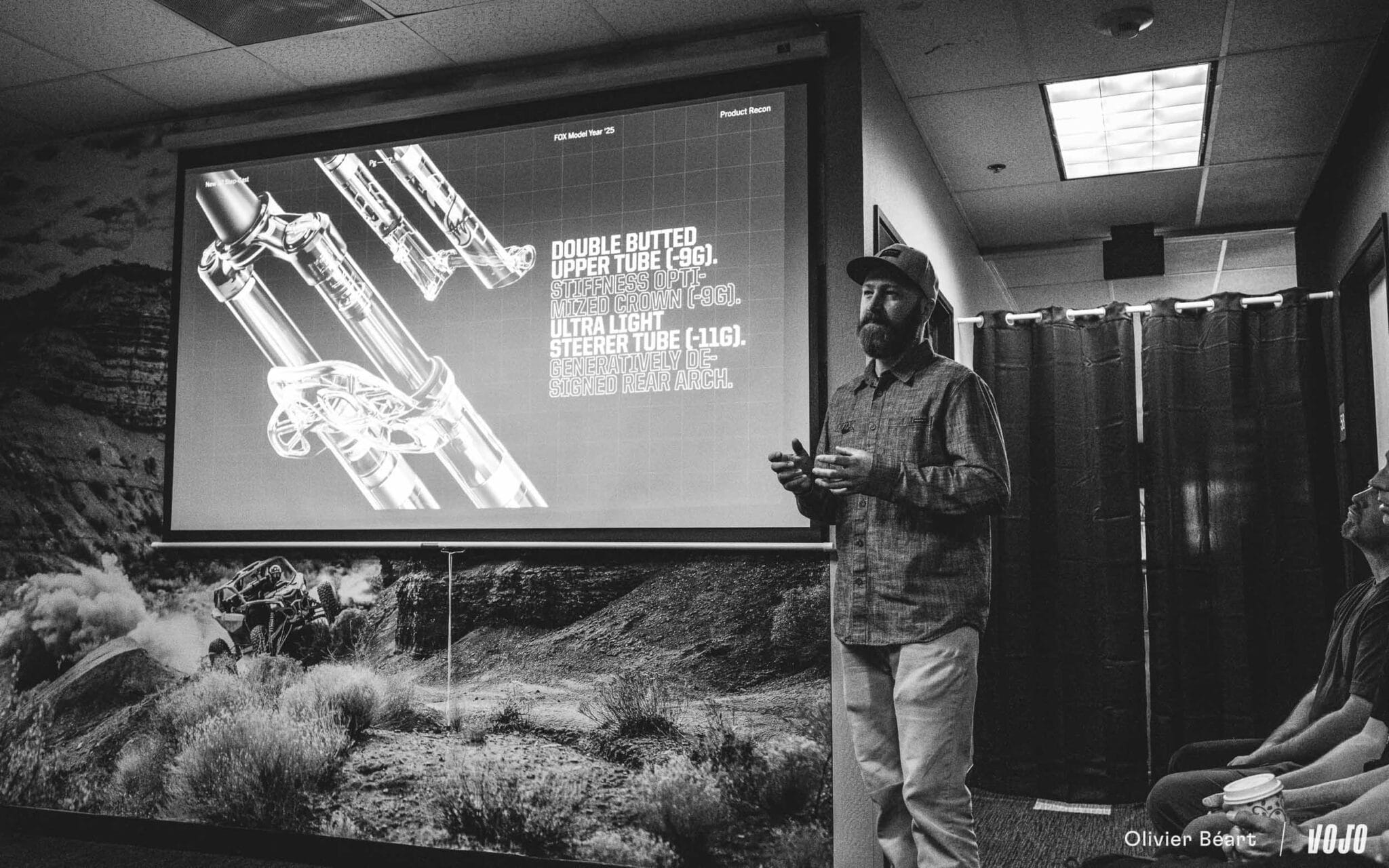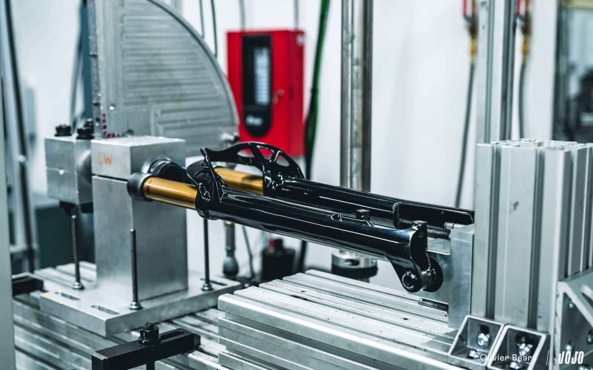 « Nous avons utilisé la puissance des derniers logiciels de « Generative Design », qui aident à déterminer la forme optimale et la moins consommatrice de matière pour une pièce en fonction des contraintes qu’elle va subir. Ensuite, il faut raffiner cette forme en fonction de ce qu’il est possible de faire en production, mais cela nous a aidés non seulement à gratter quelques grammes par rapport au précédent arceau de la 32 SC de forme classique, tout en augmentant la rigidité torsionnelle de 40%« , nous explique avec un brin de fierté Bryan Anderson, membre du bureau d’ingénierie de Fox Racing Shox.