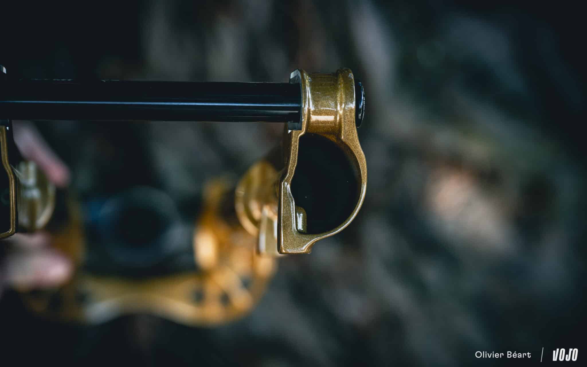 Ce nouveau châssis sera disponible en édition (très) limitée 50e anniversaire (comme l’exemplaire qui illustre cet article) reconnaissable à la couleur dorée des fourreaux, très similaire à celle du revêtement Kashima des plongeurs. La version Factory classique sera disponible dans les couleurs classiques de Fox, noir et orange, avec traitement Kashima sur les plongeurs, et une version Performance est également au programme (reconnaissable à ses plongeurs noirs).