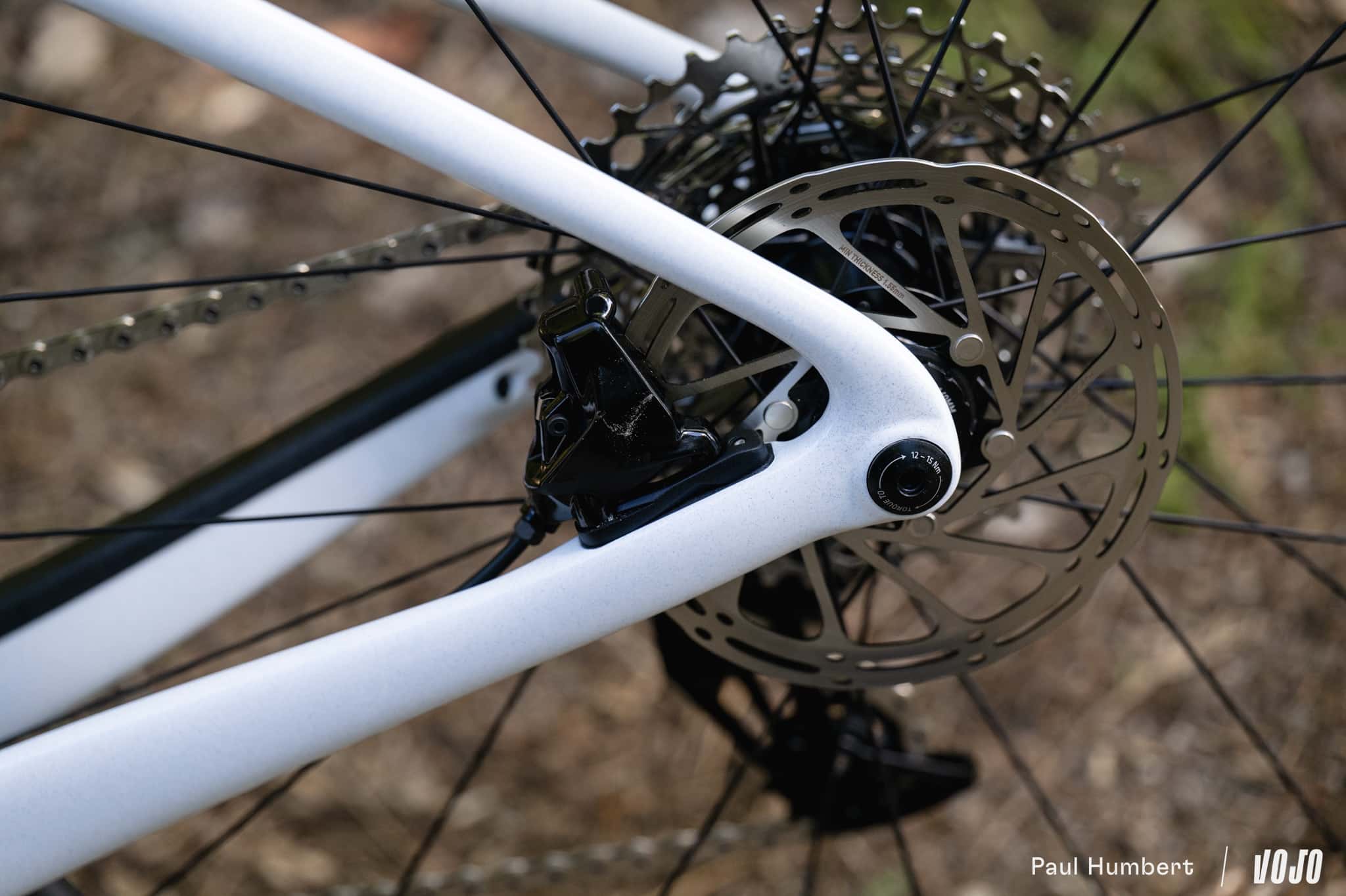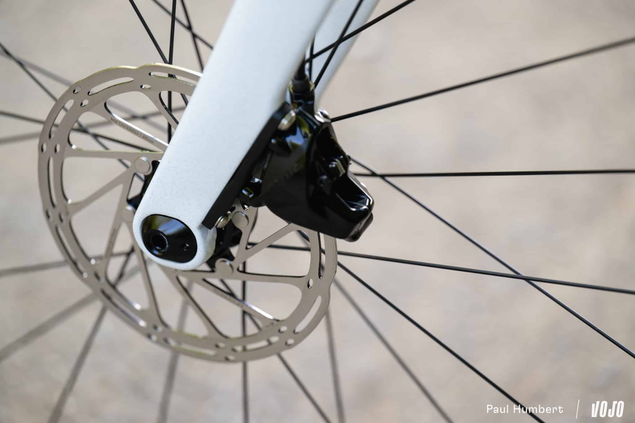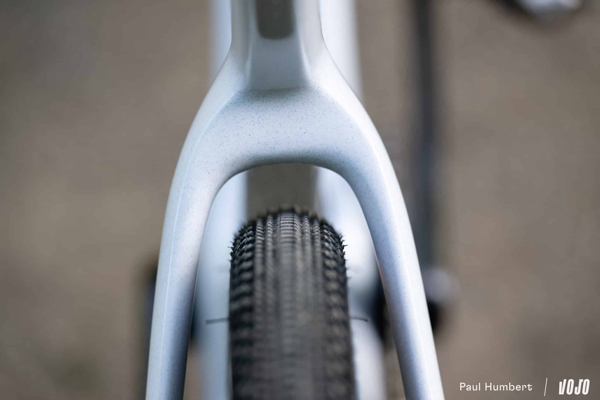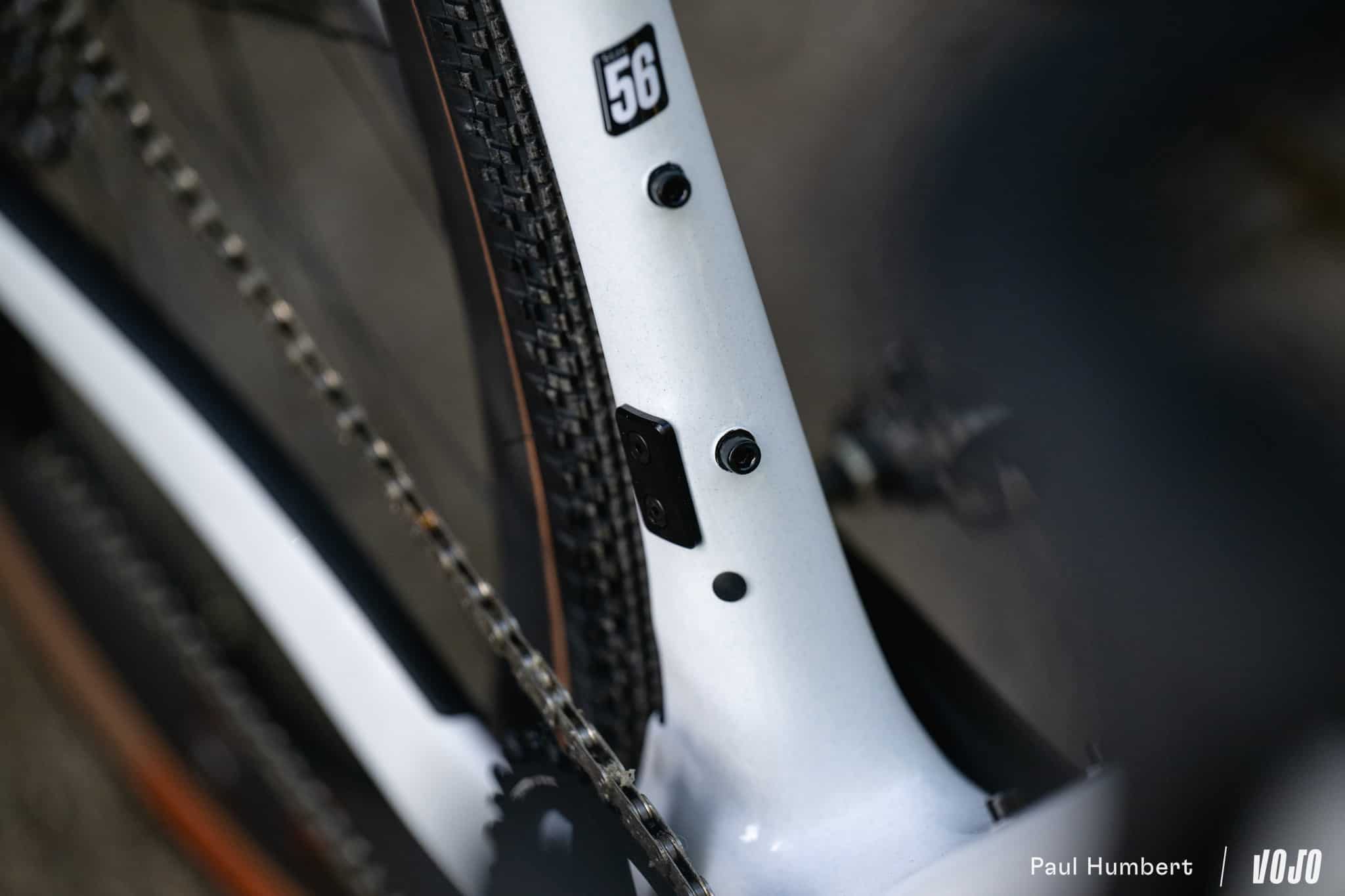 Dans la même optique, le dégagement pour les pneus augmente légèrement : on passe de 700×40 à 700×45 aux standards ISO, ou 700×42 « avec suffisamment de place pour être tranquille dans les pires des conditions » comme Cervélo préfère le présenter. En 650b on peut aller jusqu’à du 48 mm, mais s’il y a bien un vélo qu’on ne voit pas avec ce format de roue c’est bien l’Áspero…