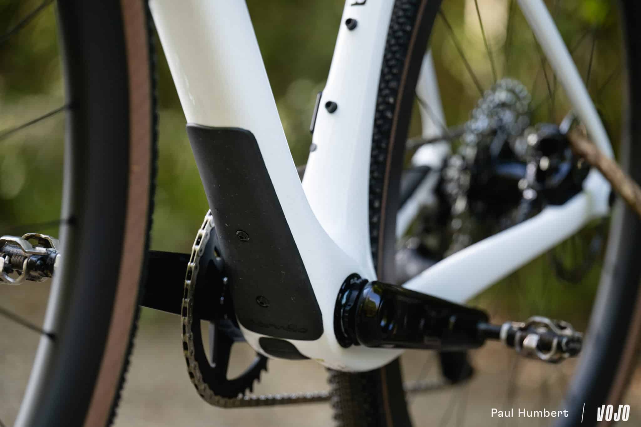 Enfin, le trajet des gaines est revu… et contrairement aux autres changements, celui-ci s’annonce moins pratique pour les mécaniciens que sur le premier Áspero. Le vélo adopte en effet des passages via le jeu de direction, comme l’Áspero-5 très haut de gamme et comme c’est la norme aujourd’hui dans cette catégorie de gravel très sportifs. C’est plus joli que les drôles d’entrées sur le tube diagonal qu’on avait avant, peut-être plus aérodynamique mais certainement moins facile pour toutes les interventions qui touchent aux câbles, Durits ou au poste de pilotage.