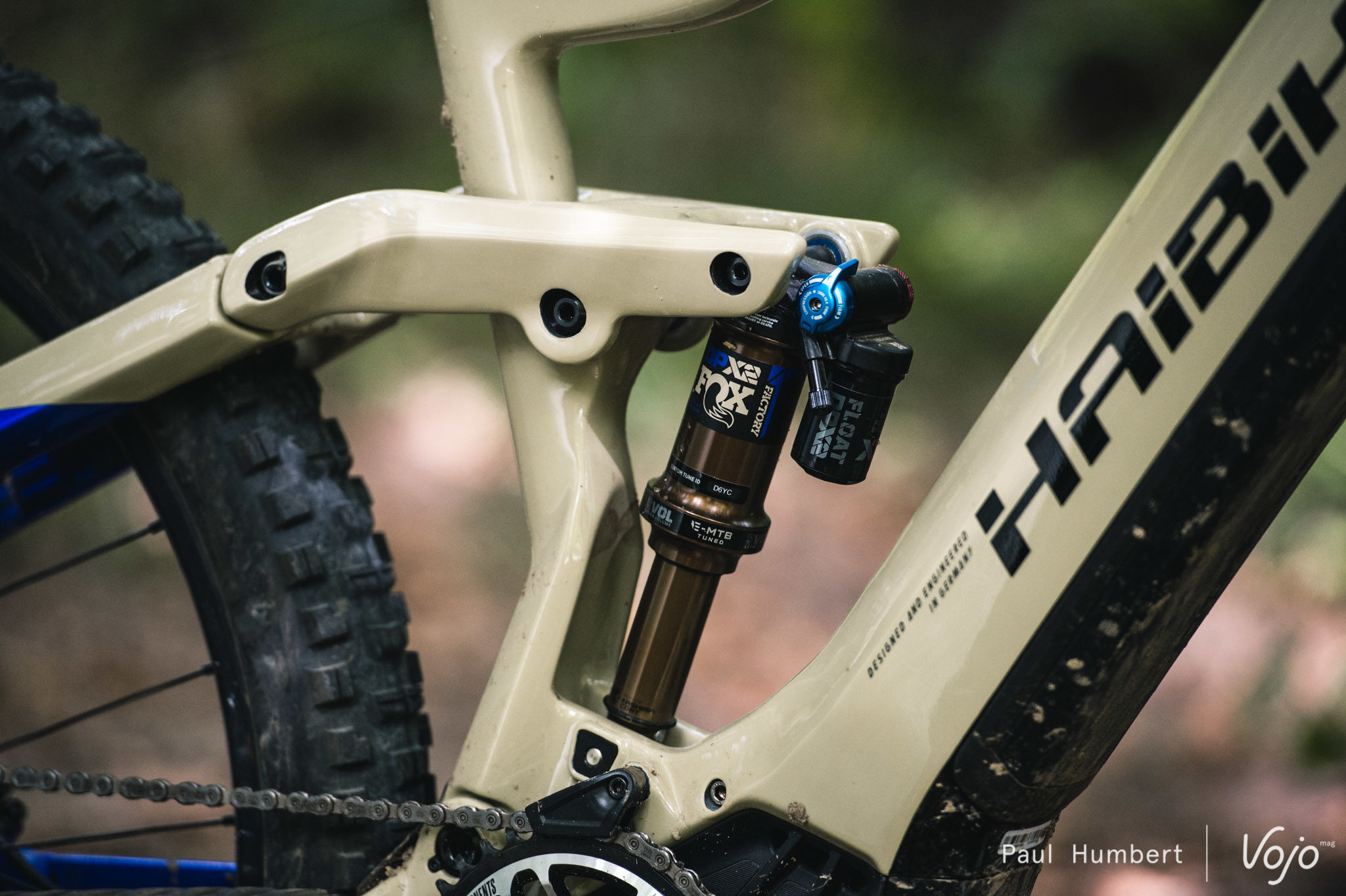 Malgré le positionnement trail / all-mountain du vélo, c’est la Fox 38, une véritable fourche d’enduro, qu’a choisi la marque allemande pour gérer les 160 mm de débattement disponibles à l’avant. Elle est couplée à une classique cinématique de type 4 bar linkage (voir notre lexique des cinématiques) qui développe également 160 mm et qu’Haibike annonce retravaillée vis-à-vis des anciens modèles, avec plus d’anti-squat pour rester plus haut dans le débattement au pédalage.
