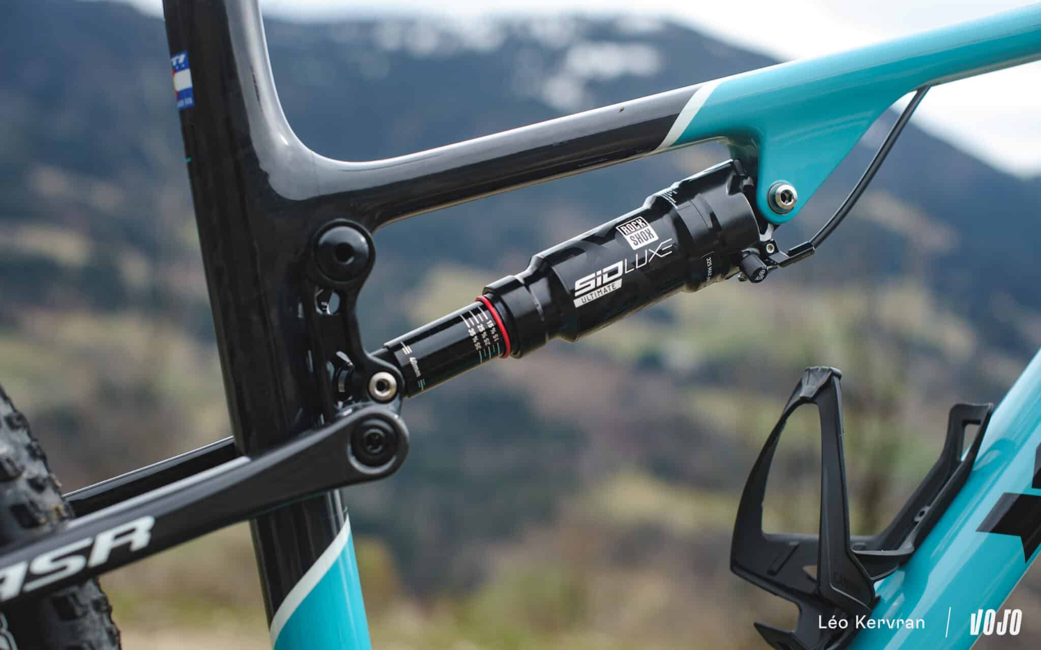 A cet égard, Yeti a opté pour une approche assez particulière : la suspension travaille sur des ratios élevés et se veut très peu progressive (début à 3 et fin vers 2,7). En revanche, malgré son débattement relativement important pour un XC l’ASR est équipé d’un tout petit amortisseur, avec une course de 40 mm seulement. La pression augmente donc rapidement dans la chambre d’air, ce qui donne un ressort très progressif même si la suspension ne l’est pas intrinsèquement. Résultat, Yeti recommande de régler le vélo avec un sag de 30 %, une valeur assez rare dans la catégorie.
