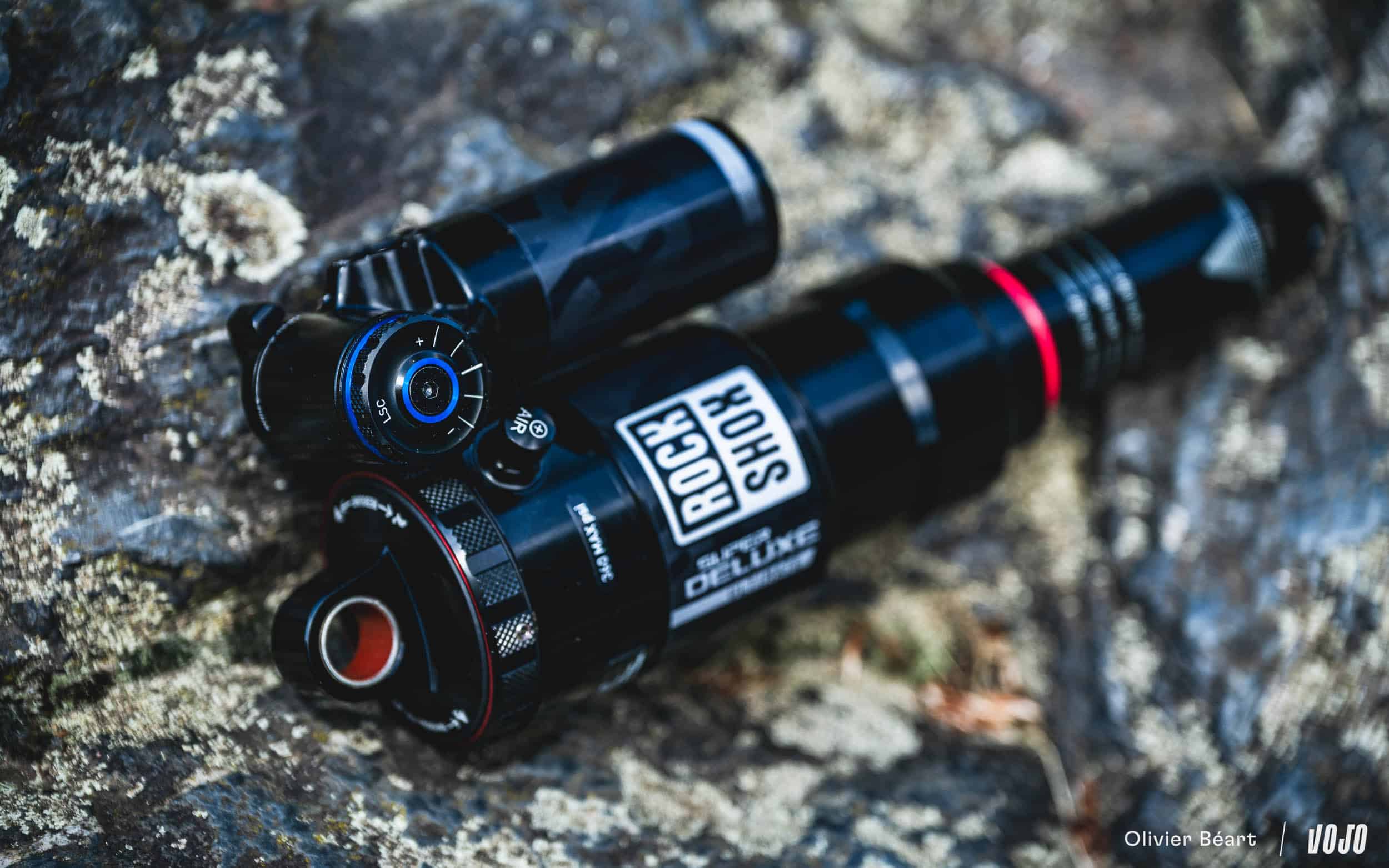 Sur le Super Deluxe, la marque américaine a cherché à accompagner les évolutions des fourches pour agrandir là aussi la plage de réglage des compressions. L’amortisseur reçoit ainsi un nouveau piston et un nouveau ressort de rappel au niveau du rebond, tandis que les circuits de compression situés dans la bonbonne ont été retravaillés. Par ailleurs, le réglage de compression BV intervient maintenant à des vitesses de plongeur plus élevées qu’auparavant afin de mieux correspondre aux vitesses d’enfoncement du plongeur sur le terrain, dixit RockShox.