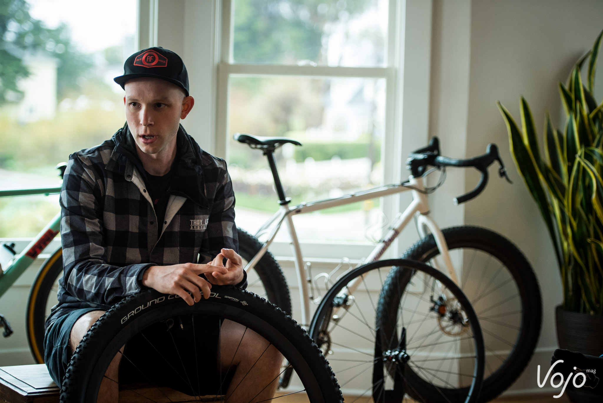 Ce qu’on nous rappelle également, c’est que les concepteurs des roues travaillent étroitement avec ceux des pneus (assez logiquement, les pneus Specialized dans le cas de Roval). Il est évidemment intéressant d’optimiser le profil et le ballon du pneu en fonction de la jante. La traction et la résistance de ce dernier auront un impact considérable sur la qualité finale des trains roulants. Dans le cas de la nouvelle Control SL, c’est avec des pneus de section 2.3 que nous avons découvert leur comportement. Steve indique d’ailleurs que des pressions très légèrement plus basses sont recommandées. Le pneu restera stable et sa forme sera plus en accord avec la nouvelle jante. Nous consacrerons d’ailleurs un autre article aux pneumatiques qui nous ont vraiment séduits.