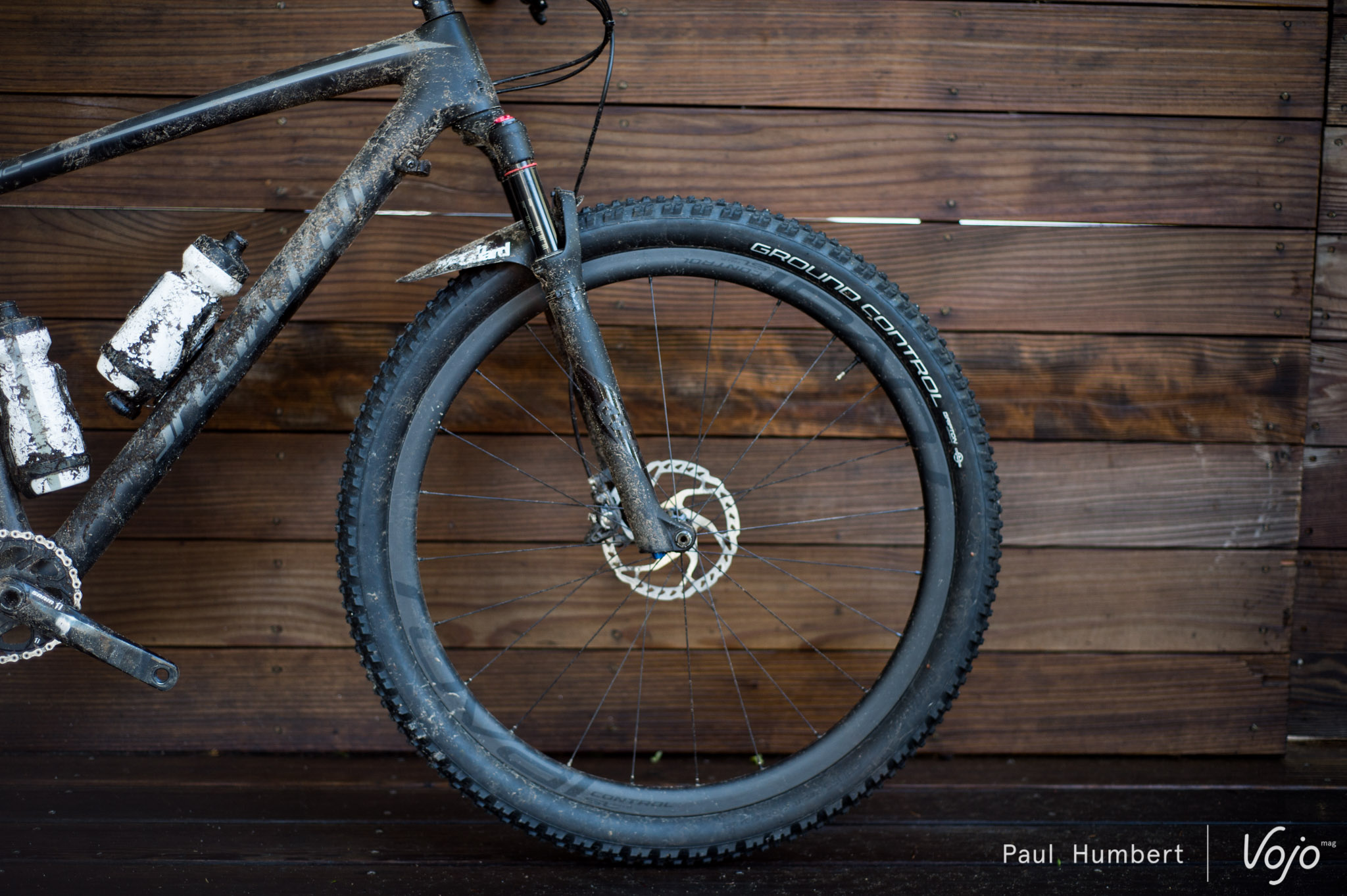 Les petits chocs sont filtrés et on conserve un grip impressionnant. Les glissades « anticipées » on toujours lieu évidemment, mais nous n’avons jamais été surpris. La roue a un comportement très subtil et le gain de son élargissement est indéniable.