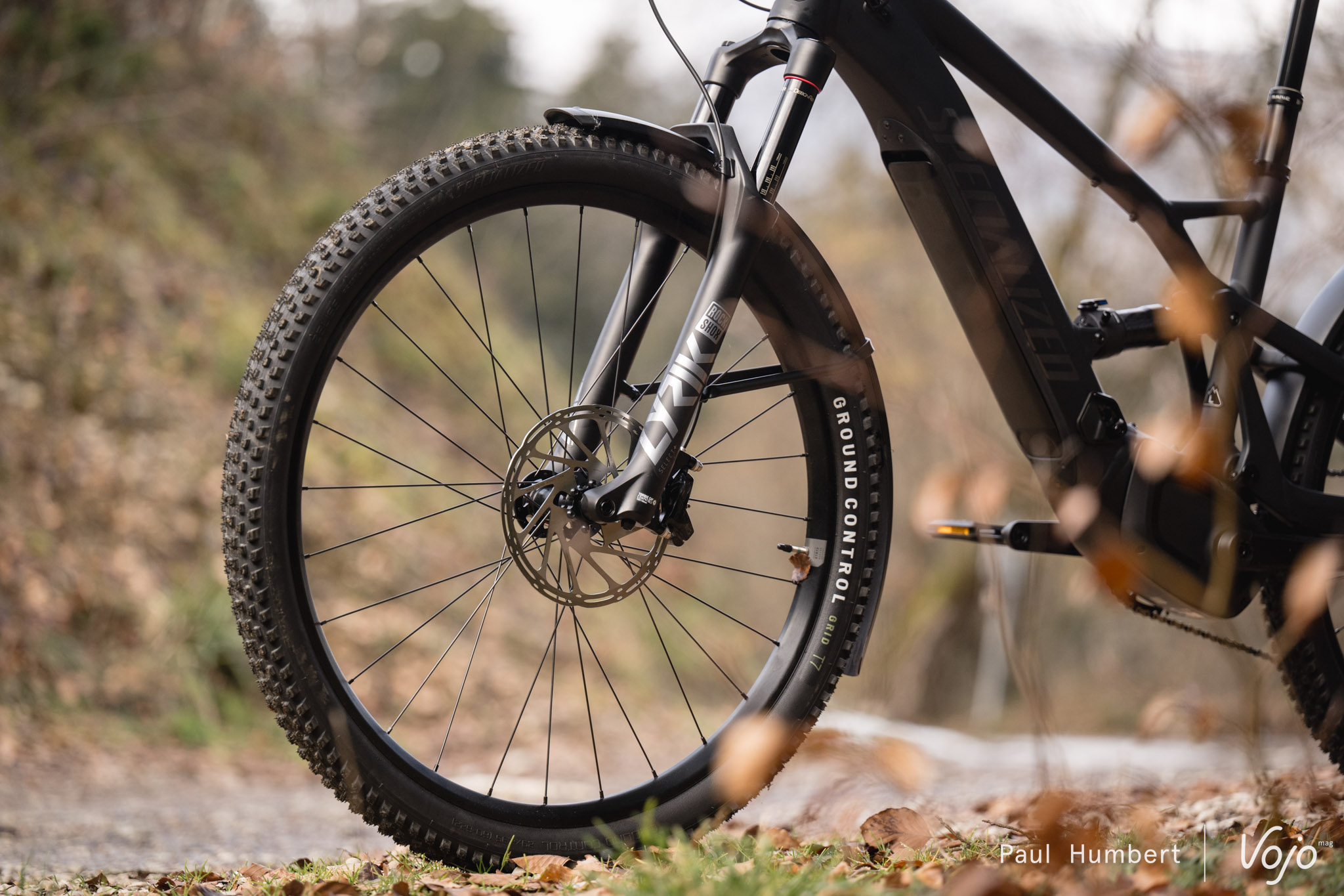 Les suspensions : Ce qu’on repère évidemment, c’est la suspension arrière, un mono-pivot très simple mais qui ouvre déjà de belles perspectives en VTT « tranquille ». Sur le modèle 6.0, c’est un amortisseur Rockshox Deluxe Select + blocable qui est couplé à une fourche Rockshox Lyrik Select+ de la même marque en 130mm de débattement. En VTT, les modèles d’entrée de gamme trouvent leurs limites dans les portions les plus raides ou sur les gros chocs qui viennent faire plonger plus que de raison les suspensions. Pour une utilisation plus tranquille, les cartouches proposées permettent d’apporter largement assez de filtration et de confort.