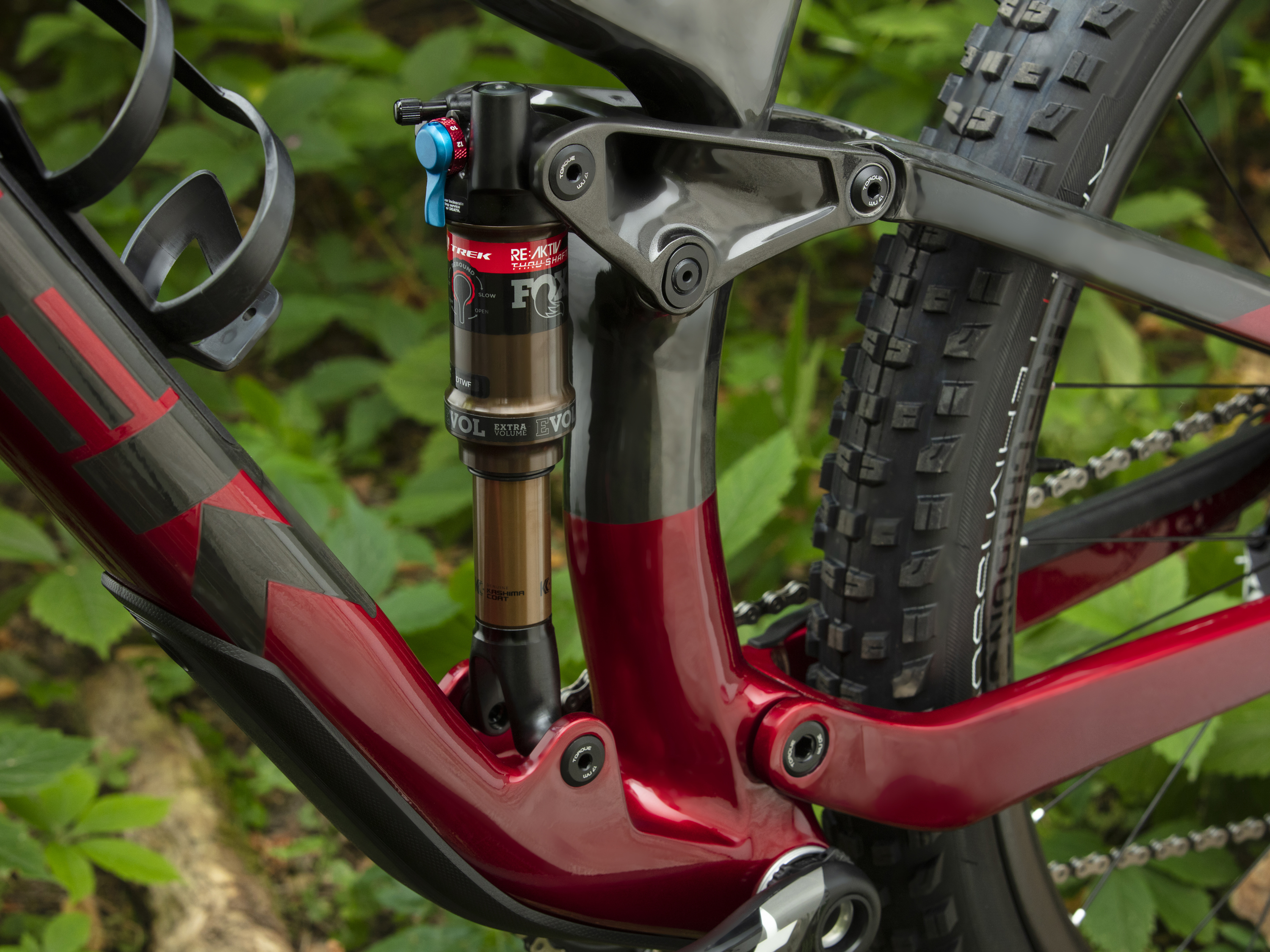 L’abandon du Full Floater a nettement simplifié la conception de la zone autour du boîtier de pédalier et des bases, ce qui a permis d’obtenir des bases plus rigides que par le passé tout en dégageant de la place pour des pneus plus gros puisque ce nouveau Fuel EX est désormais monté en 29 x 2,6.