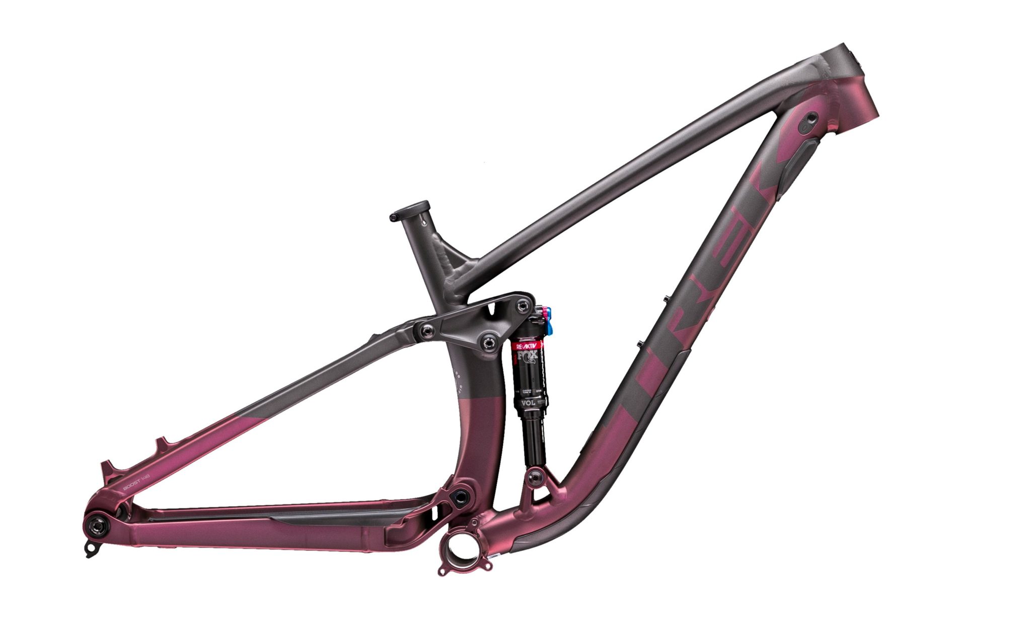 Côté construction du cadre, les versions carbone-aluminium disparaissent pour 2020. Le Fuel EX sera disponible soit en version tout carbone (triangle avant et arrière + biellette), soit en version tout aluminium (biellette en magnésium). Elles disposent toutes d’une généreuse protection vissée sur le tube diagonal, facile à remplacer en cas de problème.