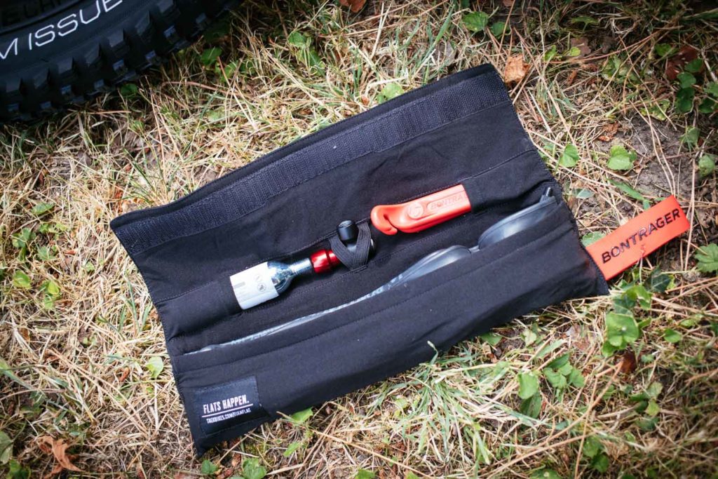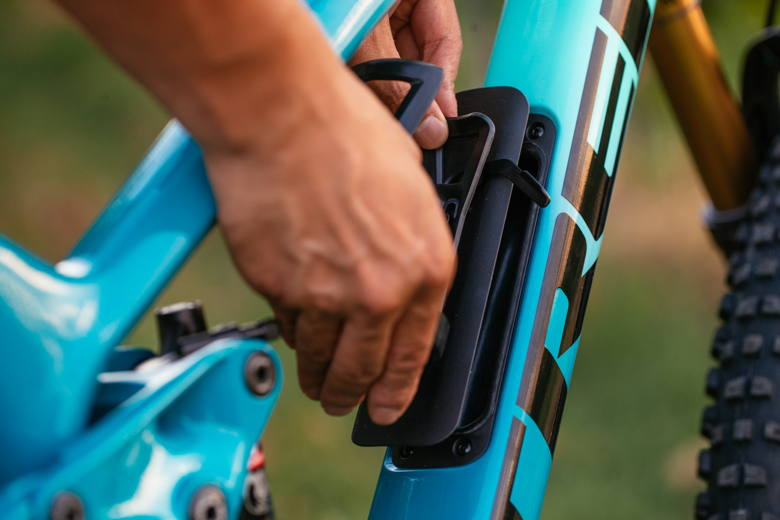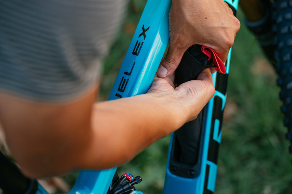 Très similaire au système SWAT de Specialized (mais la marque de Morgan Hill ne semble pas avoir déposé de brevet dessus), cet espace de rangement permet de stocker de manière sécurisée une chambre à air, deux démontes-pneu et une cartouche de CO2 ou une pompe fine, le tout roulé dans du néoprène pour éviter les chocs dans le cadre.
