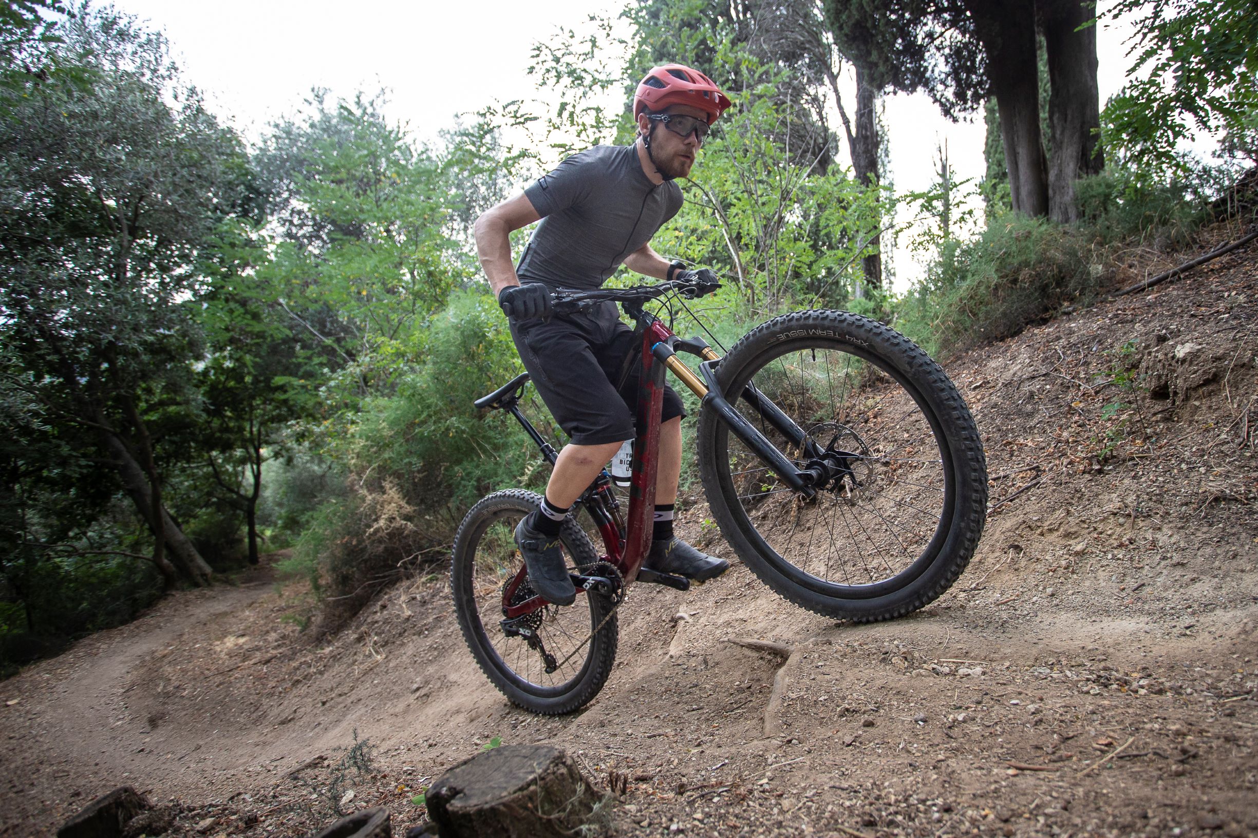 Lorsque la pente s’inverse, le Fuel EX apparaît équilibré, avec un bon dosage entre stabilité et maniabilité. Sa légèreté fait qu’il est très facile à placer et les pneus en 2,6 de section offrent un grip tout à fait correct, chose pas forcément évidente sur ce terrain très fuyant (une fine couche de sable et de gravillons sur un terrain très dur).