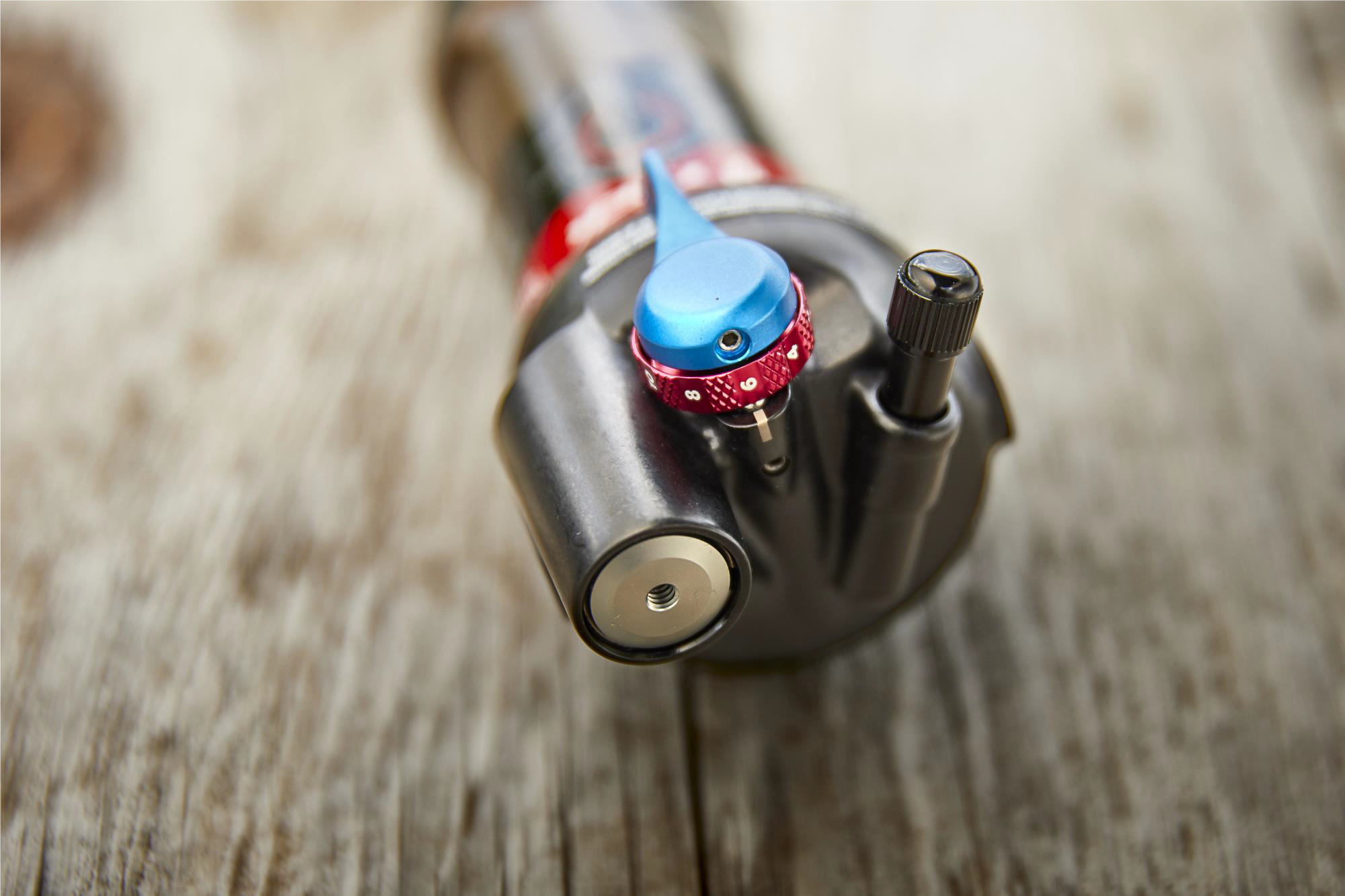 Ces avancées, on les retrouve dans le nouvel amortisseur RE:Aktiv Thru Shaft, mis à jour cette année. Si l’essentiel des modifications a lieu à l’intérieur, on remarque néanmoins l’apparition d’un petit cylindre sur le corps de l’amortisseur. Ce micro-réservoir, appelé External Thermal Compensator, permettrait de mieux évacuer la chaleur dans les longues descentes pour maintenir des performances optimales.