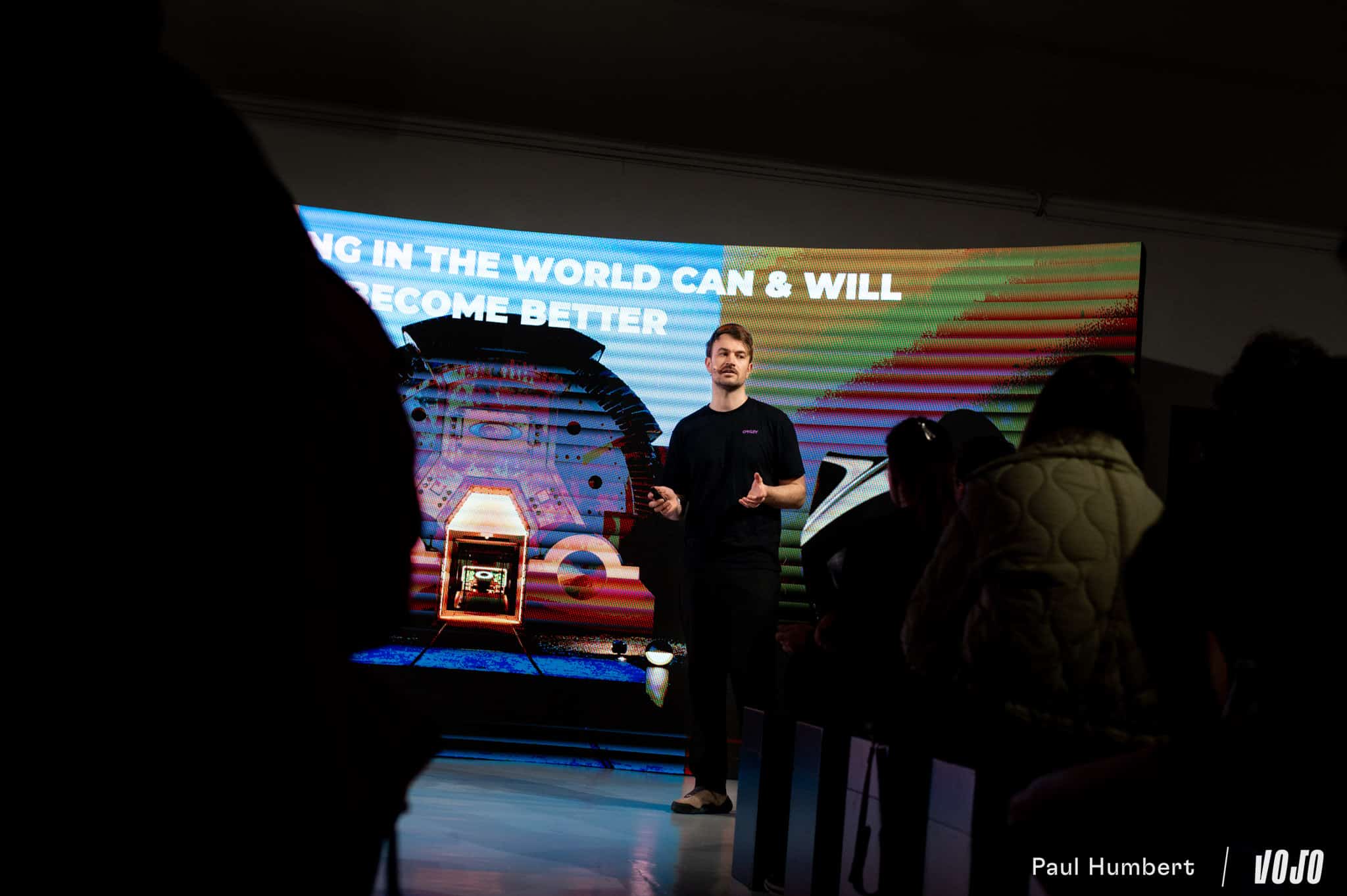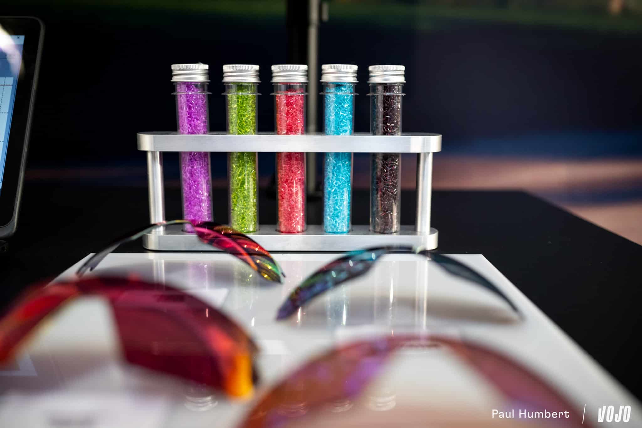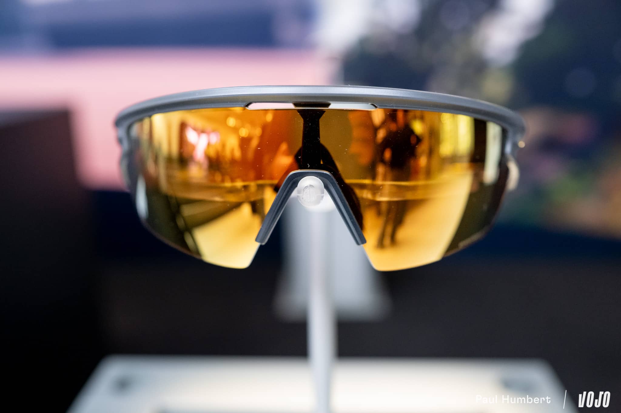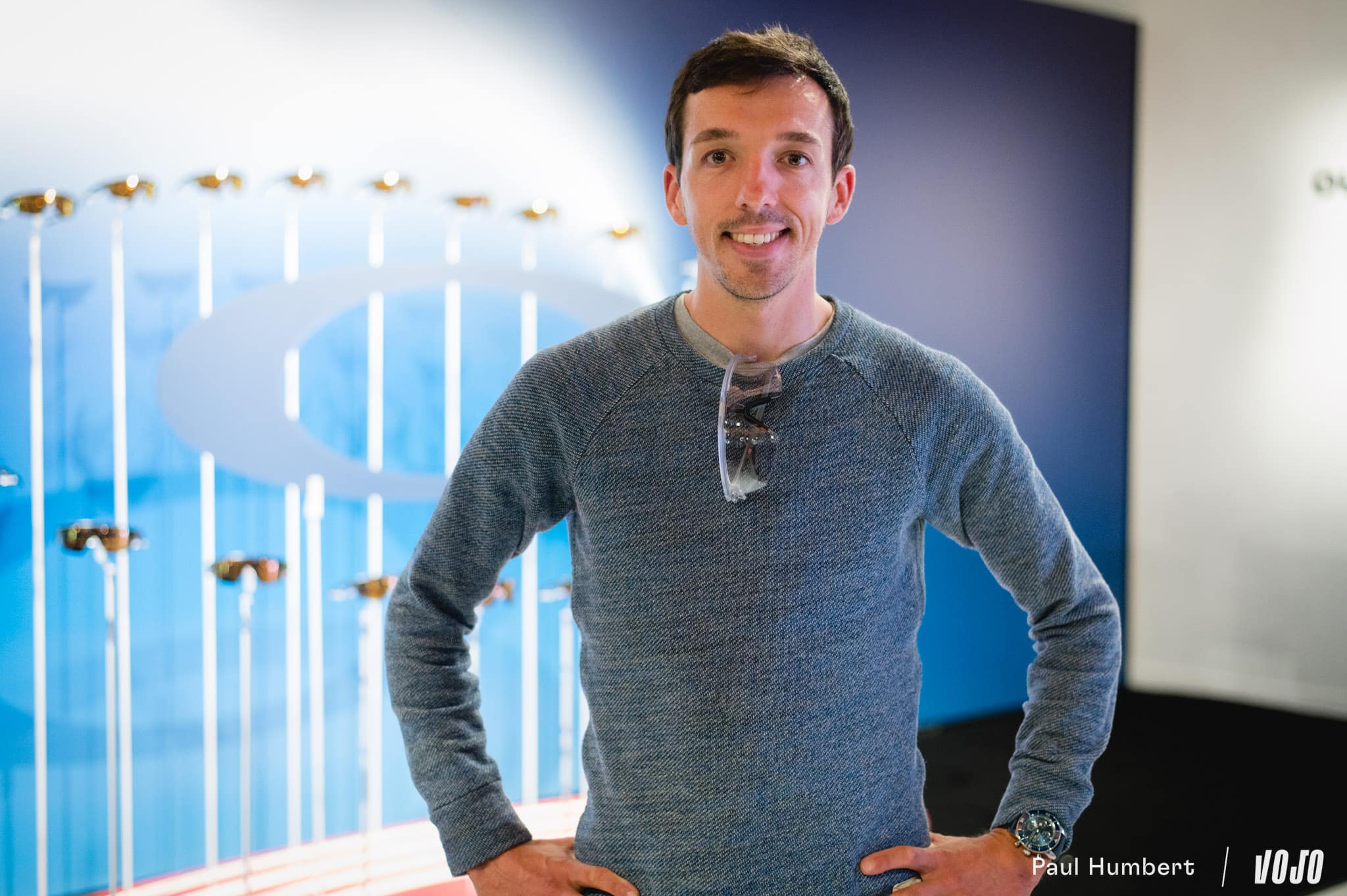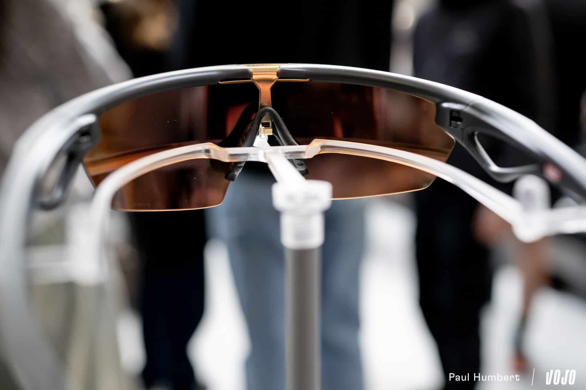 Dans l’enceinte de ce qu’Oakley a baptisé le « Sphaera hub » le temps d’une journée, on rencontre Jocelin Marchand, brand business manager pour la marque, et on lui demande : qu’est-ce qu’une bonne lunette de sport ? Il nous répond : « Il y a plusieurs choses qui sont importantes. La première, c’est le fit de ta monture qui repose sur 3 points : un sur le nez et deux autres sur les oreilles et idéalement un peu sur l’arrière des oreilles. Il faut venir limiter au maximum les pressions. Si tu fais des pratiques type ultra trail-vélo, des pressions peuvent vite devenir insupportables. C’est d’ailleurs pour cette raison qu’il existe différentes tailles de nose pads, pour trouver celle qui correspond le mieux à ton visage. Il ne faut pas que tu sentes que tu portes une paire de lunettes. »