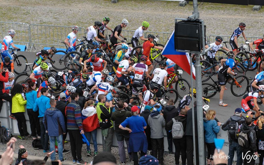 Nove Mesto, République Tchèque, le 21 mai 2017. Mathieu van der Poel est au départ de la première coupe du Monde de la saison. Il n’a que 21 ans, il pourrait courir en Espoirs, mais il est avec les Elites. Enfin, plutôt derrière les Elites. Car, faute de points UCI en nombre suffisant dans le VTT, il part avec le numéro 90, tout au fond du peloton.