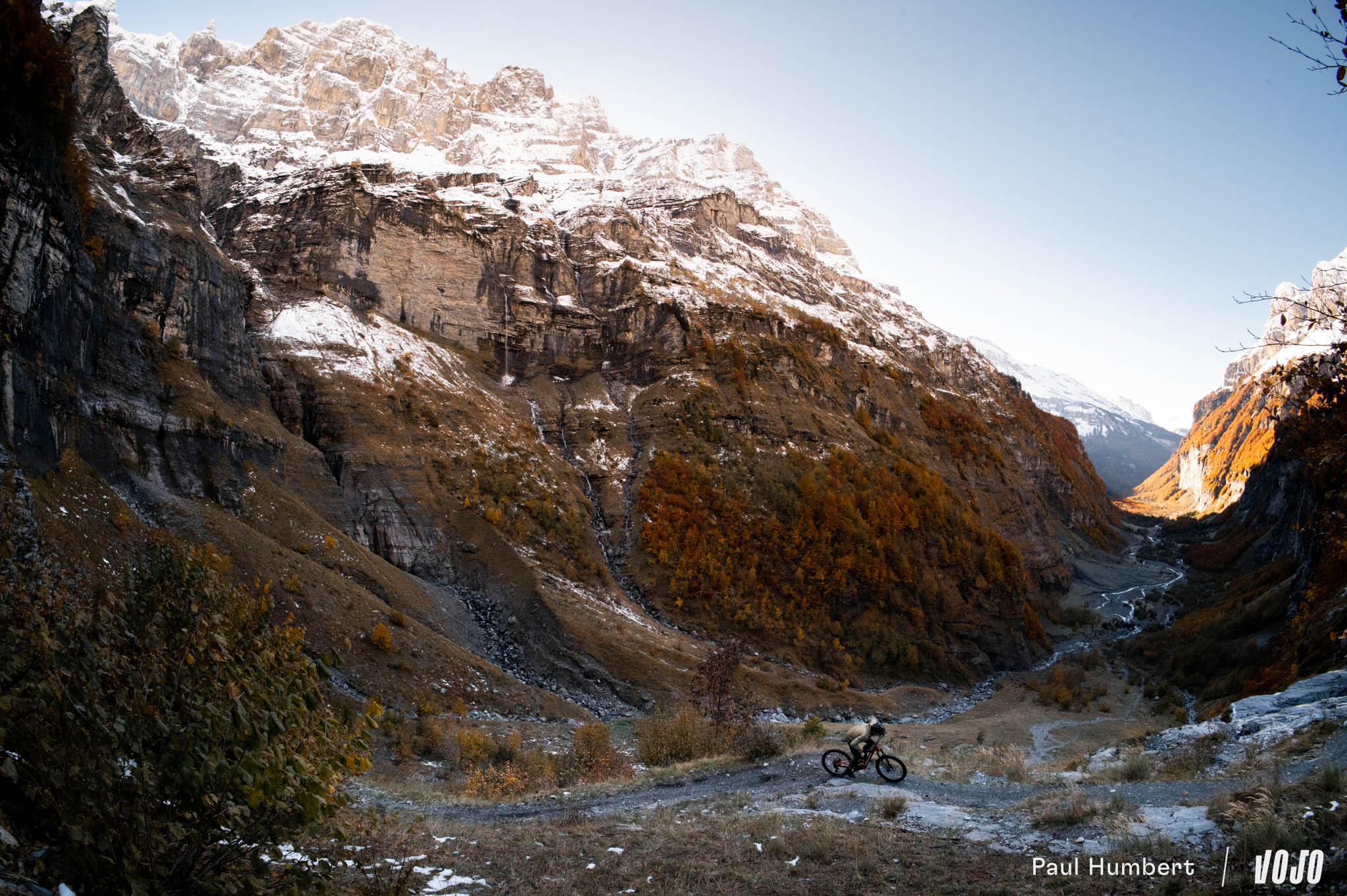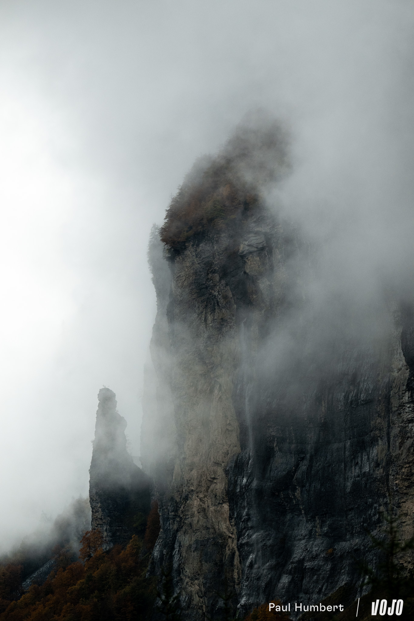 On s’est trouvé un spot prometteur, Romain était remonté à bloc et on a passé beaucoup de temps sur les bulletins météo. La fenêtre allait être serrée. La neige saupoudre les sommets, mais les feuilles d’automne ne sont pas encore tombées de leurs arbres.