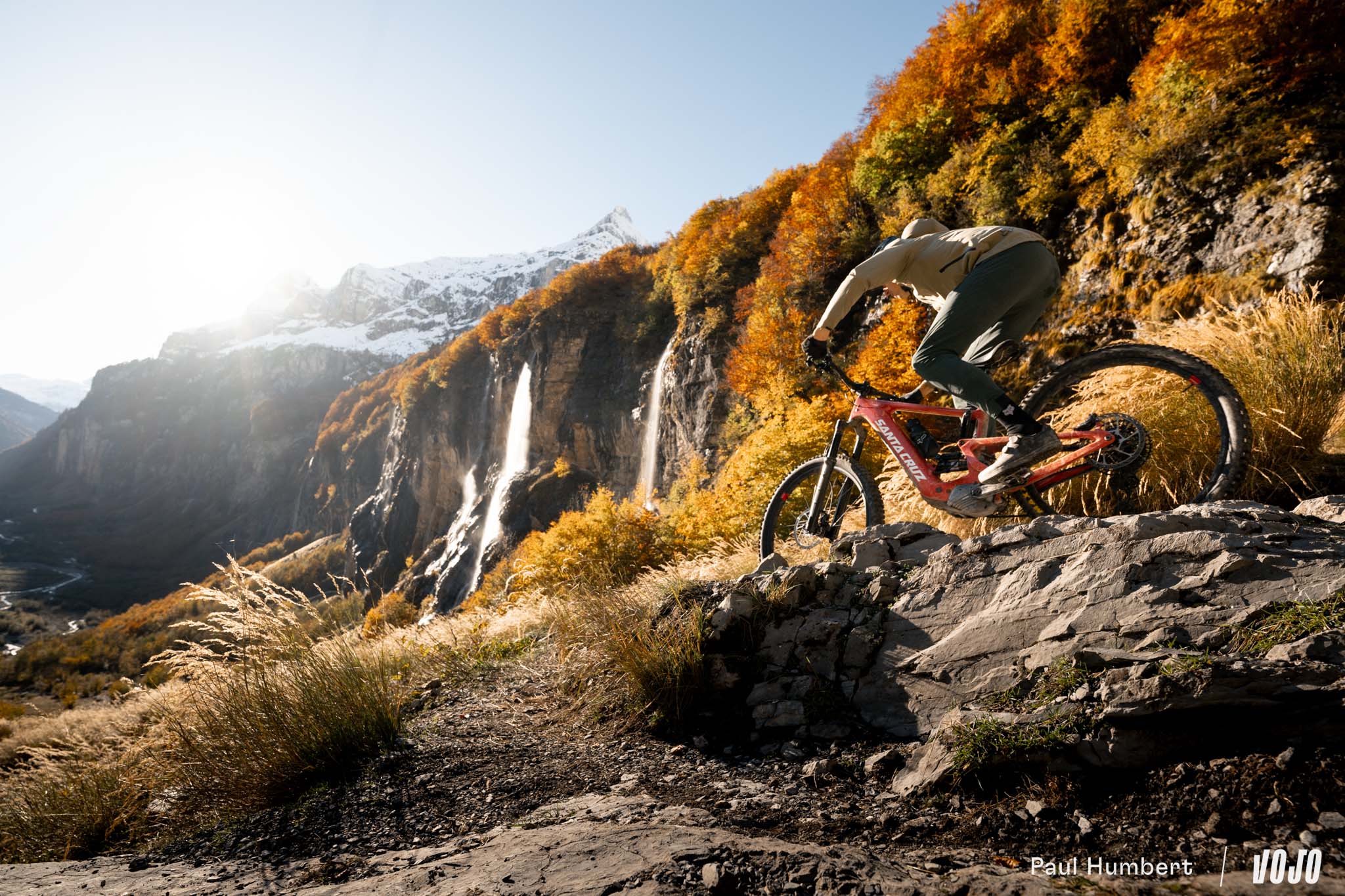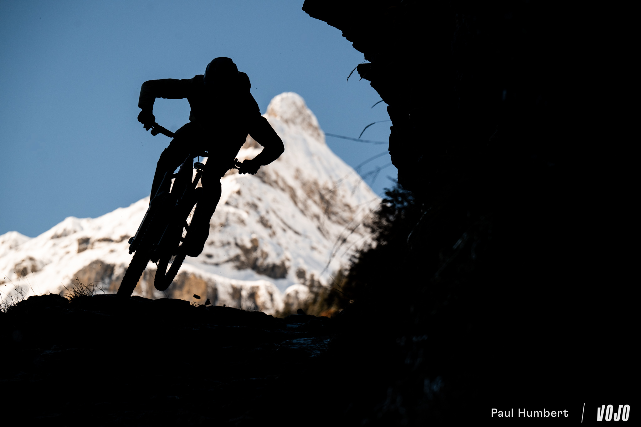 Cette dernière a commencé ce printemps dans les Pyrénées. La veille, on prenait des photos de descente sur la piste de Loudenvielle, et on avait prévu d’aller faire un tour en vélo d’enduro le matin suivant. Au réveil, on s’est retrouvés juste au-dessus d’une mer de nuages, et sur les sommets, de la neige fraîche venait de tomber.