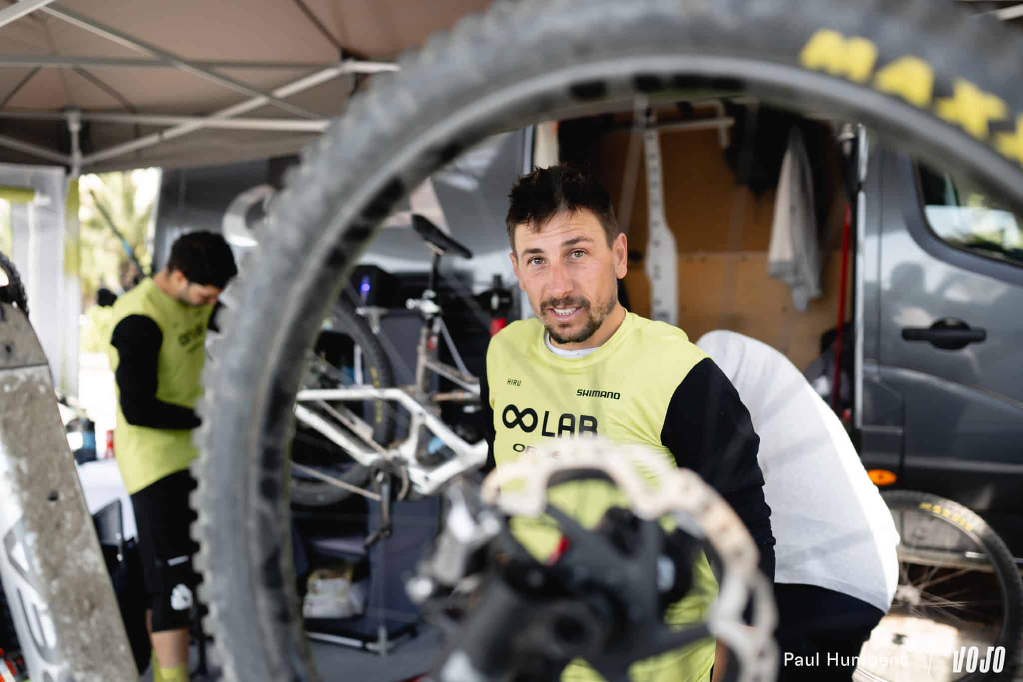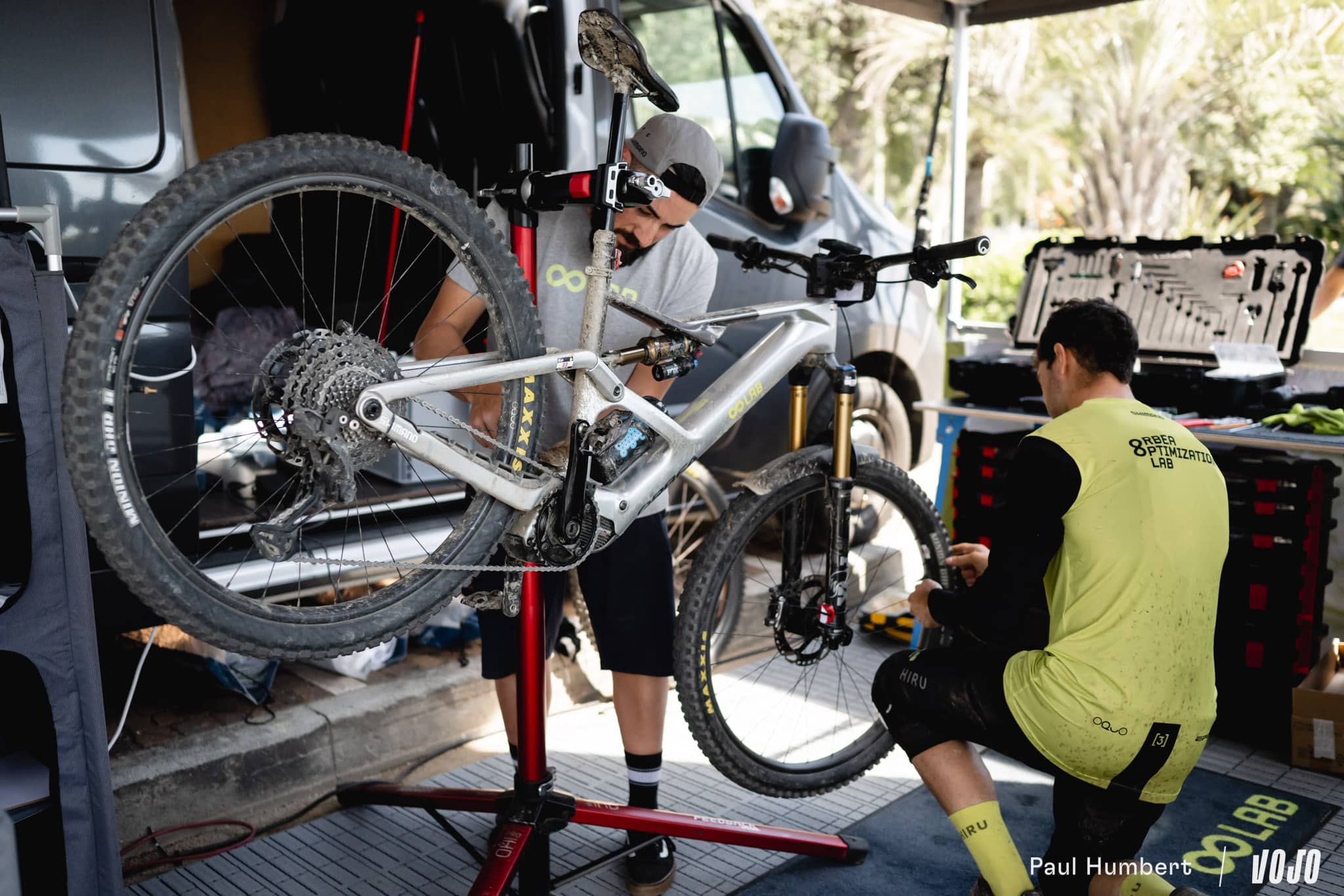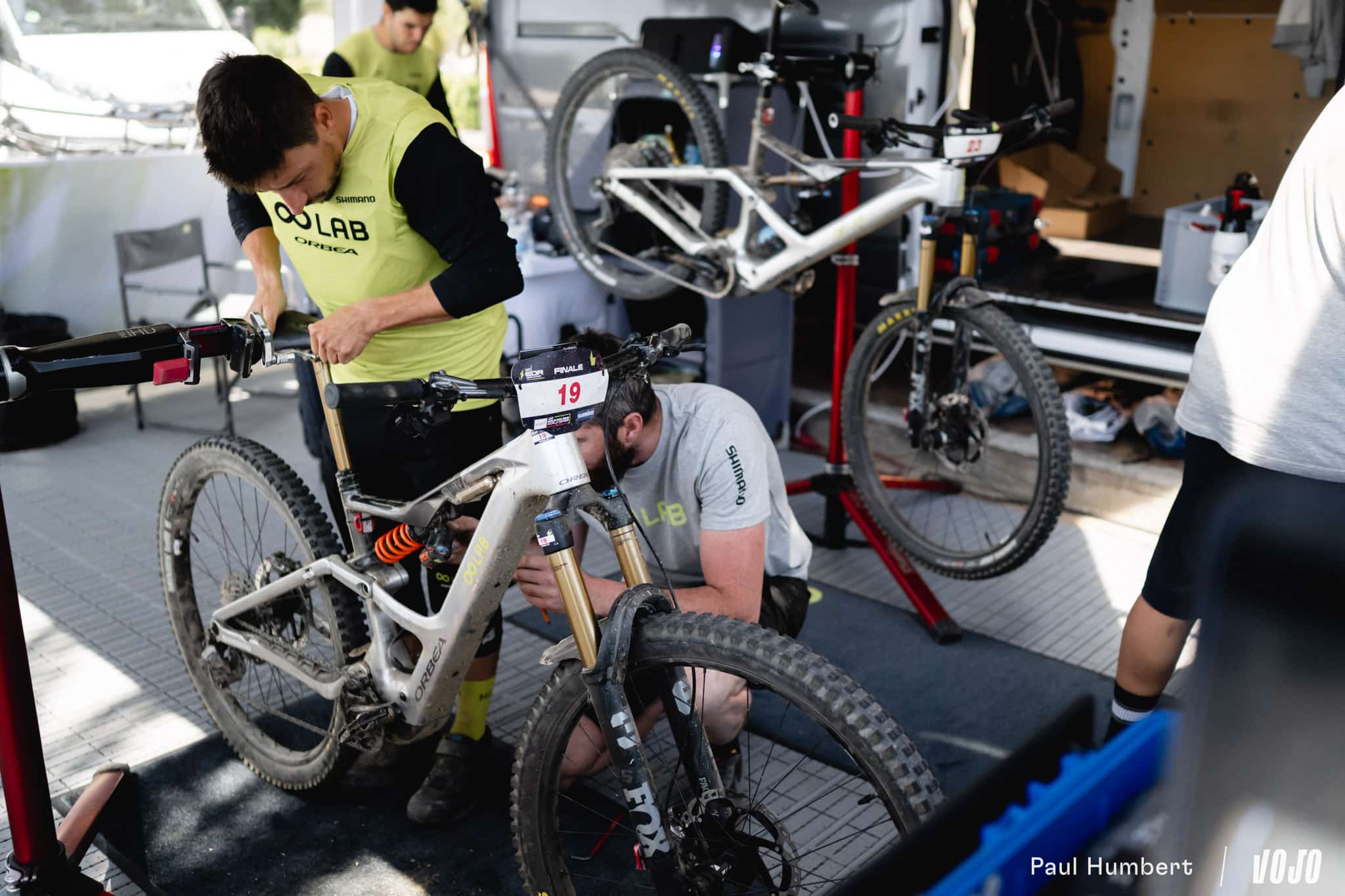 On croise le chemin de Damien Oton sur la première coupe du Monde E-EDR à Finale Ligure. La tente de la structure de développement Oolab est dissociée de la tente de l’Orbea Factory Team, preuve d’une démarche et d’un investissement différents de la part de la marque.
