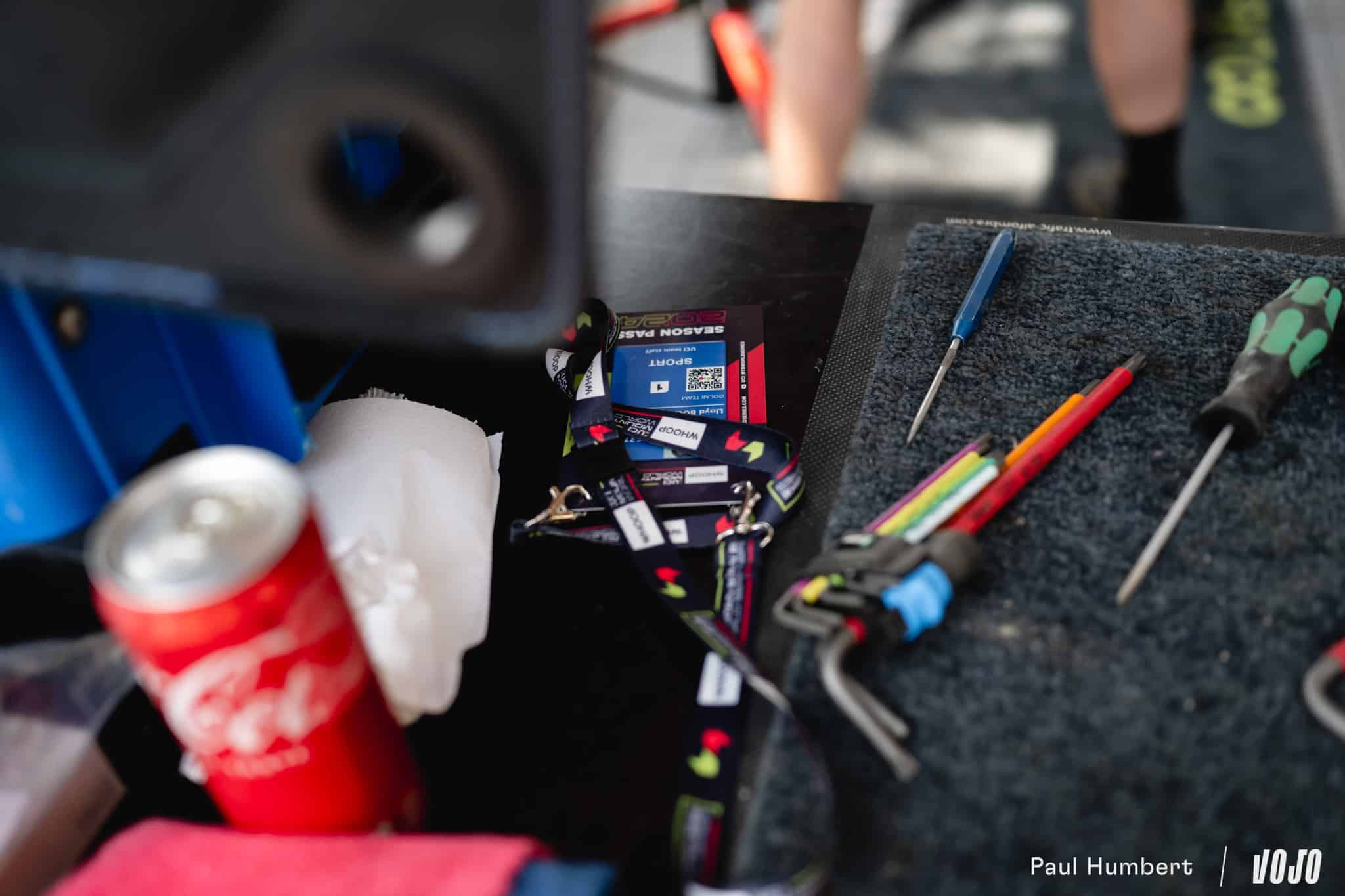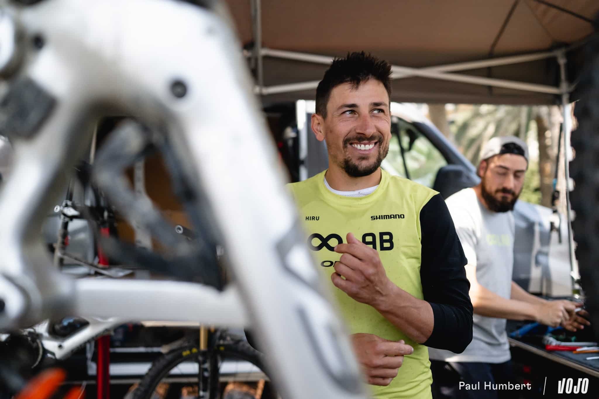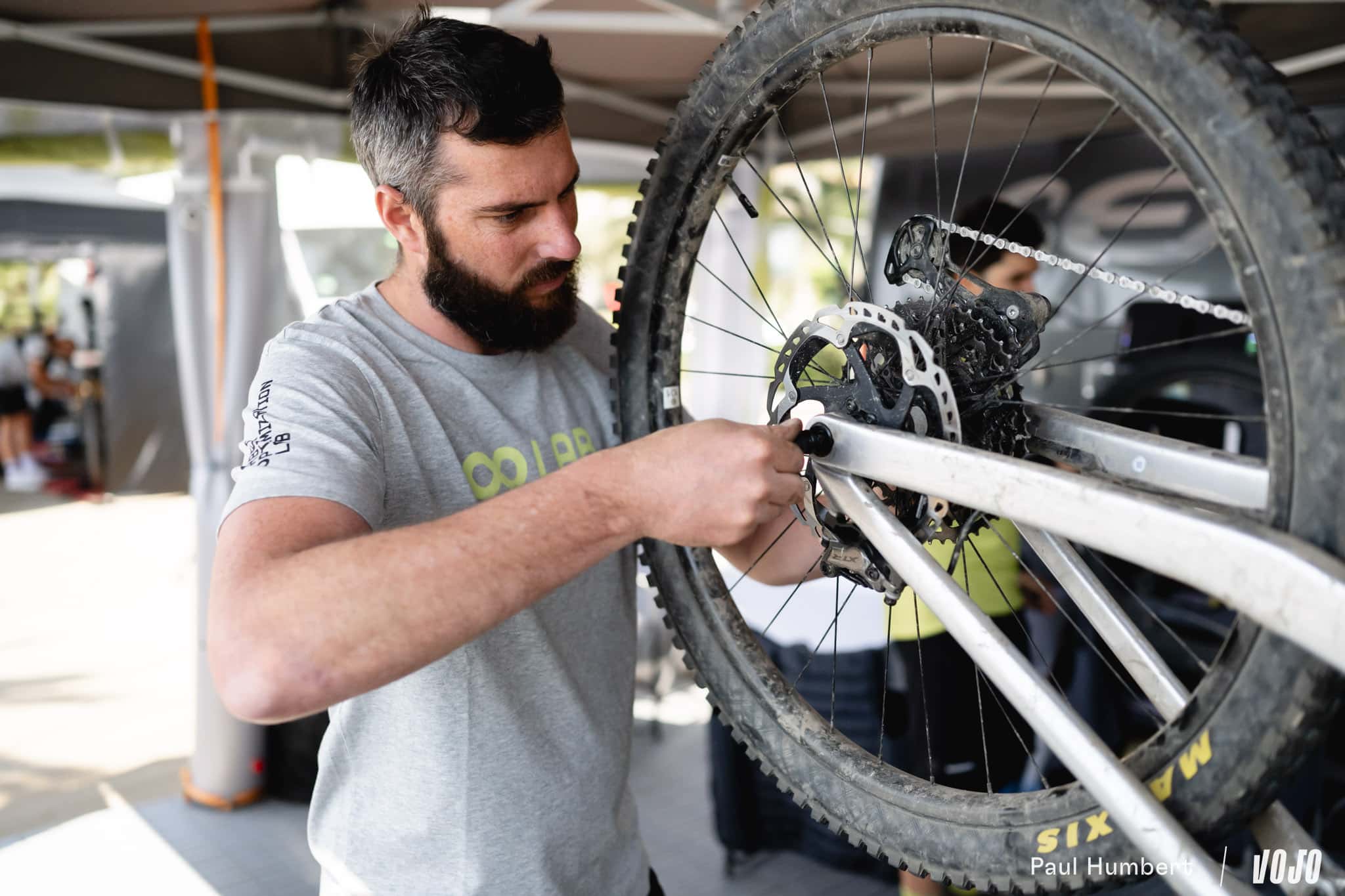 On croise le chemin de Damien Oton sur la première coupe du Monde E-EDR à Finale Ligure. La tente de la structure de développement Oolab est dissociée de la tente de l’Orbea Factory Team, preuve d’une démarche et d’un investissement différents de la part de la marque.