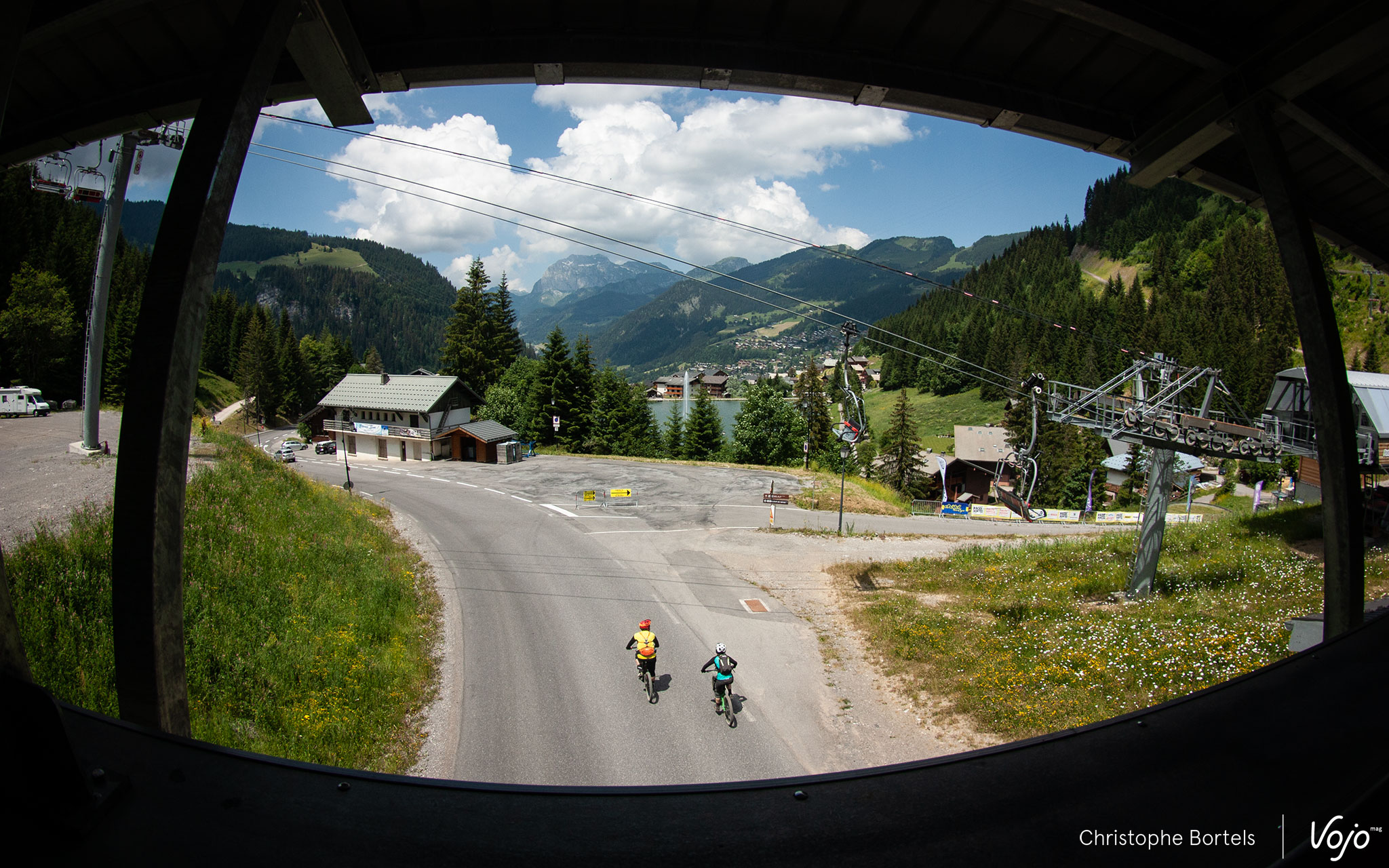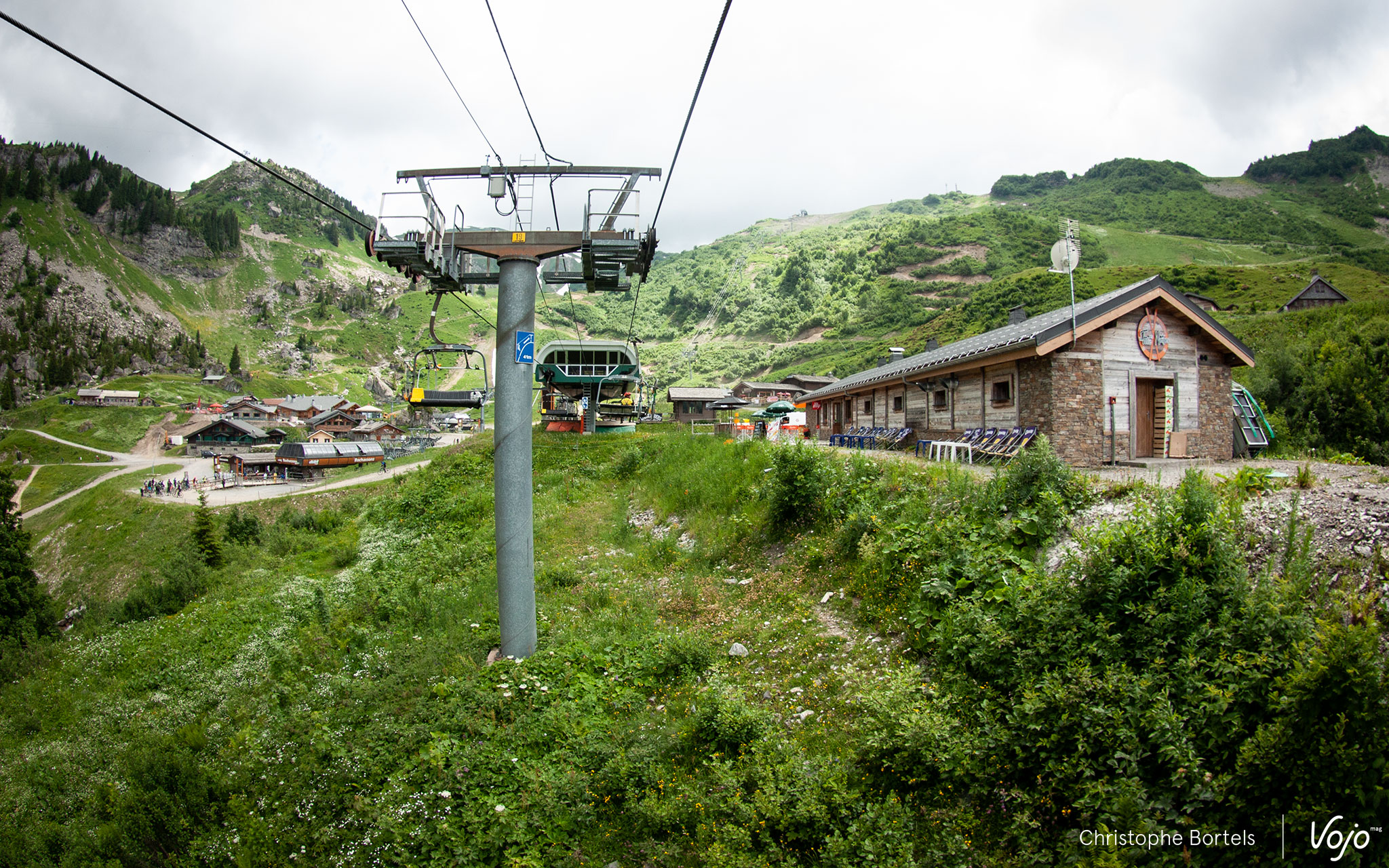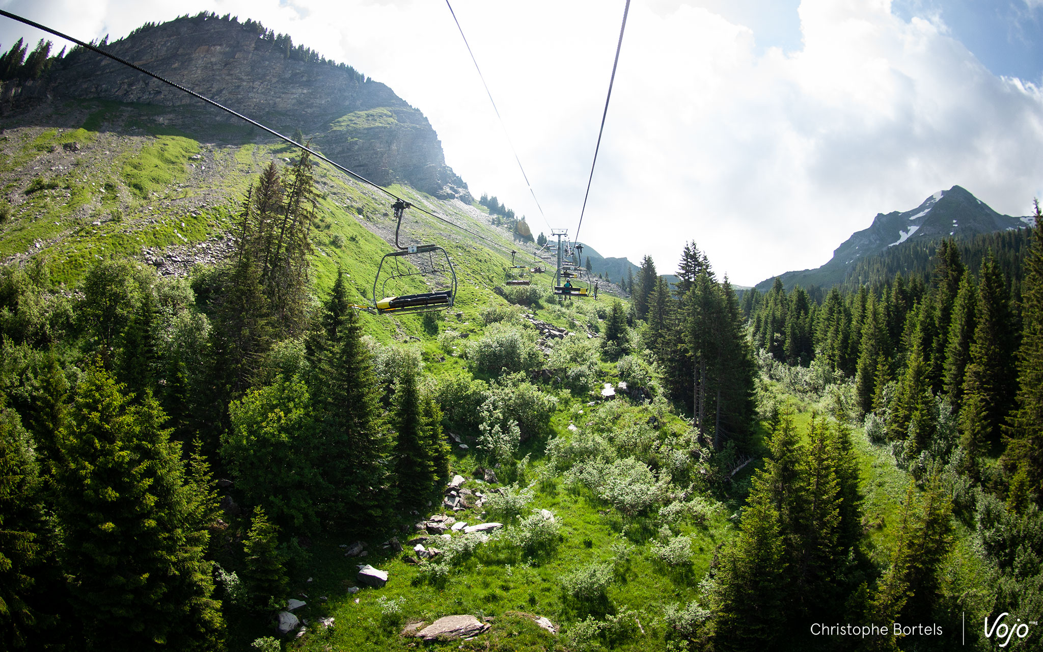 Heureusement, il fait nettement moins chaud que l’année passée et la liaison est moins harassante. Mais avec déjà plus de 50km au compteur, on apprécie tout de même d’être assis dans un télésiège et de savourer la vue sur le bikepark de Châtel !
