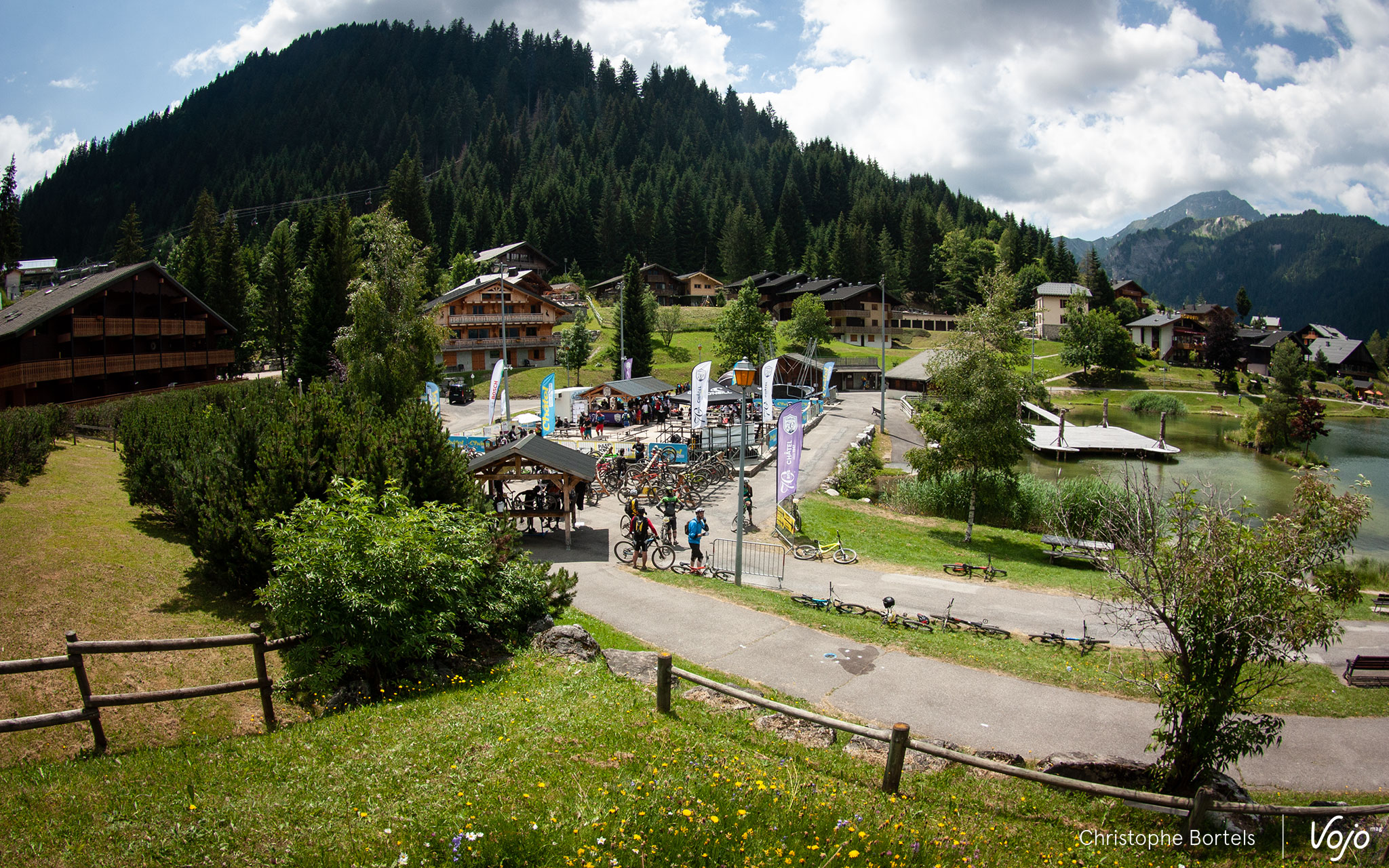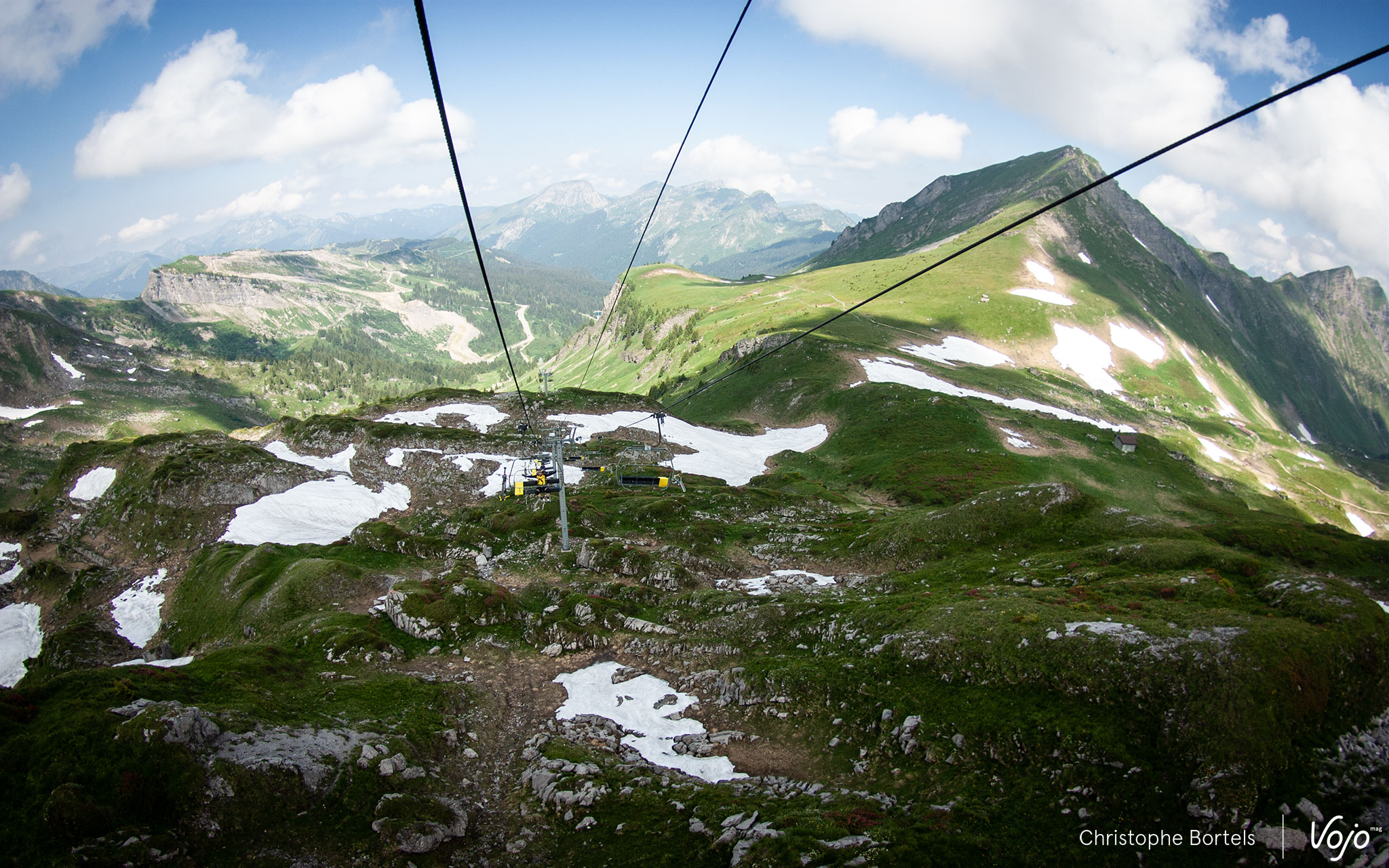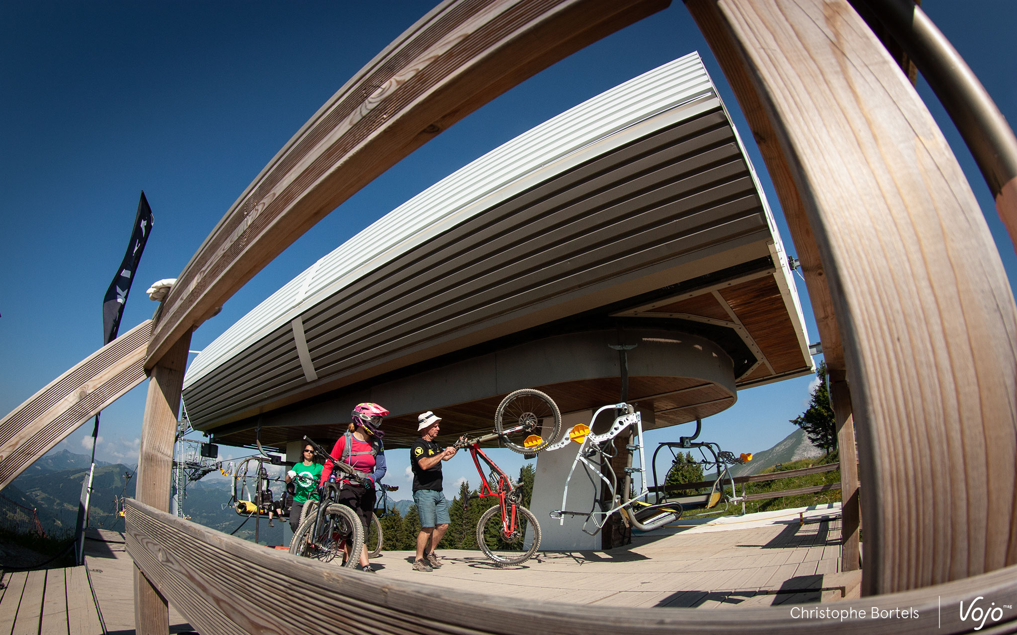 Heureusement, il fait nettement moins chaud que l’année passée et la liaison est moins harassante. Mais avec déjà plus de 50km au compteur, on apprécie tout de même d’être assis dans un télésiège et de savourer la vue sur le bikepark de Châtel !