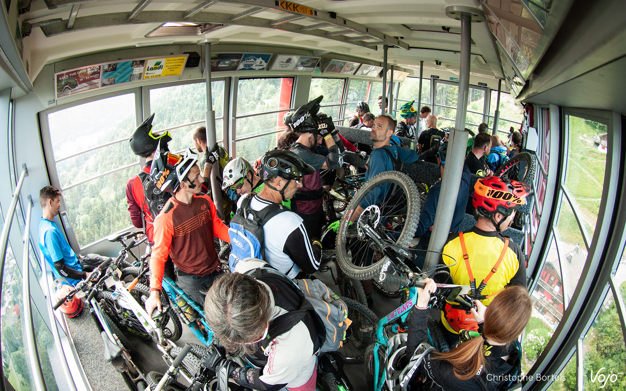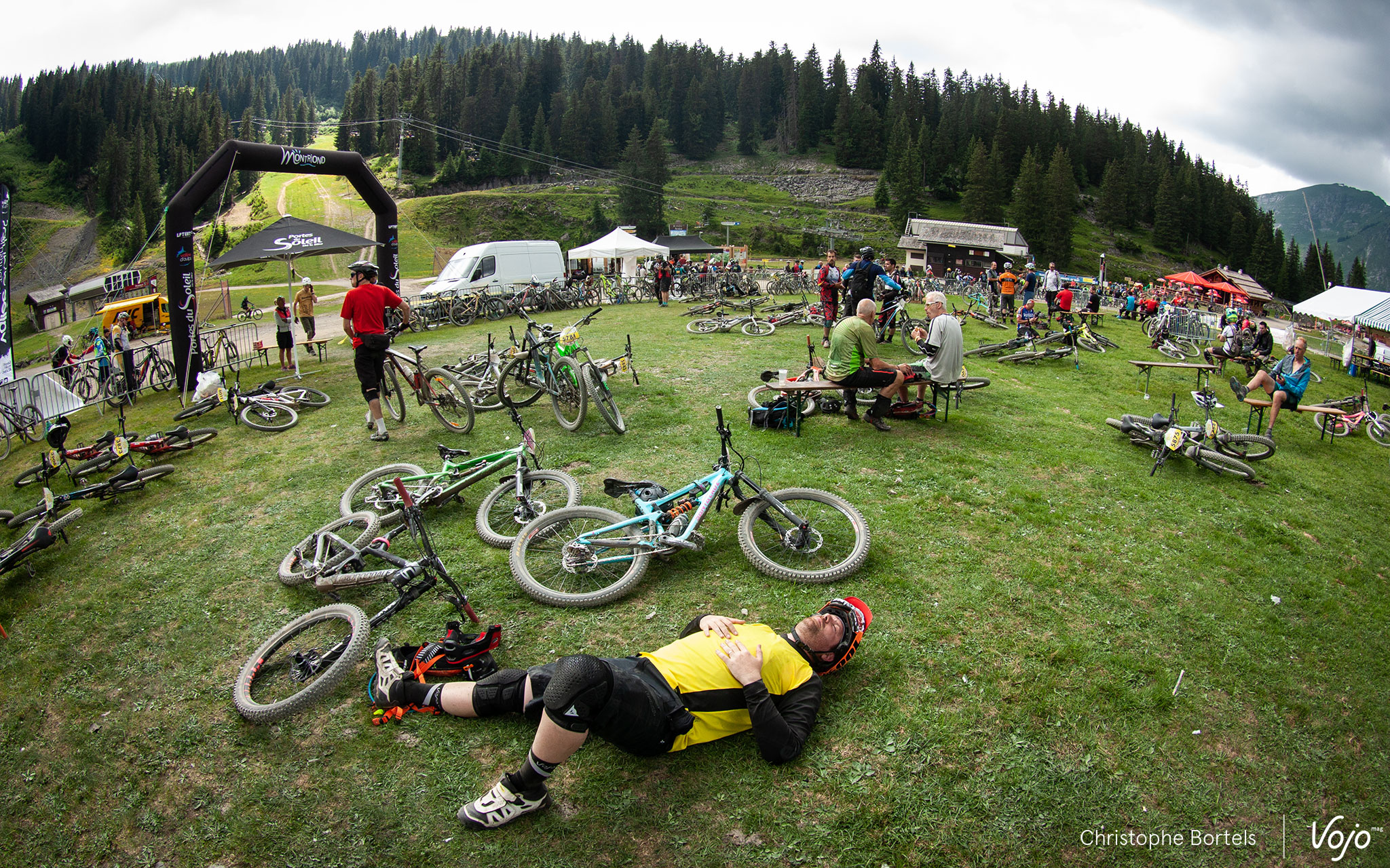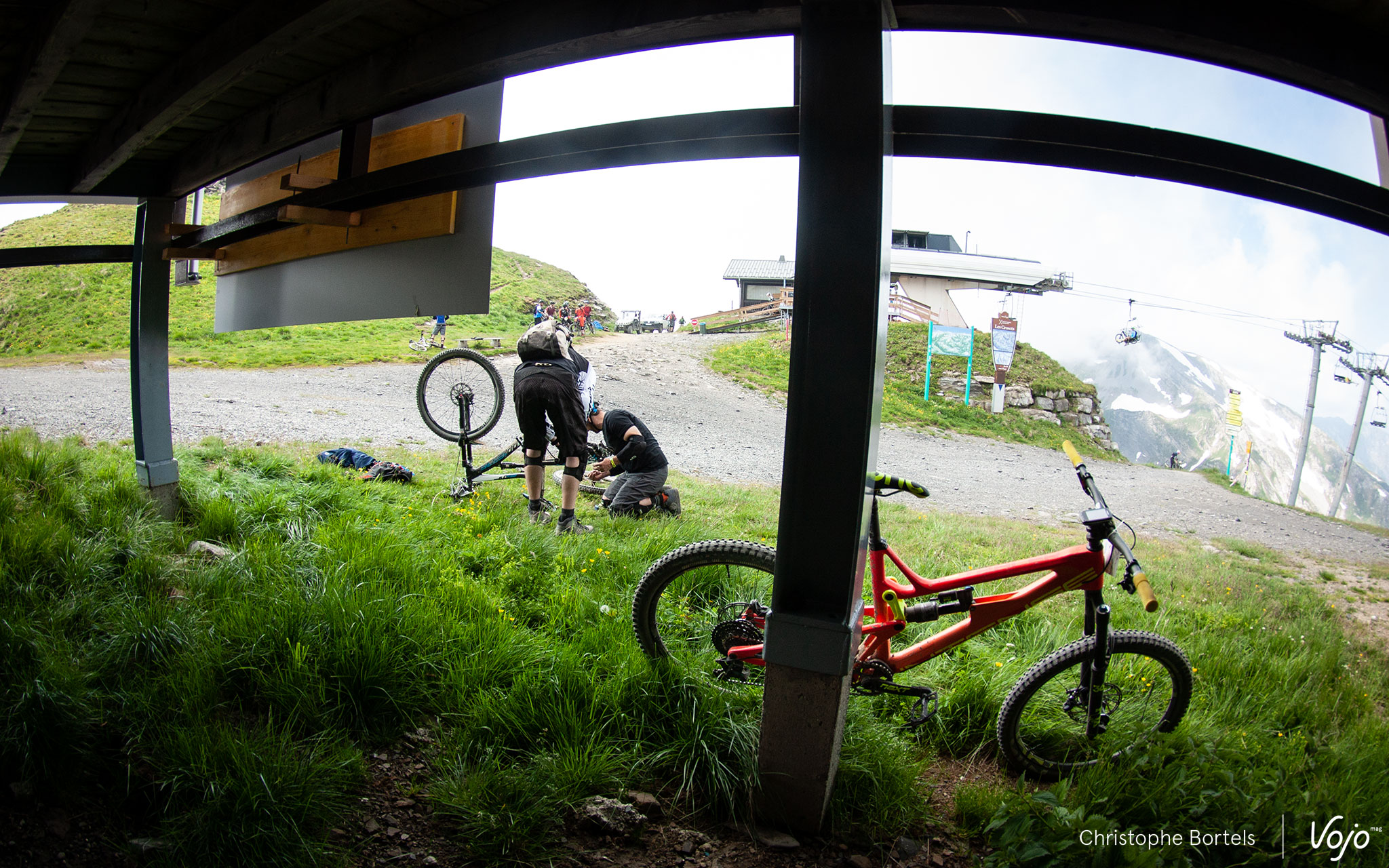 Pour les employés des remontées mécaniques chargés de placer ou retirer les vélos de leur support, c’est le début d’un très long week-end. Ils verront défiler plus de 7500 participants ce week-end, sans oublier les vététistes qui roulent sur les bikeparks sans prendre part à la Pass’Portes. Quand on connaît le poids moyen d’un vélo d’enduro ou de DH, faites le calcul de ce qu’ils vont soulever en 3 jours…