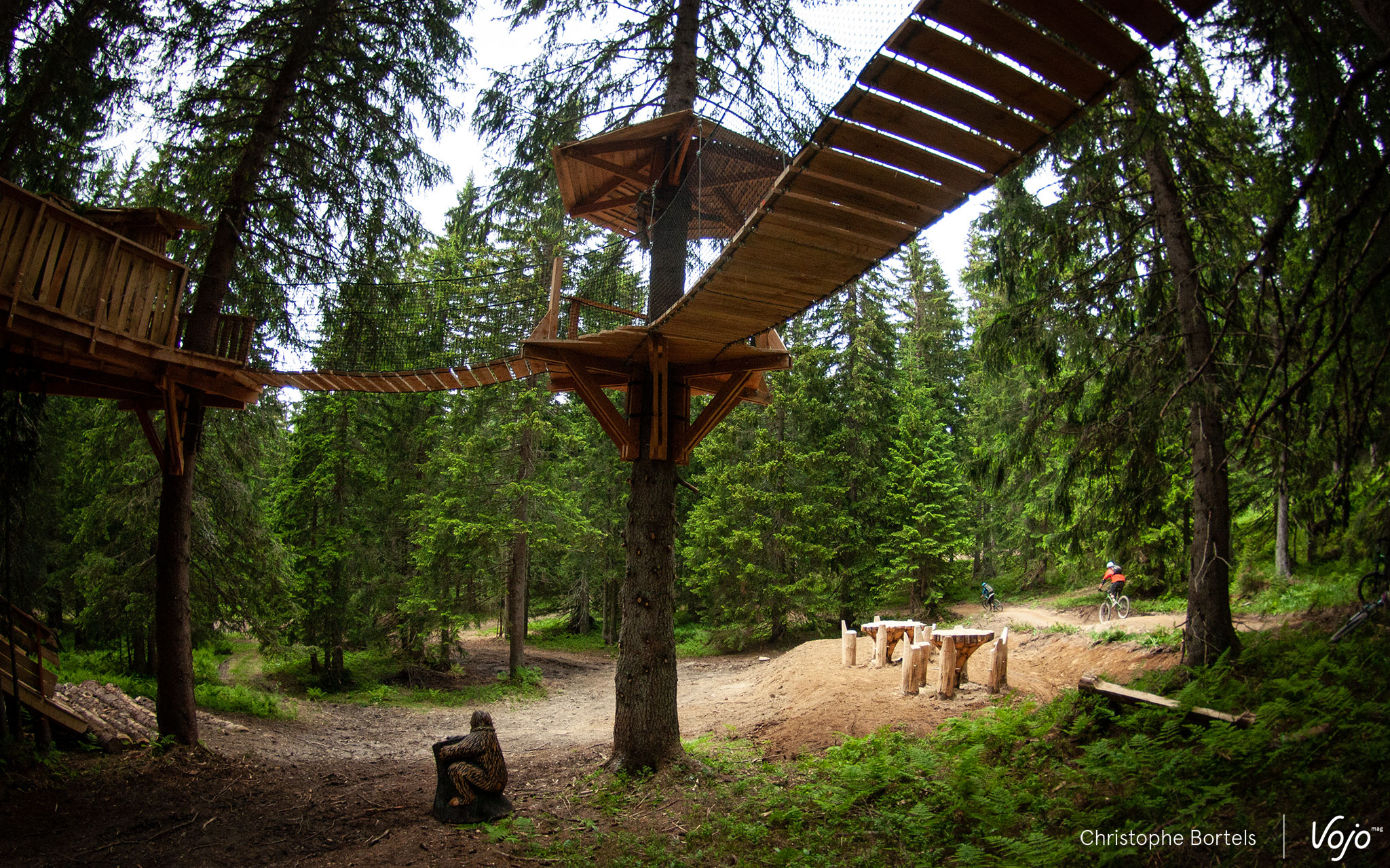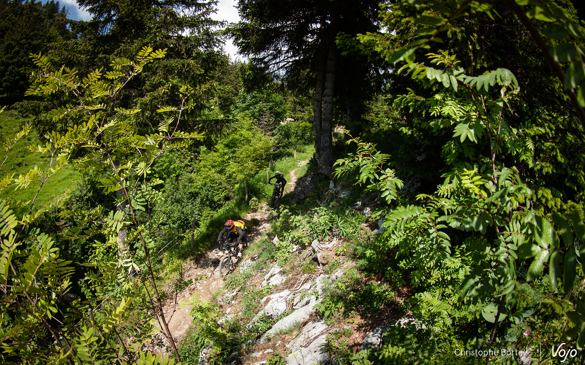 Derrière, après une très courte portion montante, on bascule vers une belle portion bikepark très très amusante !