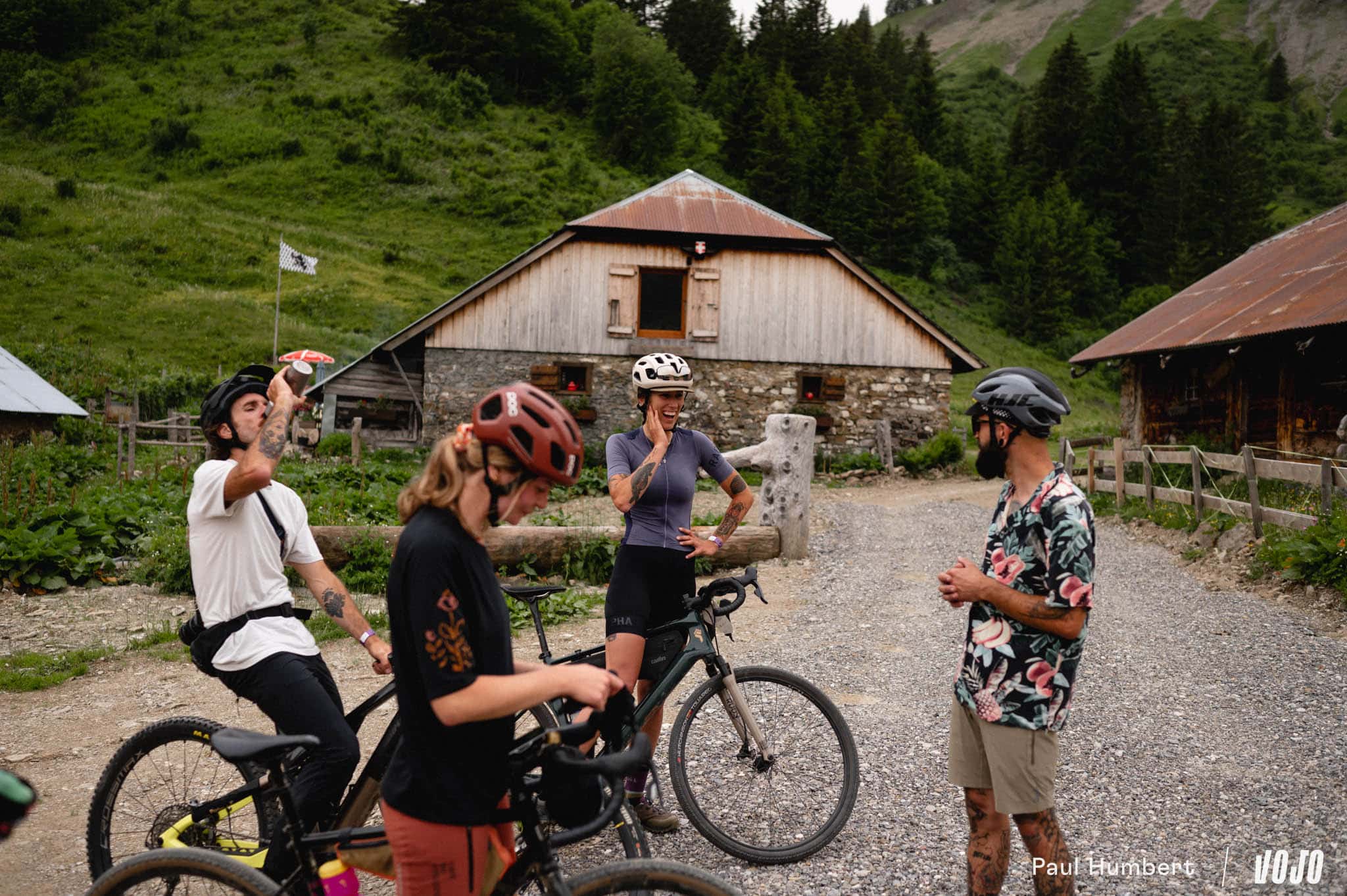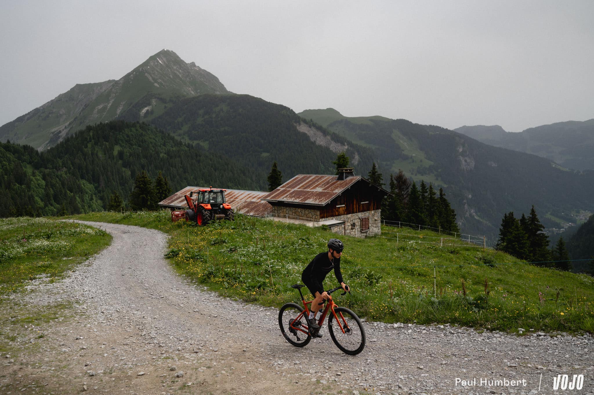 Après une longue montée, plutôt agréable, on repasse sur les grandes pistes montagnarde et on file dans une longue descente en direction d’Abondance. Là, on croise différents alpages, des cabanes et des paysages qui défilent vite. Les vélos sont adaptés et même si ça secoue, on est bien dans le programme de nos gravel.