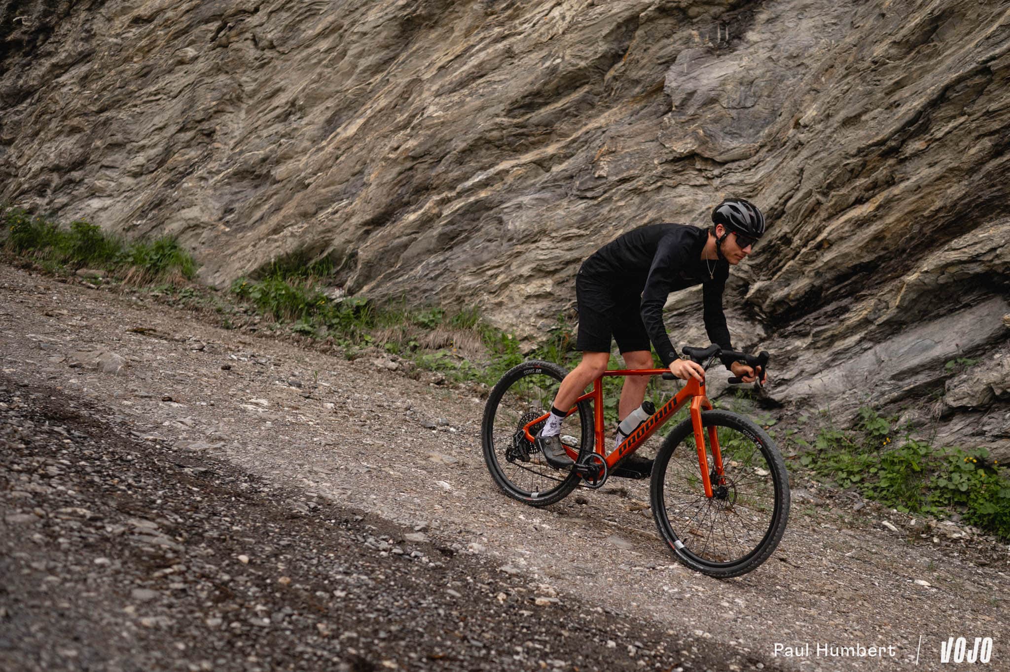 Le Propain Terrel dans les mains de Romain et ses pneus de 50mm de large le rendent vraiment passe-partout et adapté au terrain alpin. Du côté de Paul sur l’Origine Graxx, le confort est plus ferme et il faut faire attention lors des prises d’angle dans les cailloux roulant, mais le vélo fait preuve d’une belle polyvalence et ne se cantonne pas qu’aux pistes vallonnées.