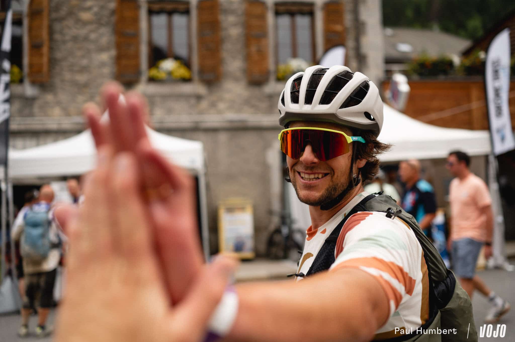 On croise quelques promeneurs souriants et après une dernière petite bosse, on retrouve le parcours de test des vélos gravel du salon puis on laisse nos dernière forces dans la remontée du village jusqu’au coeur du salon.
