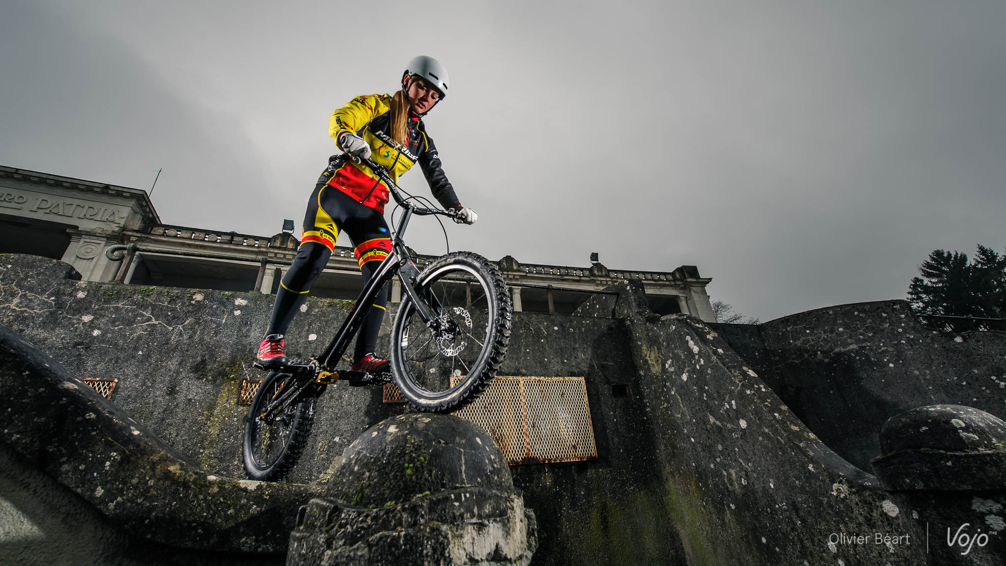 Moi, c’est justement cette difficulté qui m’a attirée. En fait, avant de faire du trial, je ne faisais pas vraiment de vtt. Pas de façon sportive du moins. Par contre, j’ai fait beaucoup de gymnastique quand j’étais petite. Cela m’a donné de très bonnes bases d’équilibre et au niveau de la compréhension du schéma corporel. Par contre, je n’avais pas de « mauvaises habitudes » que peuvent prendre certains vttistes « classiques ». Malgré tout, au début, c’est clair qu’il faut vraiment s’accrocher pour rester sur le vélo, tenir sur la roue arrière, etc. Mais quand on a ces bases, on peut vraiment commencer à s’amuser. Il y en a beaucoup qui abandonnent avant car ce n’est pas facile pour tout le monde. Pour ma part, j’ai eu la chance d’évoluer assez vite de ce côté, et donc de vraiment accrocher à la discipline.