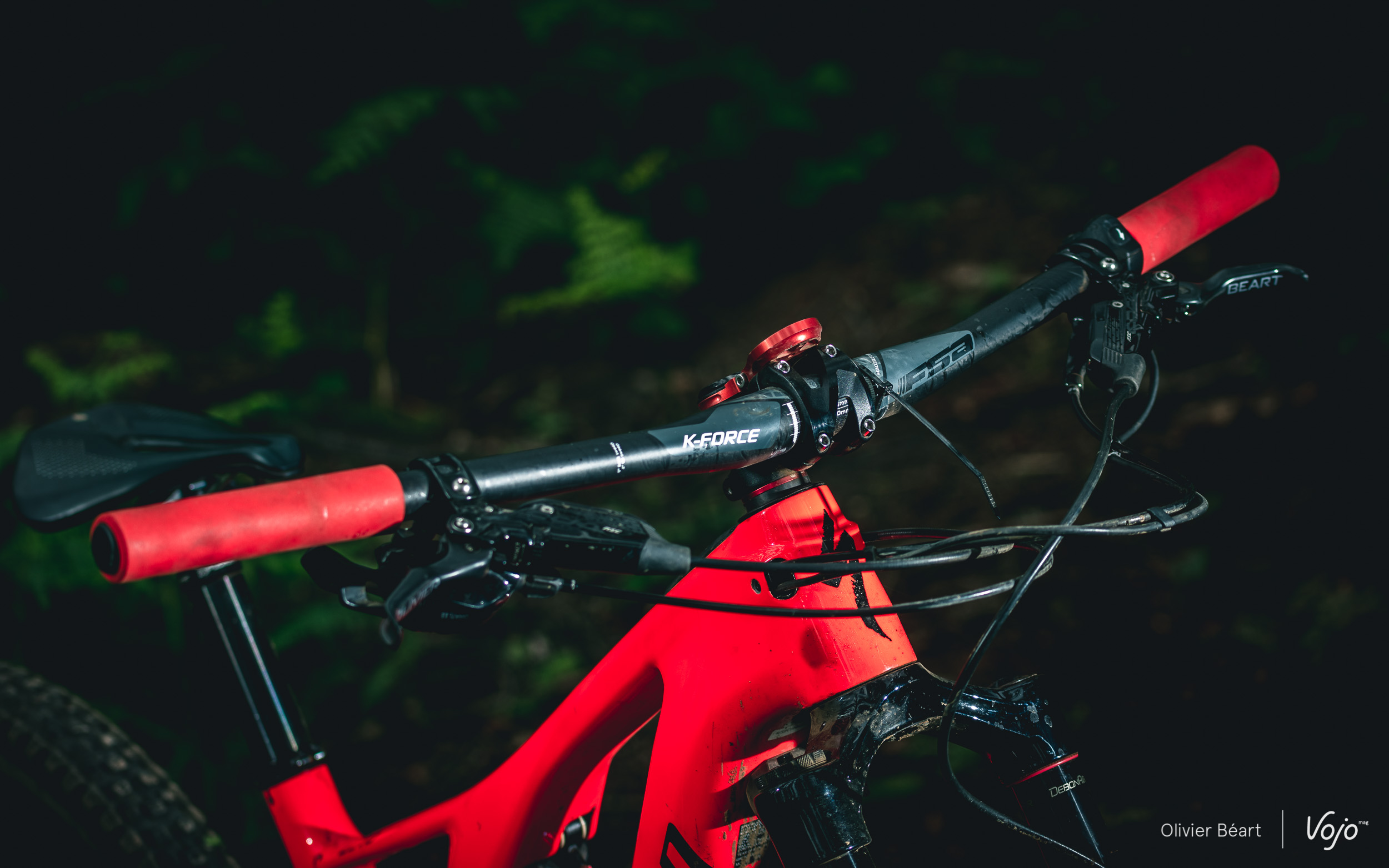 Au niveau du poste de pilotage, si la potence d’origine reste, le cintre (un peu trop) relevé d’origine a été changé au profit d’un modèle plat. Cependant, le FSA K-Force reste large (780mm) et solide. Le poste de pilotage ainsi abaissé donne une position plus racing et XC au Levo, sans verser dans les extrêmes.