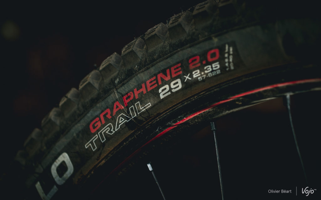 Côté pneus, j’aime beaucoup les Specialized Butcher 2.6 » d’origine, mais j’ai connu quelques crevaisons en leur compagnie et leur section généreuse est plus orientée vers un usage polyvalent que performant. J’ai donc monté des Vittoria Martello trail en 29×2.35 ». Ils ne sont pas légers (1kg pièce) mais ils sont très solides et dotés d’une gomme Graphène 2.0 assez bluffante tant elle parvient à marier accroche et rendement. Pile dans le programme ! La section un peu plus fine et leur plus faible résistance au roulement par rapport aux pneus d’origine permettent aussi de gagner un peu en autonomie tout en gardant un grip excellent. A l’intérieur des pneus, j’ai mis uniquement du latex (NoTubes Race) et pas de « boudins » anti-pincement car ceux-ci ne sont pas vraiment nécessaires avec les jantes Zipp, plus « flexibles » et donc plus capables d’encaisser les impacts sans abîmer le pneu par rapport à des modèles traditionnels.