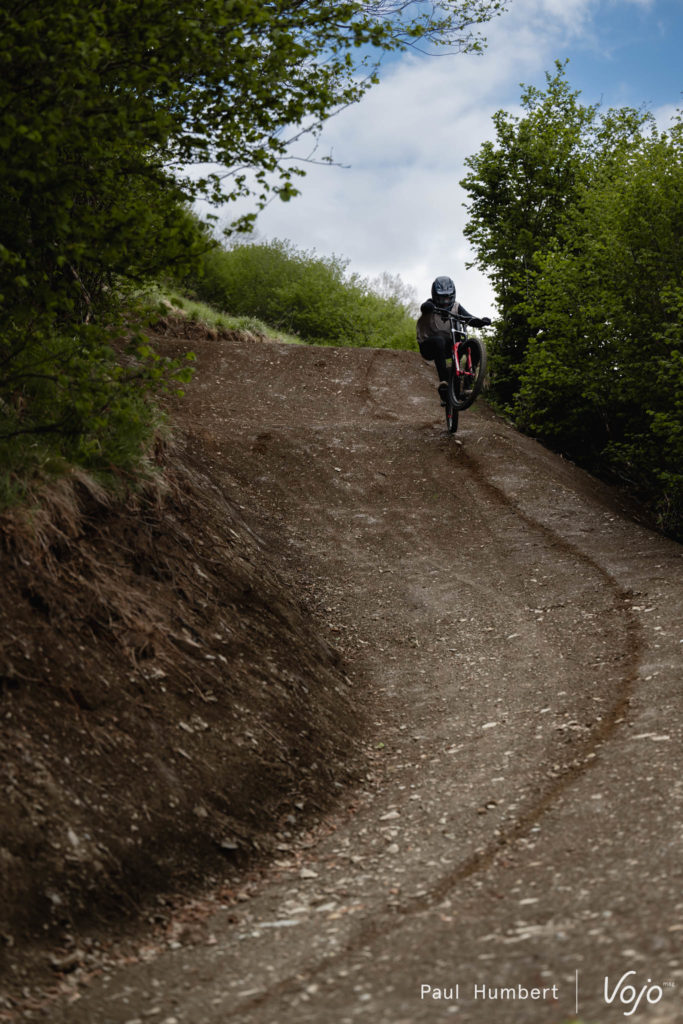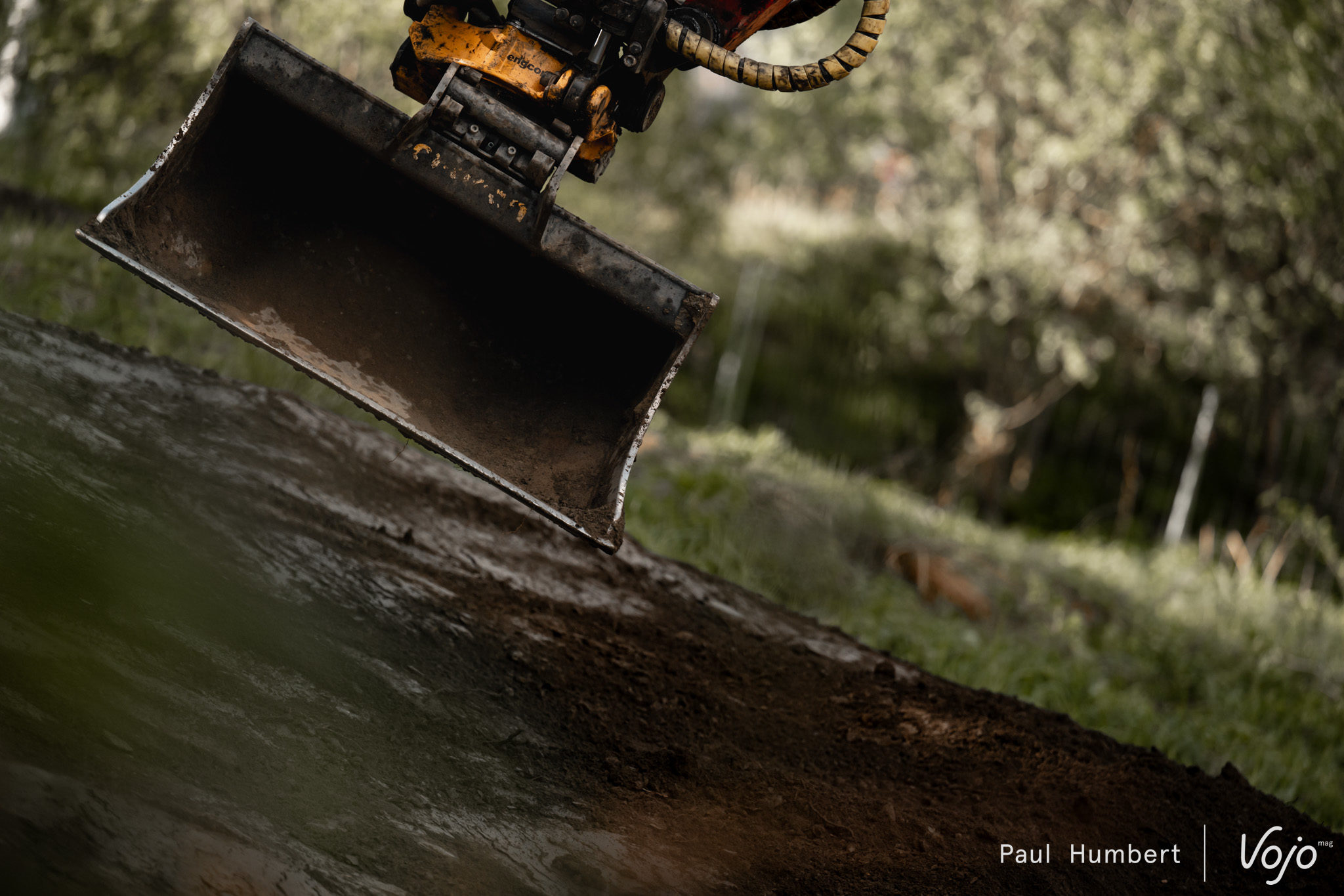 Comme nous l’explique Romain, une piste de coupe du Monde, ce n’est pas une piste de bike-park classique. Il faut savoir jouer avec le terrain, offrir des lignes multiples, garantir la sécurité quand des athlètes s’engagent au plus haut point et innover dans la mesure du possible.