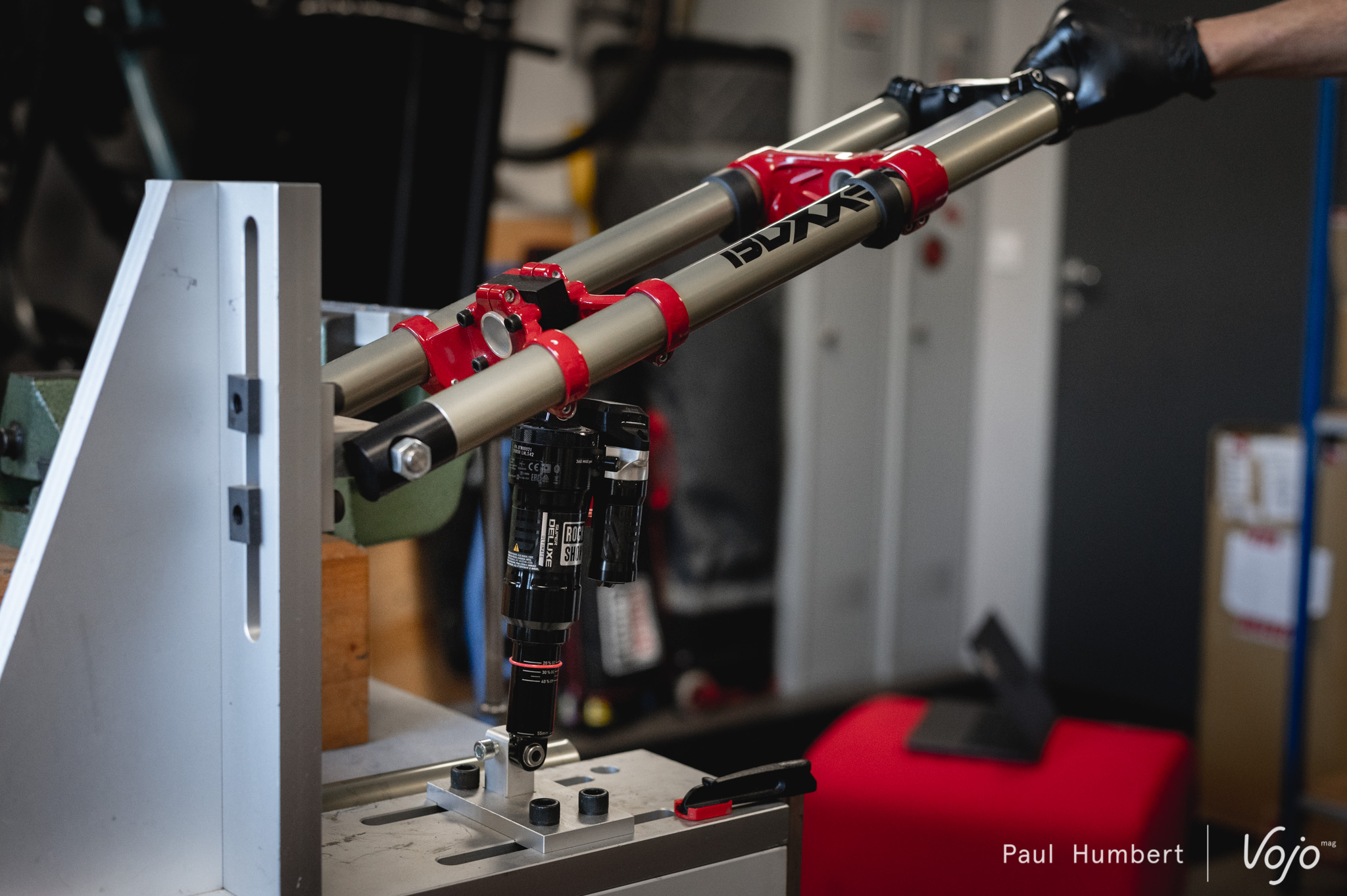 Pour jouer avec ces tokens, il faudra toutefois passer par une manipulation supplémentaire comparé aux amortisseurs habituels : le démontage du bloc électronique, qui empêche de démonter la boîte à air. Rien de bien difficile en apparence, Dimitri l’a fait devant nous en quelques instants et il suffit de dévisser 3 vis à tête hexagonale de 3 mm, mais il est toujours bon de le savoir.