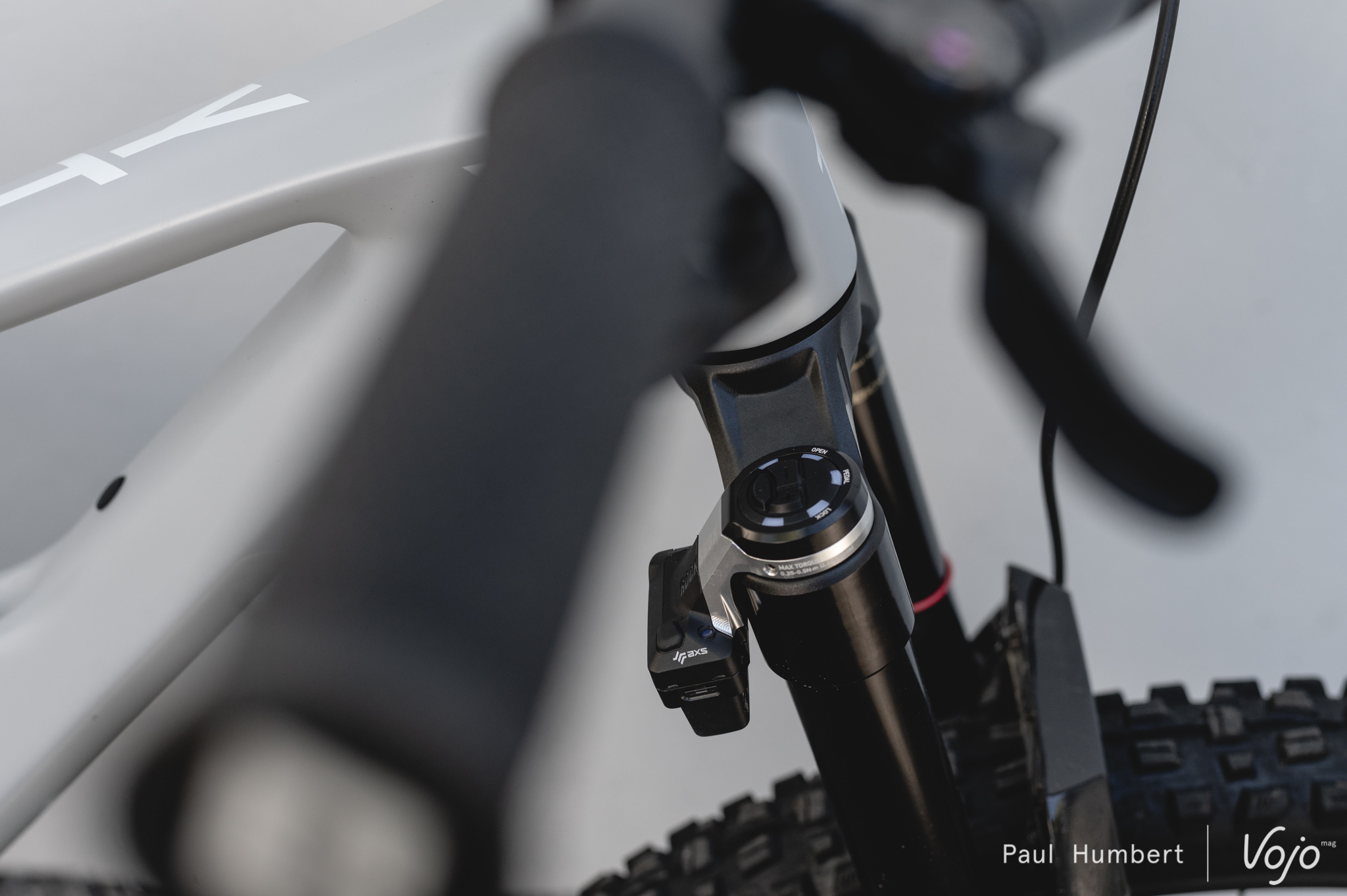 Avant d’aller rouler, il faut toutefois passer par l’essentielle étape de calibrage des capteurs. On règle d’abord les suspensions à sa convenance (sag, rebond et compression) puis on suit les instructions de l’application. Lorsque l’unité centrale clignote rapidement en blanc, c’est tout bon et on peut y aller !