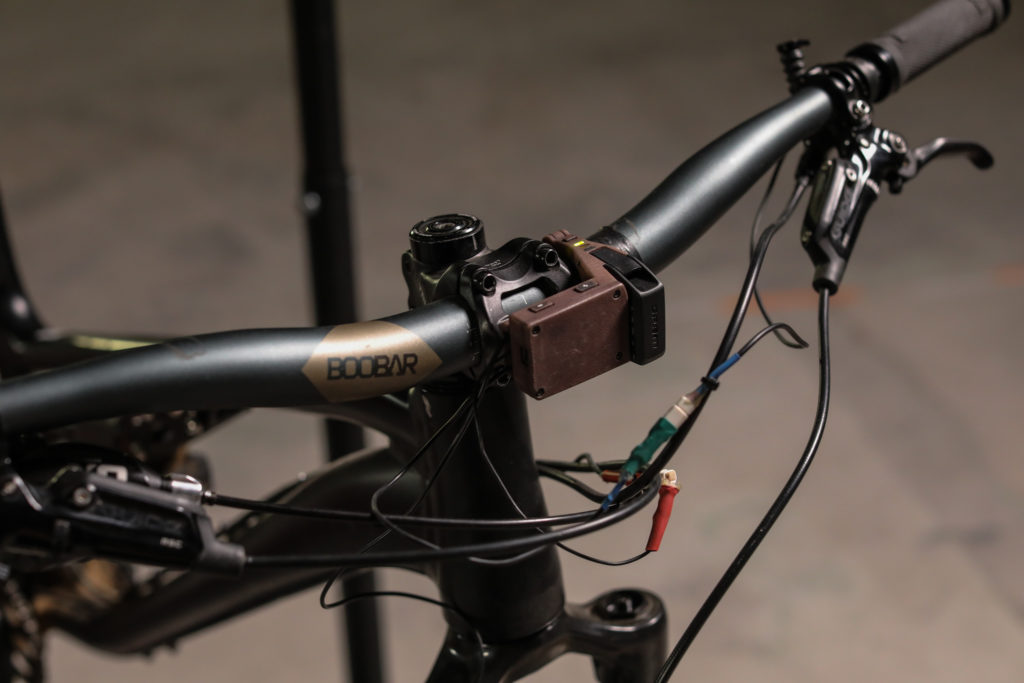 Pourquoi avoir choisi d’installer l’unité centrale sur la fourche, alors que cela aurait peut-être été plus discret sur l’amortisseur ? Dimitri : « L’unité centrale à l’avant, c’est plus rapide et précis pour détecter les chocs ou la pente sur laquelle le vélo se trouve. » Audrey : « C’est aussi plus accessible, plus pratique lorsqu’on veut modifier les réglages du système sans passer par l’application. »