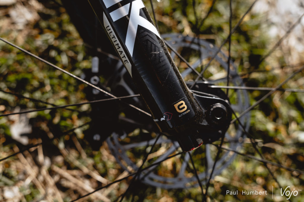 On termine avec un mot sur le comportement des suspensions en mode ouvert, puisqu’il y a aussi pas mal de changements de ce côté. Nous n’avons pas (encore) eu l’occasion de les comparer aux modèles actuels mais une chose est sûre, elles offrent un niveau de performance exceptionnel. Pour l’un de nos testeurs, qui roule en temps normal sur Fox (Float X2 et 38 Grip 2), « elles sont incroyables en sensibilité sur les premiers centimètres et en même temps, le vélo ne bouge pas et garde parfaitement l’assiette, ça ne plonge pas et ça reste bien haut. C’est peut-être les meilleures suspensions que j’ai jamais roulées. »