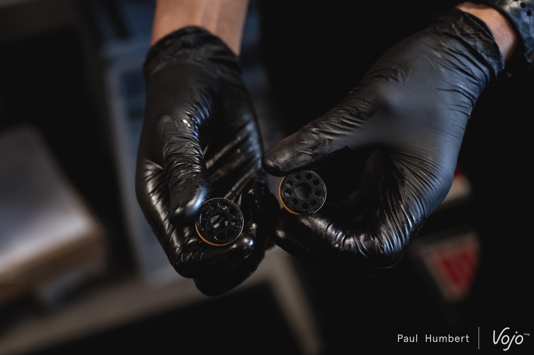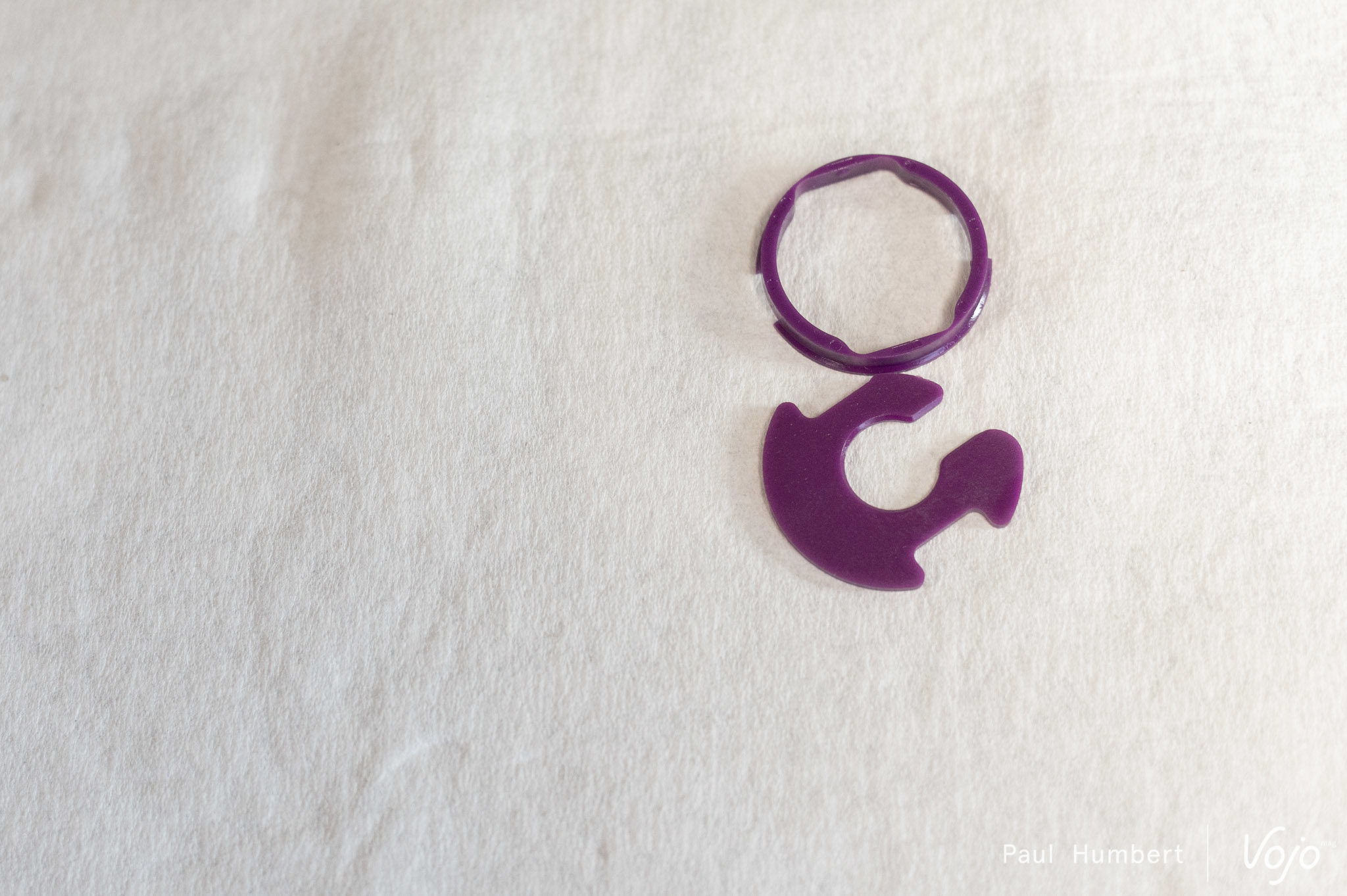 Conséquence de ces changements, les nouveaux tokens (violets, comme le piston) sont beaucoup plus fins, presque plats, puisque la gestion de la progressivité du ressort ne repose plus entièrement sur eux. Si une marque a besoin d’un amortisseur plutôt progressif, elle choisira la boîte à air progressive et ajoutera des tokens si besoin au lieu de partir sur quelque chose de « linéaire » par défaut et d’avoir besoin d’un gros token. On note également que la chambre négative peut désormais accepter un token, en haut sur la photo ci-dessus.