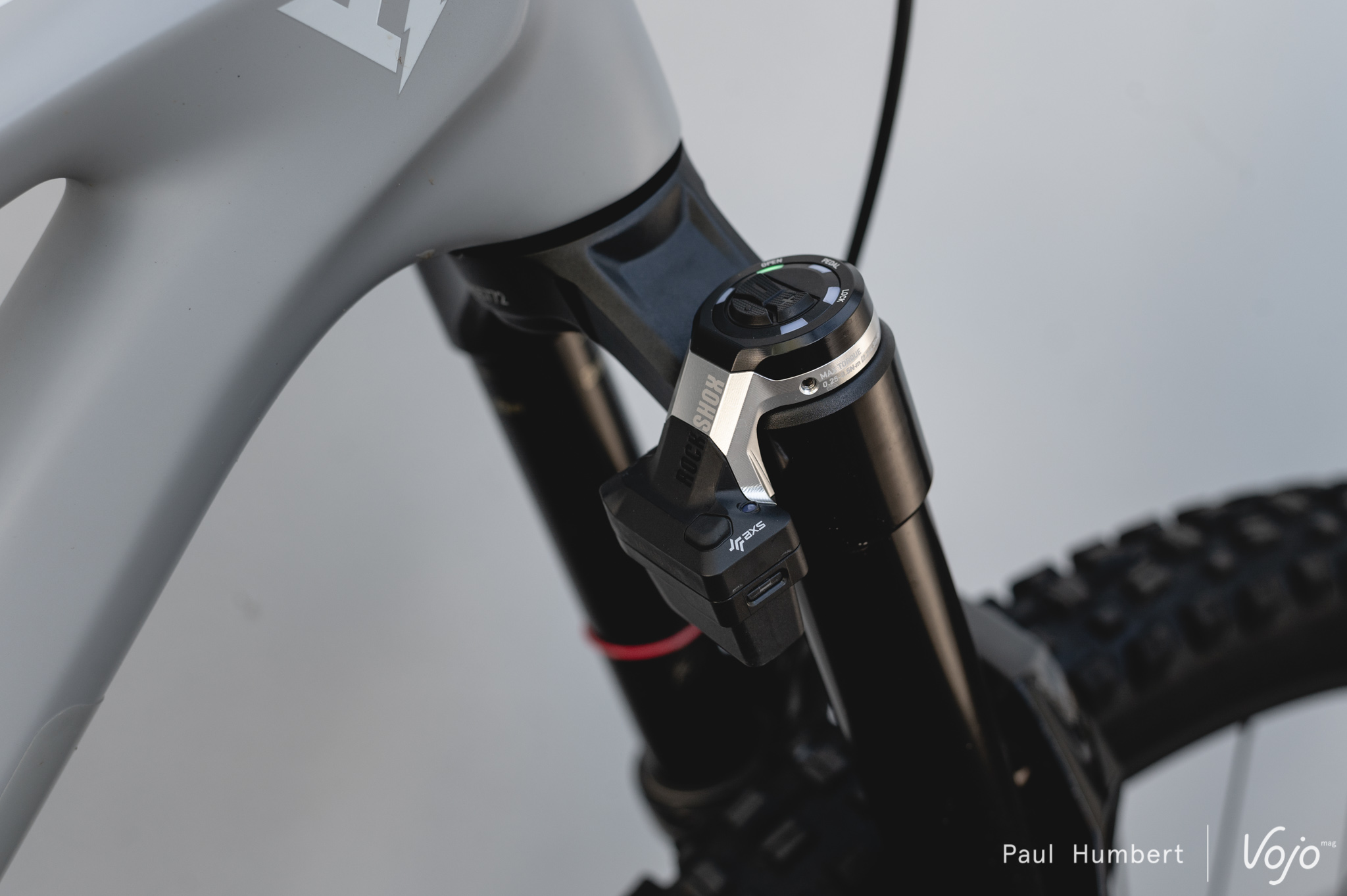 Côté autonomie, RockShox annonce 20 à 30 heures pour la fourche, 30 à 40 heures pour l’amortisseur et 200 heures pour le capteur du pédalier et la manette. Attention, Audrey précise que « lorsque la diode qui indique l’état de la batterie clignote en rouge sur la fourche, il reste vraiment très peu d’autonomie, quelques dizaines de minutes au maximum. Ce n’est pas comme avec le dérailleur où cela peut encore tenir une sortie, ou presque. »