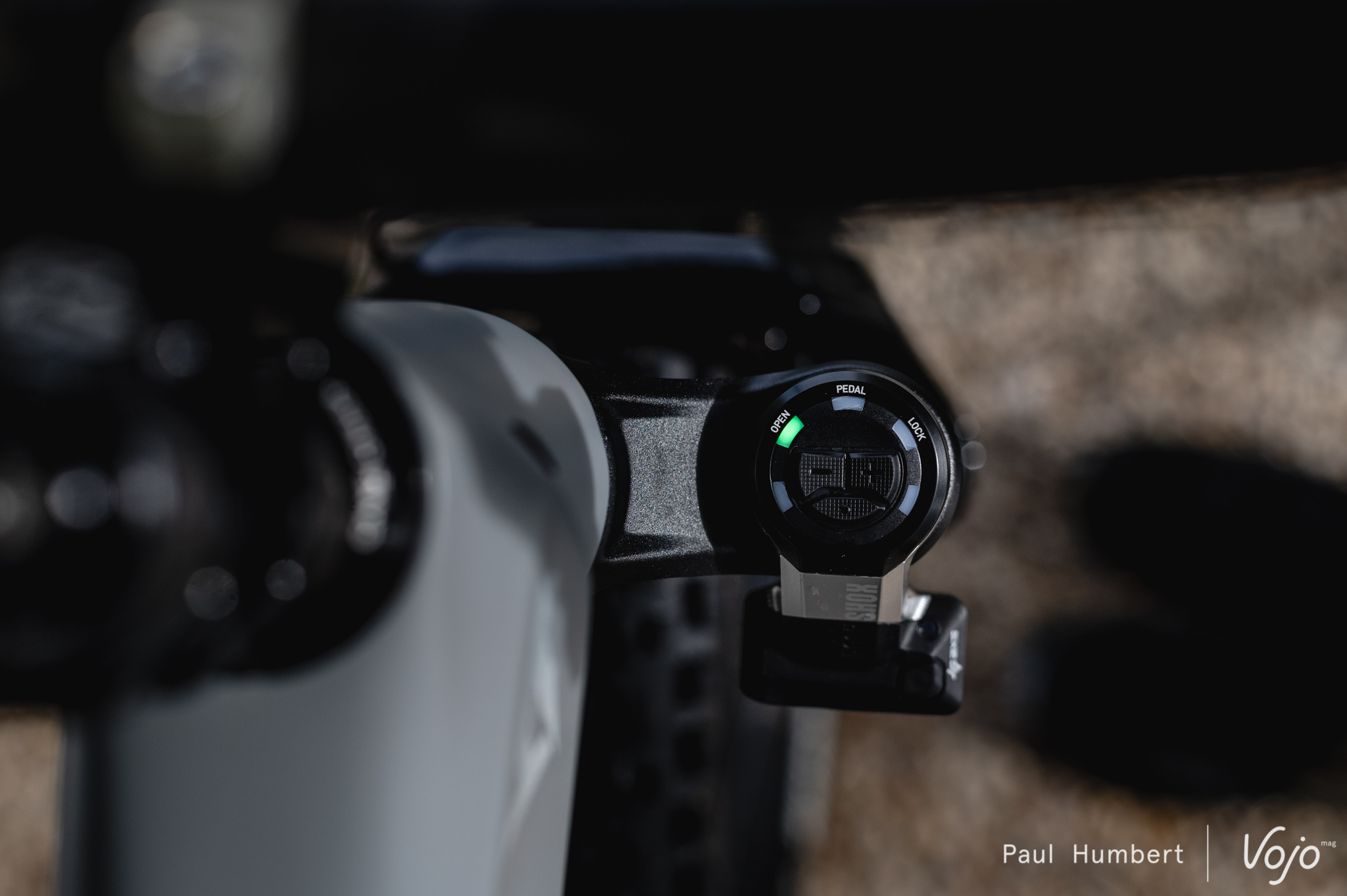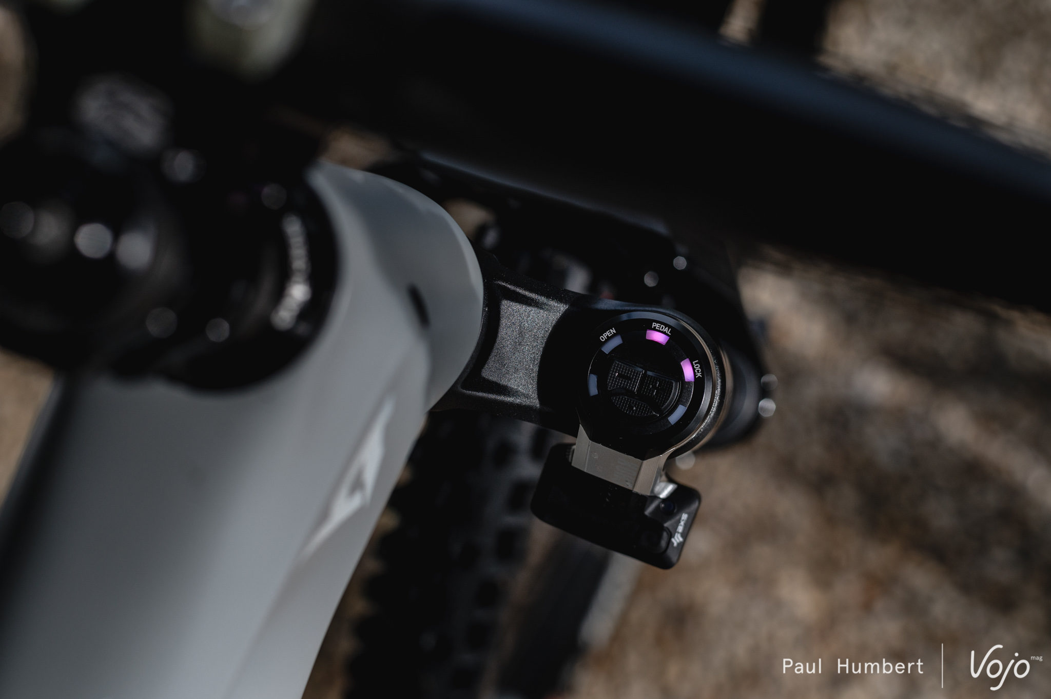 C’est là qu’on pourrait souhaiter un système encore un peu plus perfectionné, capable par exemple de comprendre si le pilote est assis ou debout sur les pédales et d’adapter sa configuration en conséquence. On pourrait aussi imaginer quelque chose lié à la puissance développée et la position mais cela nécessiterait alors un système capable d’apprendre les habitudes et les caractéristiques de son ou sa pilote, ce qui est bien plus compliqué. Heureusement, nous n’avons jamais eu à nous plaindre de délai dans l’autre sens, la vitesse à laquelle les suspensions se libèrent est tout bonnement impressionnante.