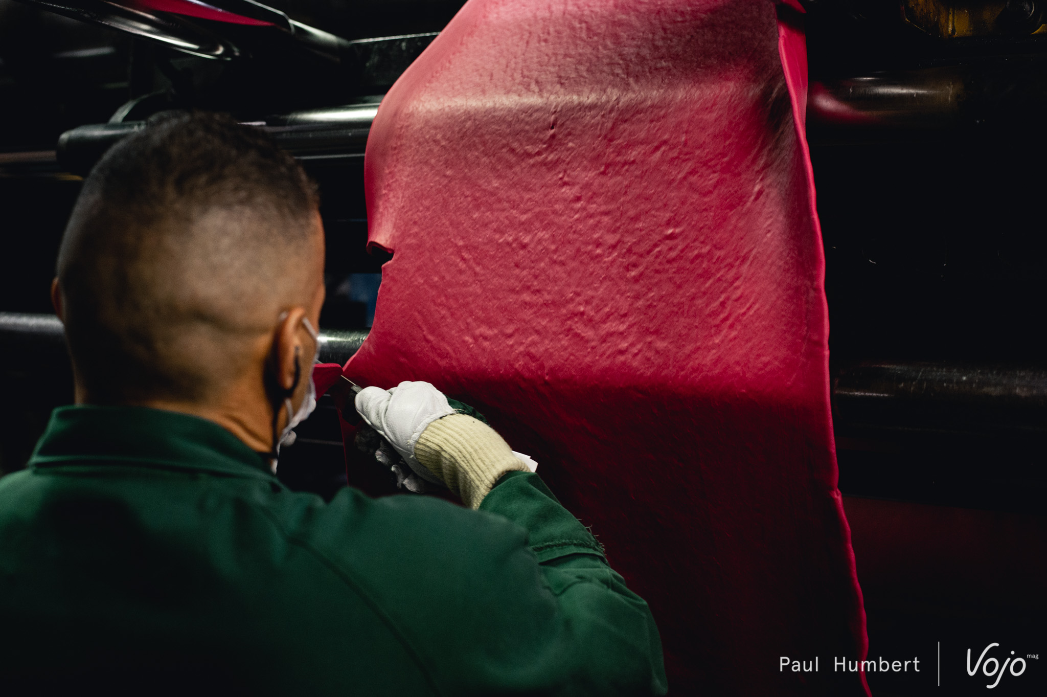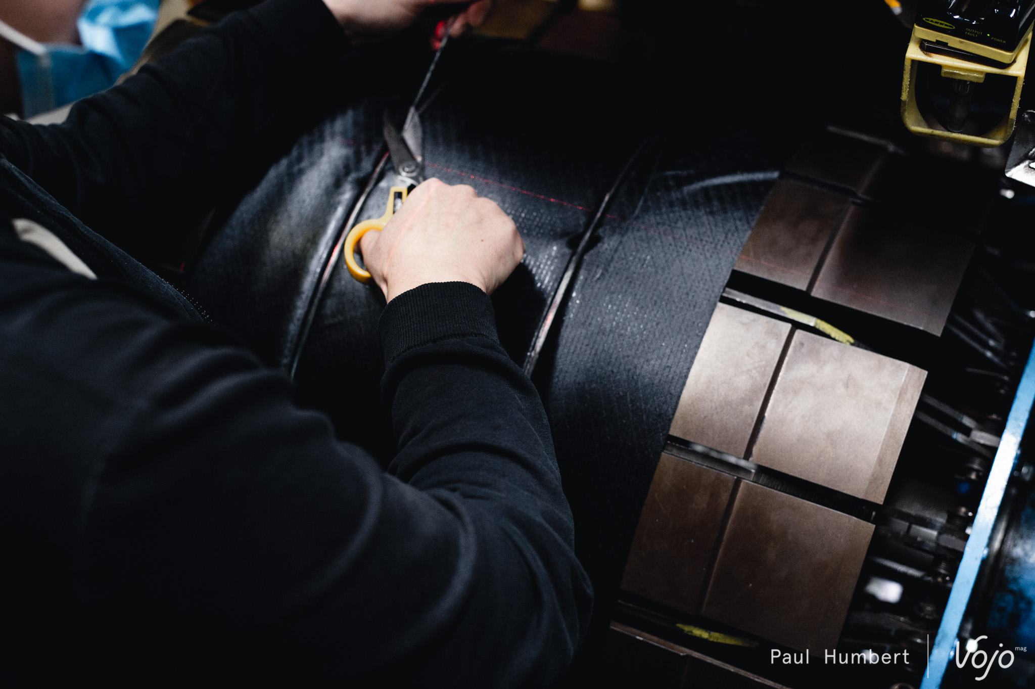 Dernière étape avant validation : les tests. Hutchinson est équipé d’un laboratoire qui permet de tester la résistance des vignettes aux UV mais également et surtout la résistance à la perforation, un banc de rendement et un banc de déflexion (qui analyse le confort de la carcasse). On retrouve également un test de rigidité des tringles, un banc de fatigue et un banc d’éclatement (notre petit préféré).