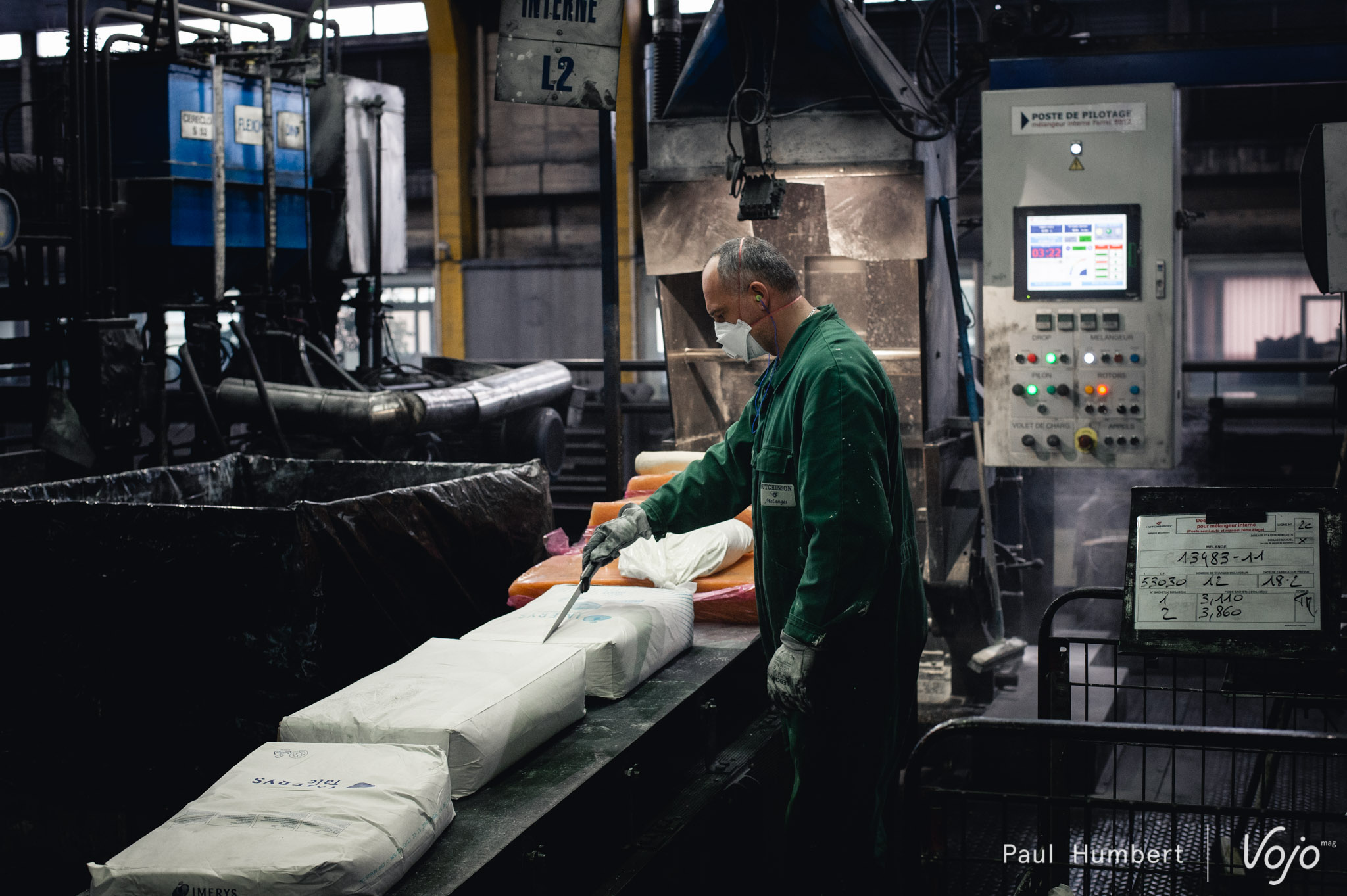 La gomme que nous avons découverte avec Audrey dans l’immense « cuisine » Hutchinson est triée et on en retrouve plusieurs types qui viendront se mélanger dans cette phase d’extrusion pour créer vos pneus à plusieurs densités. Les gommes sont réchauffées puis assemblées.